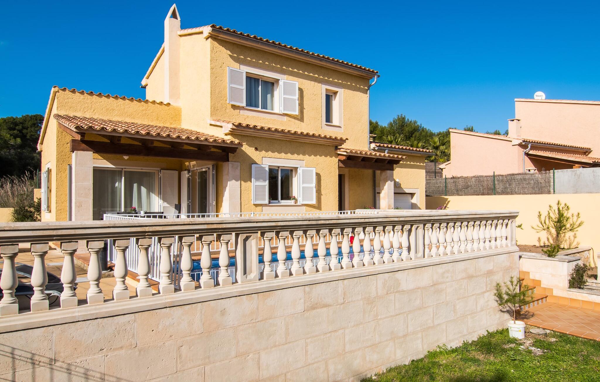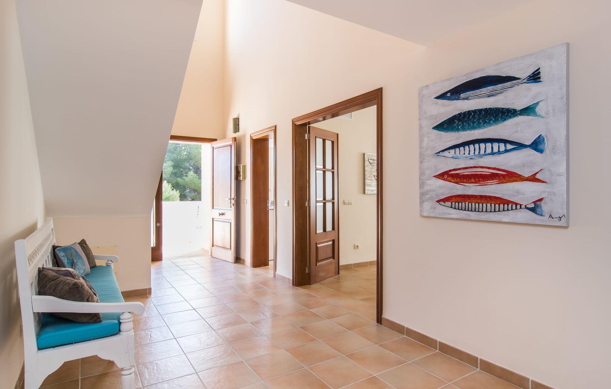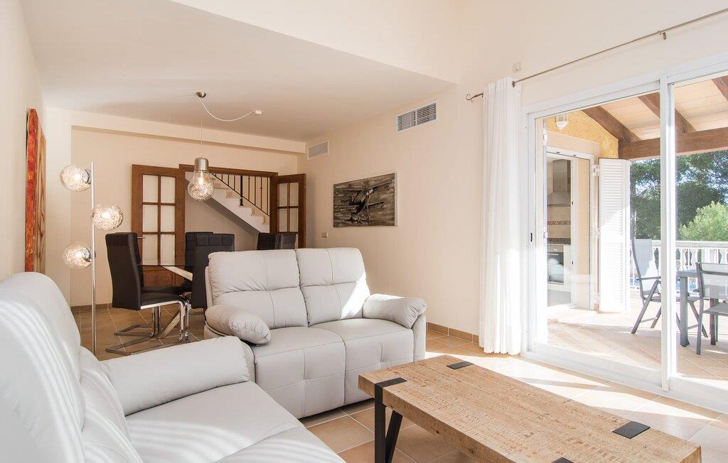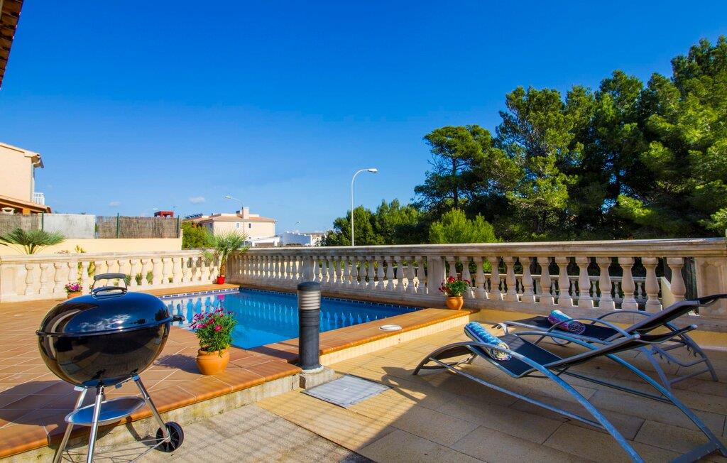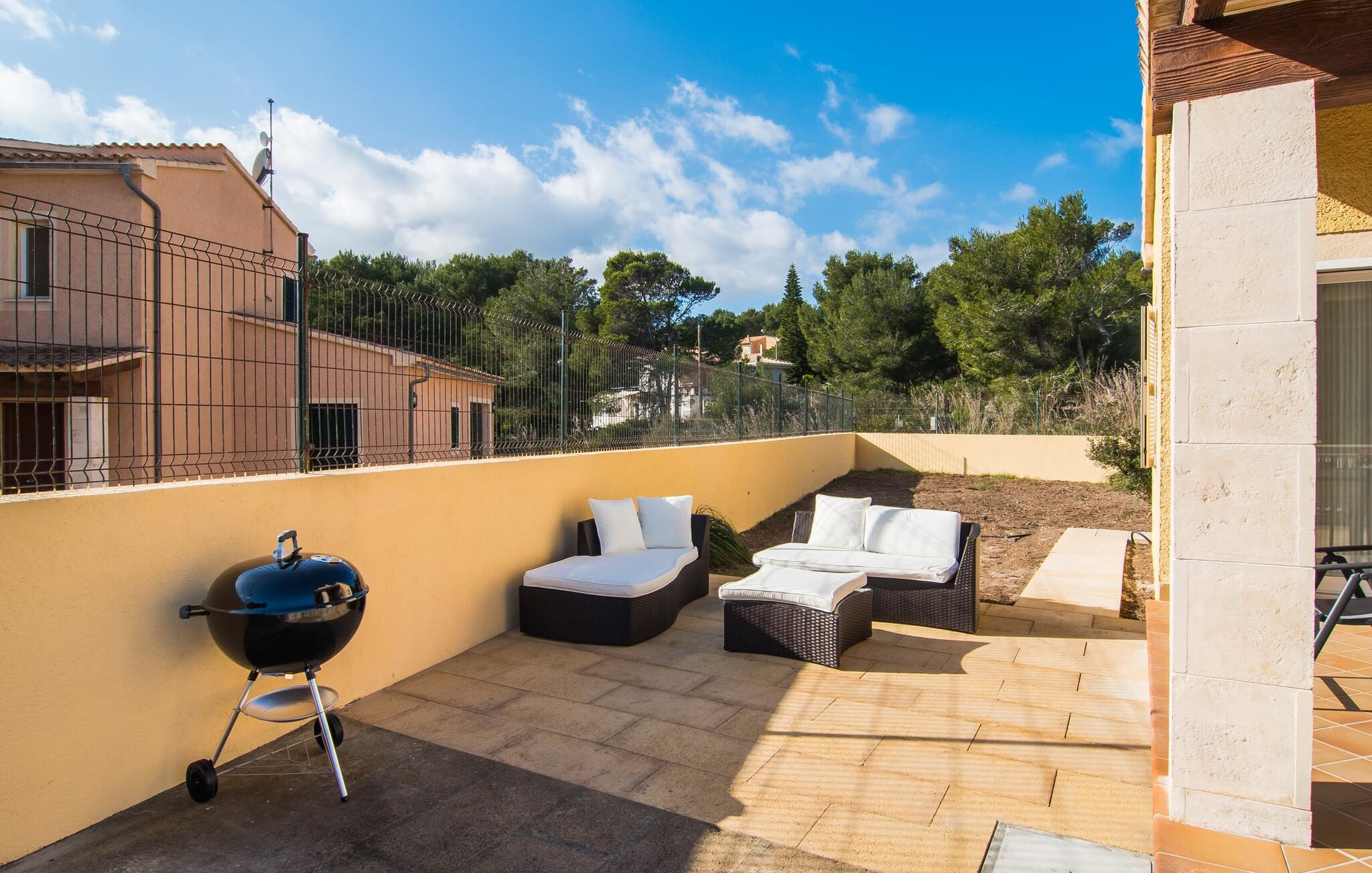 Din villa ligger på en 720 m² stor grund i den smukke kystby Cala Mesquida, en populær destination på østkysten, ikke langt fra Cala Rajada med sin helt egen autentiske charme. Cala Mesquida er perfekt til både en familie og en aktiv ferie. Denne ejendom er særligt interessant for familier med små børn, da den 6 x 3 m skrånende pool kan være fuldstændig indhegnet: Dette giver ekstra sikkerhed, hvis jeres små tager af sted på egen hånd, mens mor eller far komfortabelt drikker en café leche den overdækkede terrasse. En udendørs bruser er en del af pakken: I kan friske jer op, når det er nødvendigt eller efter en tur til stranden uden at trække sand ind i huset. Lige ved siden af poolen finder I komfortable liggestole; En udendørs lounge inviterer jer til at slappe af. I kan nyde frisk grillet fisk ved det store spisebord i skyggen af terrassen: en kulgrill er naturligvis tilgængelig, ligesom den indirekte poolbelysning, som på magisk vis oplyser ejendommen om aftenen. Under Mallorcas klare stjernehimmel og havets blide lyd i jeres ører, vil I med garanti besvime! Det indre af det 165 m² store hus, der strækker sig over stueetagen og øverste etager, byder velkommen med varme, afdæmpede farver og hyggelig hygge. Moderne kunst på væggene tilføjer interessante accenter; Elegante belysningsobjekter i form af overdimensionerede pærer er et rigtigt blikfang. Det typiske middelhavsterracotta-farvede stengulv køler interiøret på varme dage. Derudover er alle værelser udstyret med aircondition, så I kan tilpasse temperaturen efter jeres behov. I stueetagen finder I opholdsstuen med sofagruppe, fladskærms-tv og stort glas spisebord, fuldt udstyret køkken med direkte udgang til terrassen, to soveværelser med dobbeltseng eller to enkeltsenge samt badeværelse oversvømmet med dagslys med en stor håndvask og badekar. Ovenpå er der endnu et soveværelse med dobbeltseng med eget badeværelse. Alle værelser har omfattende garderobeskabe til at opbevare jeres feriegarderobe, så I altid har det rigtige outfit ved hånden. Uanset hvor meget I bare vil bo i villaen, er der også meget at opdage og opleve i det omkringliggende område! Beliggende nær den autentiske landsby Capdepera, er villaen den perfekte base for at udforske den nordøstlige del af Mallorca, en region, der sikrer, at der ikke er nogen chance for kedsomhed på grund af dens mangfoldighed af oplevelser. Til fods kan I nå adskillige gode restauranter og shoppingmuligheder samt Capdeperas vartegn, det historisk betydningsfulde Castell, på cirka 5 minutter i bil. Havet er også i gåafstand fra jeres villa. Takket være den centrale beliggenhed og gode transportforbindelser, som betyder, at trafikken af og til er hørbar, kan de smukkeste strande og bugter med deres omfattende udbud af vandsport hurtigt nås. Nogle meget attraktive byer i det indre, som er særligt indbydende på travle markedsdage, er også nemme at nå. Capdepera golfbanen, der er kendt for sine varierede fairways, er et besøg værd, selvom I ikke har lyst til at spille, men hellere vil prøve det fremragende, traditionelle køkken i den tilstødende Roca Viva restaurant. Villa “del Mar 1980” ligger i det populære feriested Cala Mesquida, mellem det beskyttede klitlandskab i syd og Parque de Llevant i nord, og tilbyder det perfekte udgangspunkt for både soldyrkere og aktive rejsende. Herfra kan I starte jeres udflugter på stierne og stierne gennem fyrreskoven eller følge de afmærkede vandrestier til Cala Ratjada.