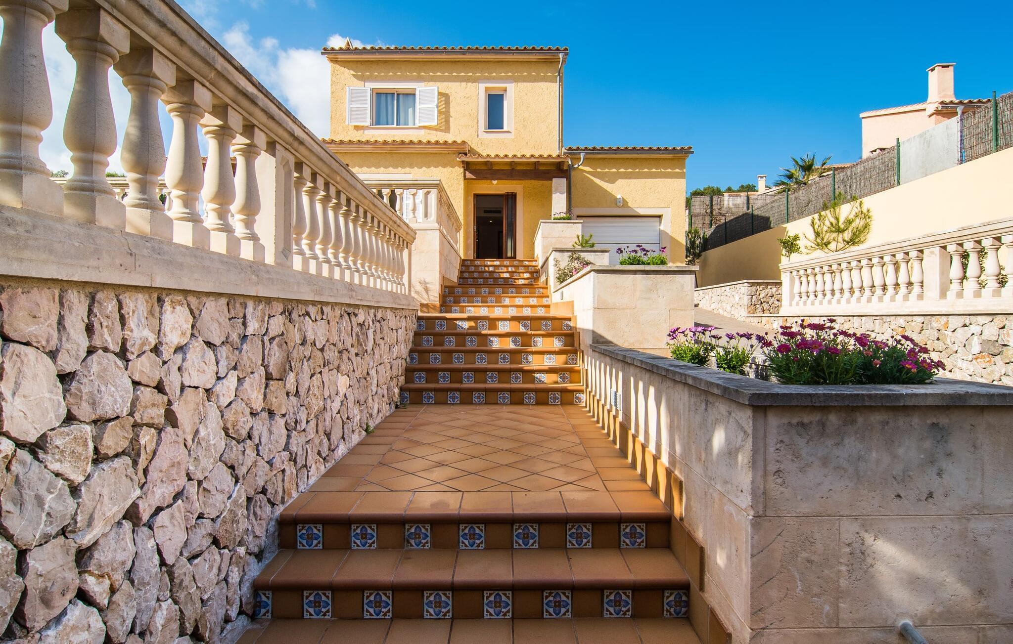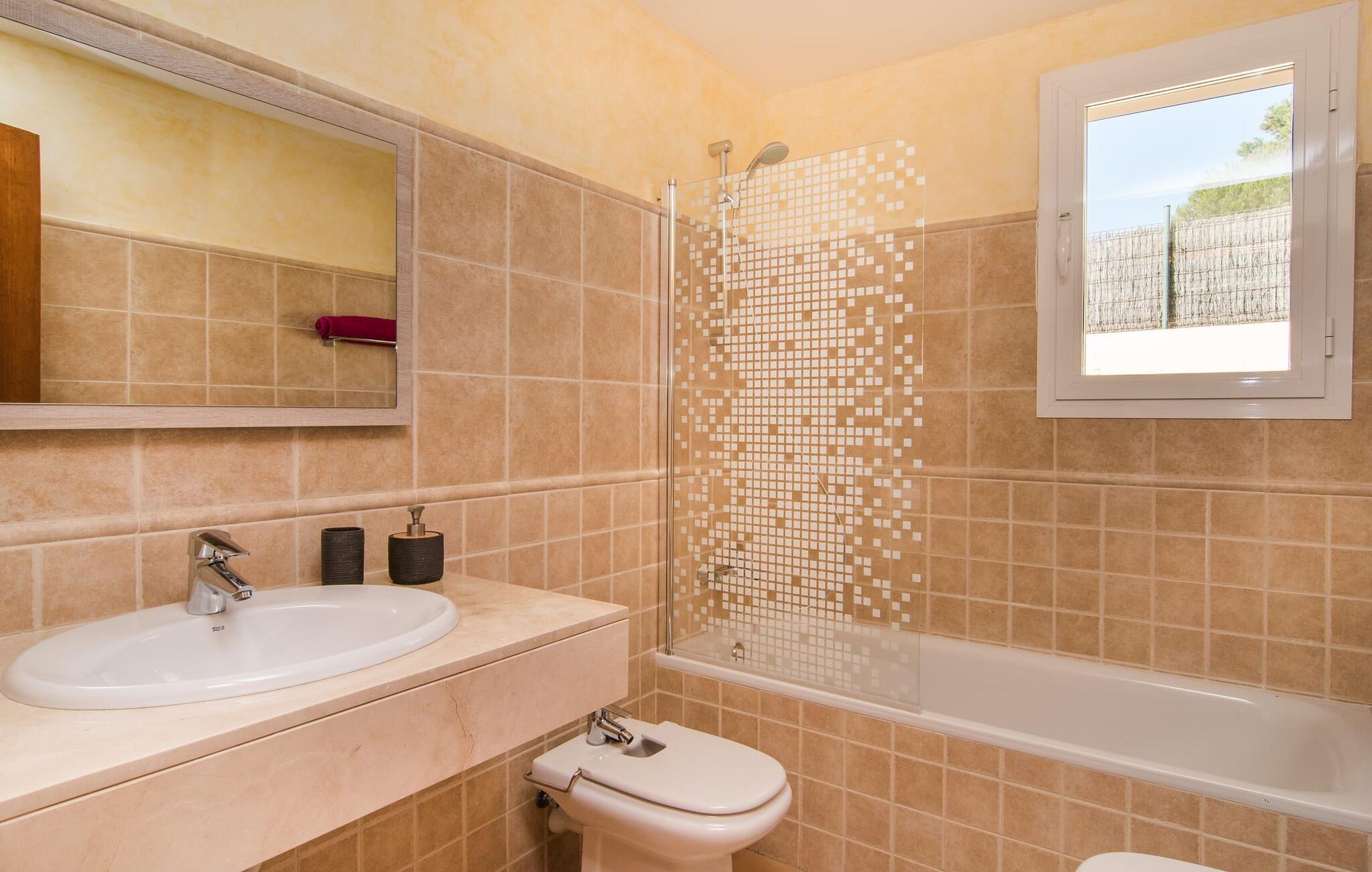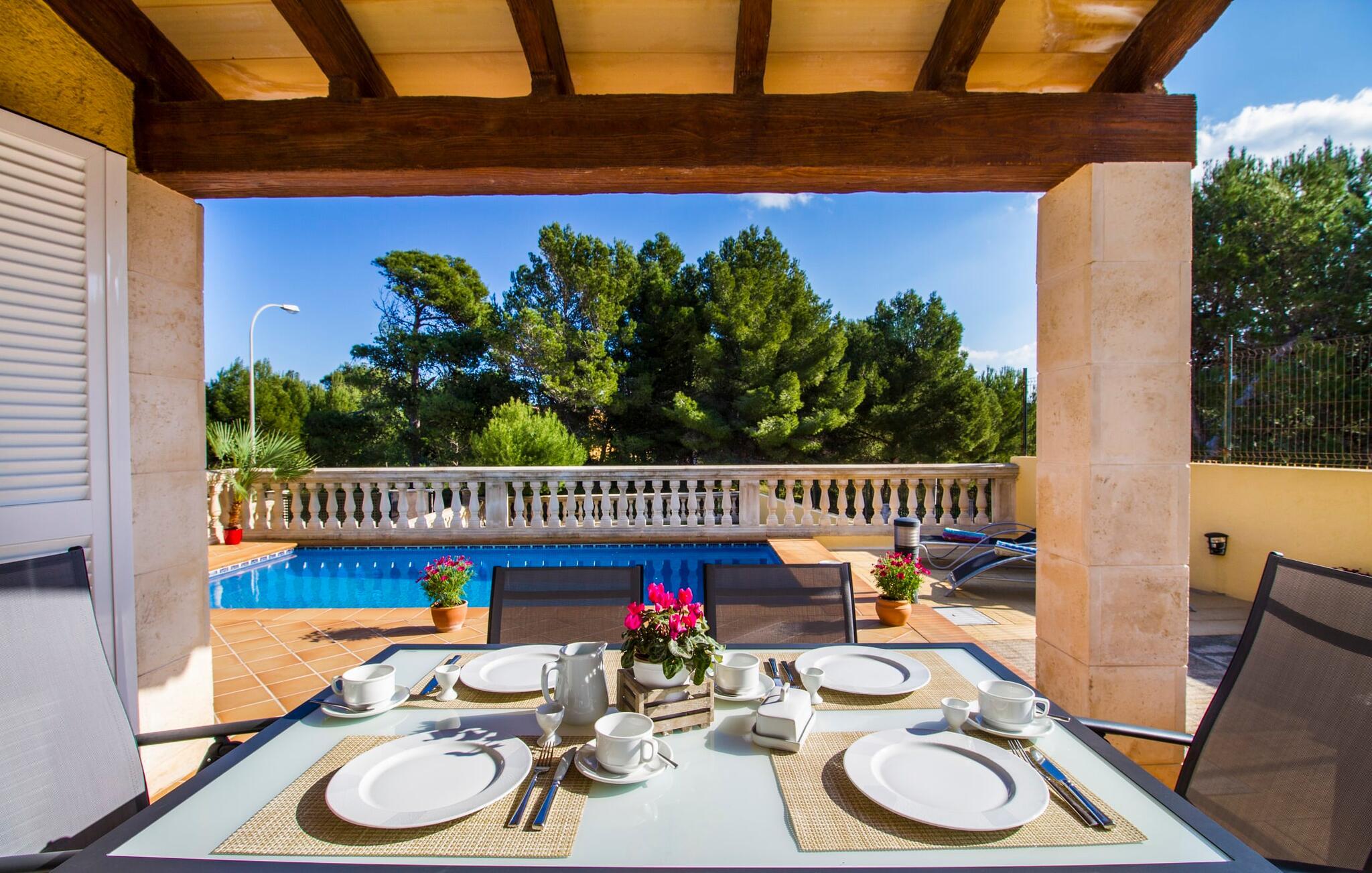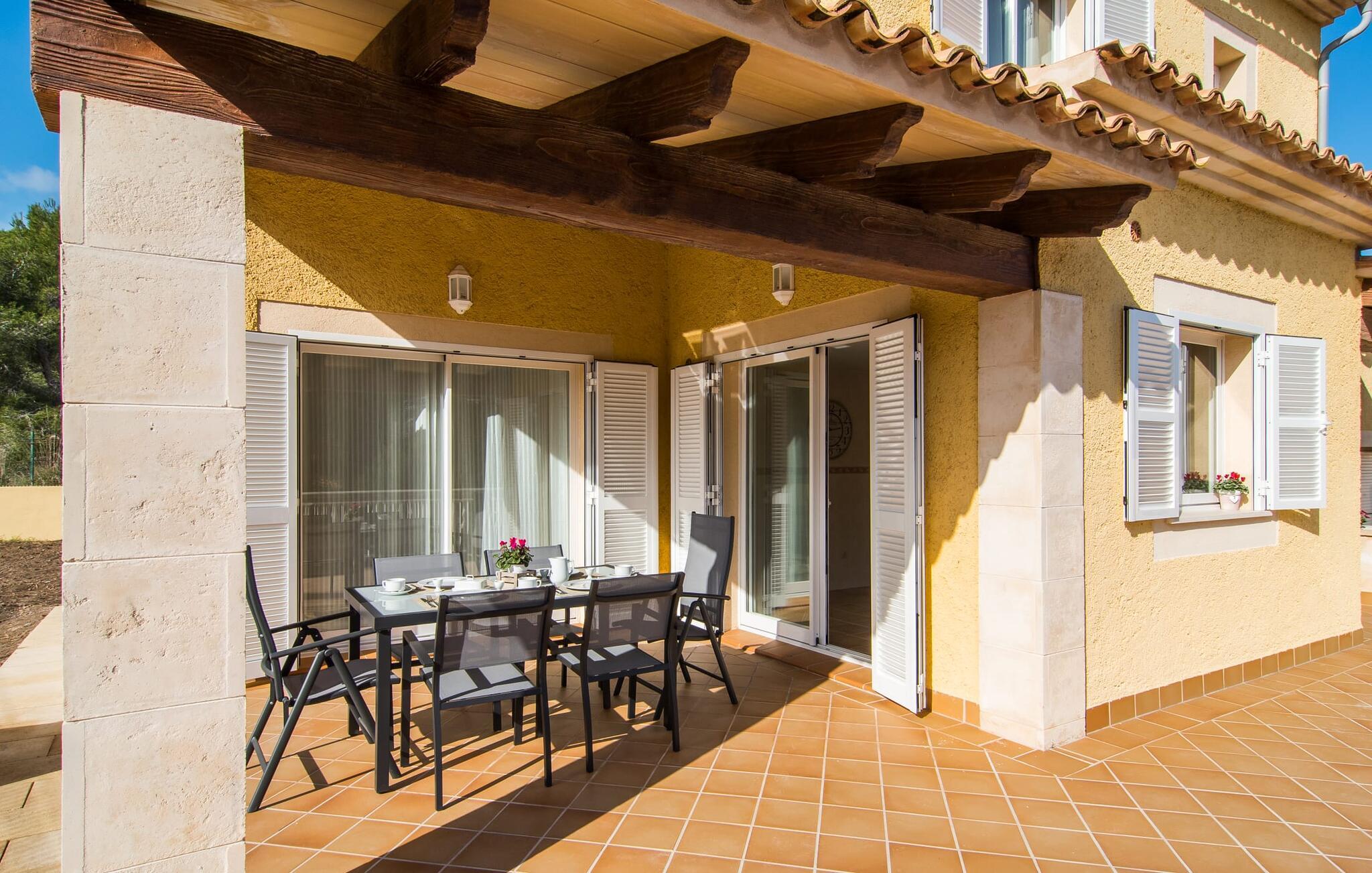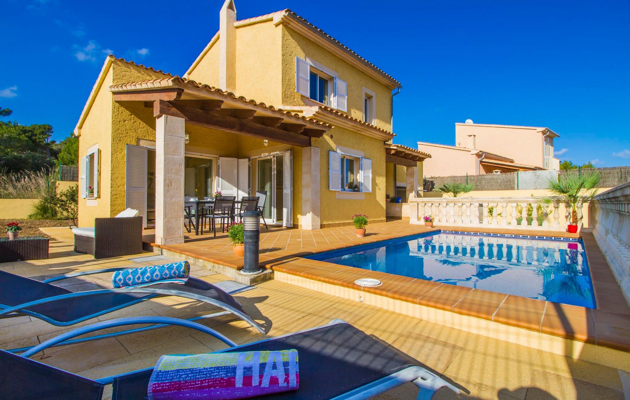 Din villa ligger på en 720 m² stor grund i den smukke kystby Cala Mesquida, en populær destination på østkysten, ikke langt fra Cala Rajada med sin helt egen autentiske charme. Cala Mesquida er perfekt til både en familie og en aktiv ferie. Denne ejendom er særligt interessant for familier med små børn, da den 6 x 3 m skrånende pool kan være fuldstændig indhegnet: Dette giver ekstra sikkerhed, hvis jeres små tager af sted på egen hånd, mens mor eller far komfortabelt drikker en café leche den overdækkede terrasse. En udendørs bruser er en del af pakken: I kan friske jer op, når det er nødvendigt eller efter en tur til stranden uden at trække sand ind i huset. Lige ved siden af poolen finder I komfortable liggestole; En udendørs lounge inviterer jer til at slappe af. I kan nyde frisk grillet fisk ved det store spisebord i skyggen af terrassen: en kulgrill er naturligvis tilgængelig, ligesom den indirekte poolbelysning, som på magisk vis oplyser ejendommen om aftenen. Under Mallorcas klare stjernehimmel og havets blide lyd i jeres ører, vil I med garanti besvime! Det indre af det 165 m² store hus, der strækker sig over stueetagen og øverste etager, byder velkommen med varme, afdæmpede farver og hyggelig hygge. Moderne kunst på væggene tilføjer interessante accenter; Elegante belysningsobjekter i form af overdimensionerede pærer er et rigtigt blikfang. Det typiske middelhavsterracotta-farvede stengulv køler interiøret på varme dage. Derudover er alle værelser udstyret med aircondition, så I kan tilpasse temperaturen efter jeres behov. I stueetagen finder I opholdsstuen med sofagruppe, fladskærms-tv og stort glas spisebord, fuldt udstyret køkken med direkte udgang til terrassen, to soveværelser med dobbeltseng eller to enkeltsenge samt badeværelse oversvømmet med dagslys med en stor håndvask og badekar. Ovenpå er der endnu et soveværelse med dobbeltseng med eget badeværelse. Alle værelser har omfattende garderobeskabe til at opbevare jeres feriegarderobe, så I altid har det rigtige outfit ved hånden. Uanset hvor meget I bare vil bo i villaen, er der også meget at opdage og opleve i det omkringliggende område! Beliggende nær den autentiske landsby Capdepera, er villaen den perfekte base for at udforske den nordøstlige del af Mallorca, en region, der sikrer, at der ikke er nogen chance for kedsomhed på grund af dens mangfoldighed af oplevelser. Til fods kan I nå adskillige gode restauranter og shoppingmuligheder samt Capdeperas vartegn, det historisk betydningsfulde Castell, på cirka 5 minutter i bil. Havet er også i gåafstand fra jeres villa. Takket være den centrale beliggenhed og gode transportforbindelser, som betyder, at trafikken af og til er hørbar, kan de smukkeste strande og bugter med deres omfattende udbud af vandsport hurtigt nås. Nogle meget attraktive byer i det indre, som er særligt indbydende på travle markedsdage, er også nemme at nå. Capdepera golfbanen, der er kendt for sine varierede fairways, er et besøg værd, selvom I ikke har lyst til at spille, men hellere vil prøve det fremragende, traditionelle køkken i den tilstødende Roca Viva restaurant. Villa “del Mar 1980” ligger i det populære feriested Cala Mesquida, mellem det beskyttede klitlandskab i syd og Parque de Llevant i nord, og tilbyder det perfekte udgangspunkt for både soldyrkere og aktive rejsende. Herfra kan I starte jeres udflugter på stierne og stierne gennem fyrreskoven eller følge de afmærkede vandrestier til Cala Ratjada.