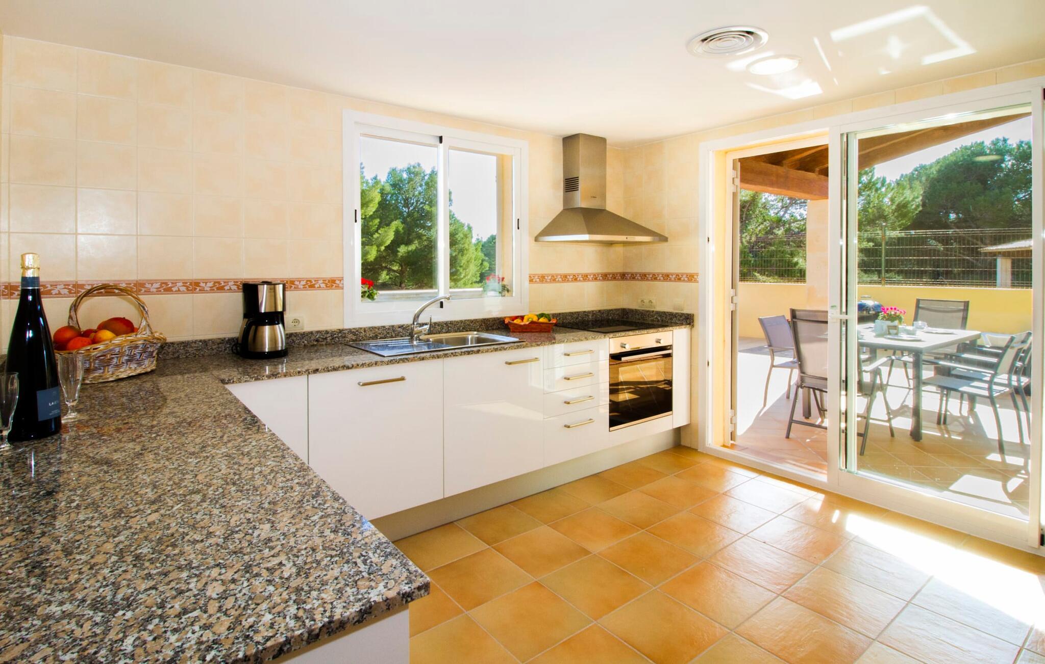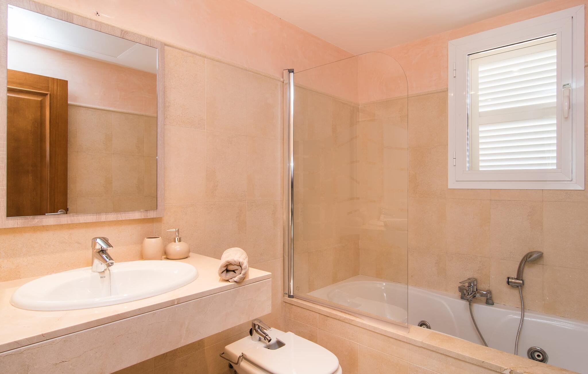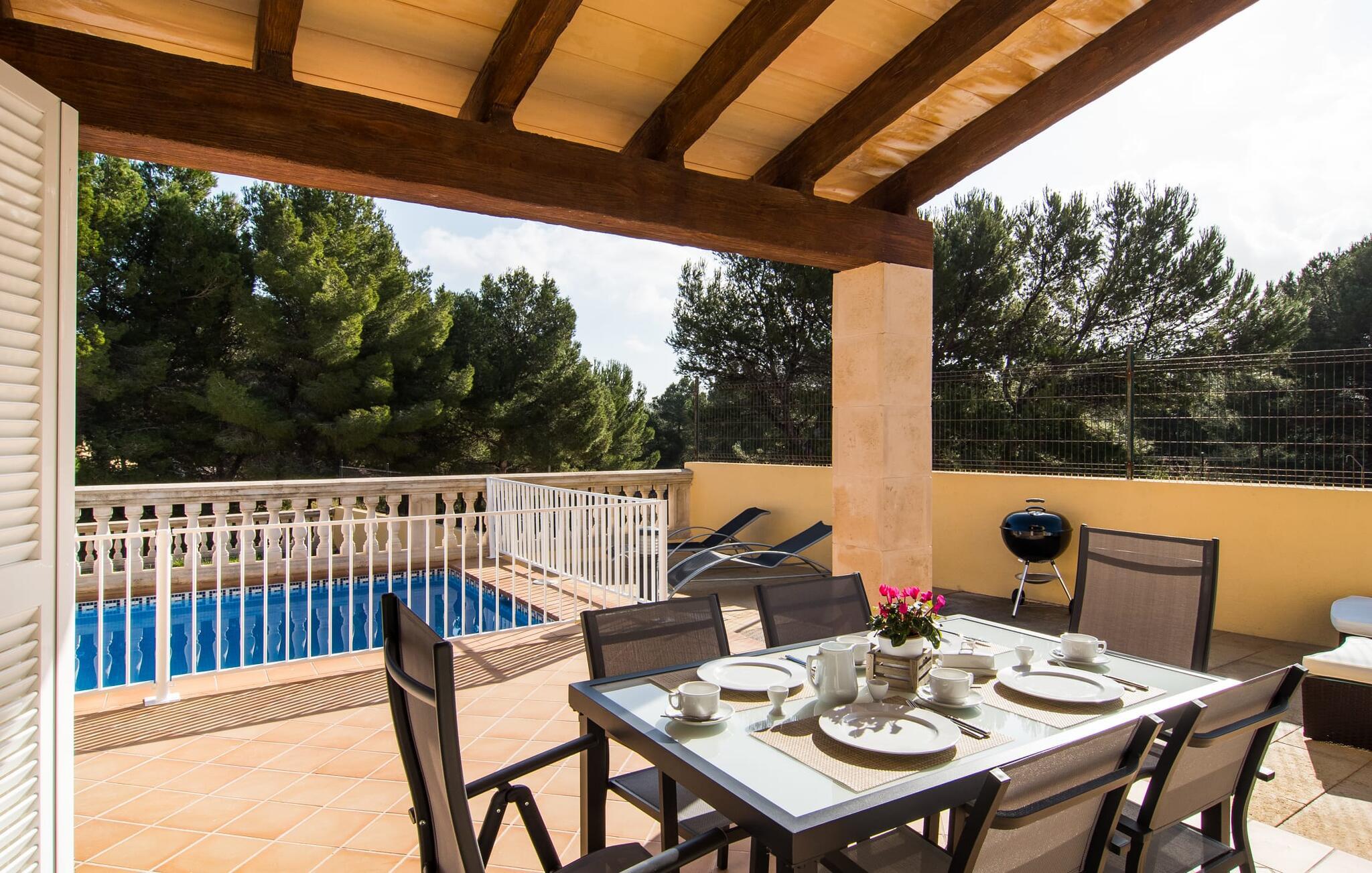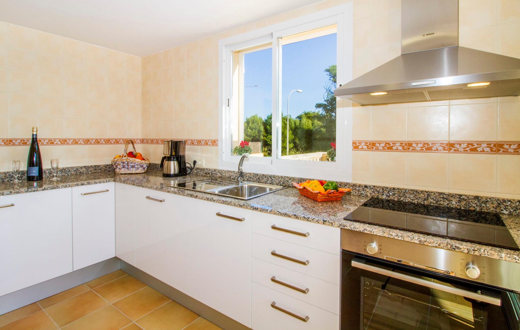 Din villa ligger på en 720 m² stor grund i den smukke kystby Cala Mesquida, en populær destination på østkysten, ikke langt fra Cala Rajada med sin helt egen autentiske charme. Cala Mesquida er perfekt til både en familie og en aktiv ferie. Denne ejendom er særligt interessant for familier med små børn, da den 6 x 3 m skrånende pool kan være fuldstændig indhegnet: Dette giver ekstra sikkerhed, hvis jeres små tager af sted på egen hånd, mens mor eller far komfortabelt drikker en café leche den overdækkede terrasse. En udendørs bruser er en del af pakken: I kan friske jer op, når det er nødvendigt eller efter en tur til stranden uden at trække sand ind i huset. Lige ved siden af poolen finder I komfortable liggestole; En udendørs lounge inviterer jer til at slappe af. I kan nyde frisk grillet fisk ved det store spisebord i skyggen af terrassen: en kulgrill er naturligvis tilgængelig, ligesom den indirekte poolbelysning, som på magisk vis oplyser ejendommen om aftenen. Under Mallorcas klare stjernehimmel og havets blide lyd i jeres ører, vil I med garanti besvime! Det indre af det 165 m² store hus, der strækker sig over stueetagen og øverste etager, byder velkommen med varme, afdæmpede farver og hyggelig hygge. Moderne kunst på væggene tilføjer interessante accenter; Elegante belysningsobjekter i form af overdimensionerede pærer er et rigtigt blikfang. Det typiske middelhavsterracotta-farvede stengulv køler interiøret på varme dage. Derudover er alle værelser udstyret med aircondition, så I kan tilpasse temperaturen efter jeres behov. I stueetagen finder I opholdsstuen med sofagruppe, fladskærms-tv og stort glas spisebord, fuldt udstyret køkken med direkte udgang til terrassen, to soveværelser med dobbeltseng eller to enkeltsenge samt badeværelse oversvømmet med dagslys med en stor håndvask og badekar. Ovenpå er der endnu et soveværelse med dobbeltseng med eget badeværelse. Alle værelser har omfattende garderobeskabe til at opbevare jeres feriegarderobe, så I altid har det rigtige outfit ved hånden. Uanset hvor meget I bare vil bo i villaen, er der også meget at opdage og opleve i det omkringliggende område! Beliggende nær den autentiske landsby Capdepera, er villaen den perfekte base for at udforske den nordøstlige del af Mallorca, en region, der sikrer, at der ikke er nogen chance for kedsomhed på grund af dens mangfoldighed af oplevelser. Til fods kan I nå adskillige gode restauranter og shoppingmuligheder samt Capdeperas vartegn, det historisk betydningsfulde Castell, på cirka 5 minutter i bil. Havet er også i gåafstand fra jeres villa. Takket være den centrale beliggenhed og gode transportforbindelser, som betyder, at trafikken af og til er hørbar, kan de smukkeste strande og bugter med deres omfattende udbud af vandsport hurtigt nås. Nogle meget attraktive byer i det indre, som er særligt indbydende på travle markedsdage, er også nemme at nå. Capdepera golfbanen, der er kendt for sine varierede fairways, er et besøg værd, selvom I ikke har lyst til at spille, men hellere vil prøve det fremragende, traditionelle køkken i den tilstødende Roca Viva restaurant. Villa “del Mar 1980” ligger i det populære feriested Cala Mesquida, mellem det beskyttede klitlandskab i syd og Parque de Llevant i nord, og tilbyder det perfekte udgangspunkt for både soldyrkere og aktive rejsende. Herfra kan I starte jeres udflugter på stierne og stierne gennem fyrreskoven eller følge de afmærkede vandrestier til Cala Ratjada.