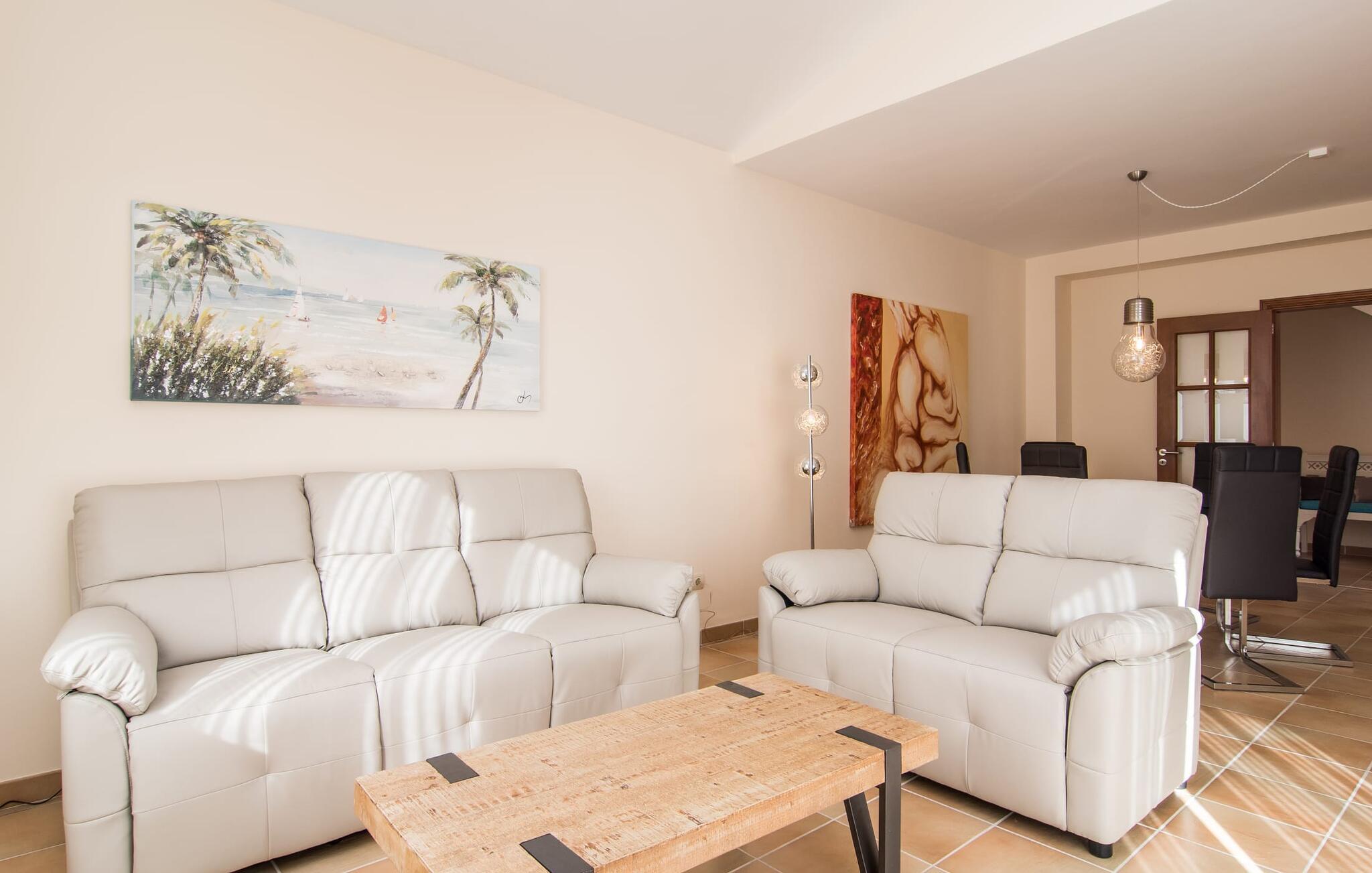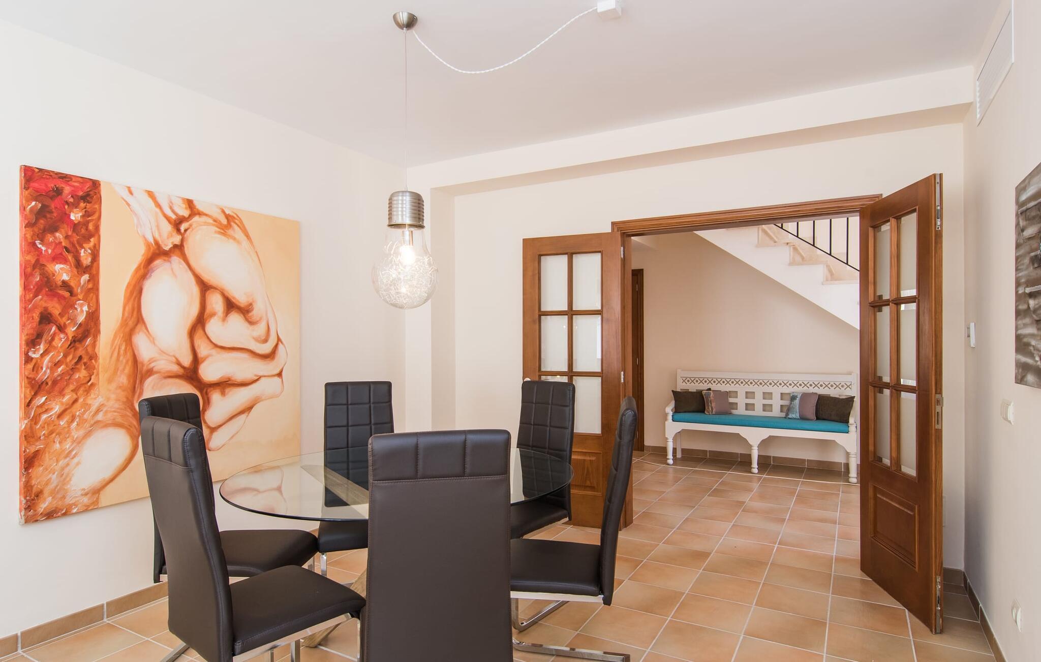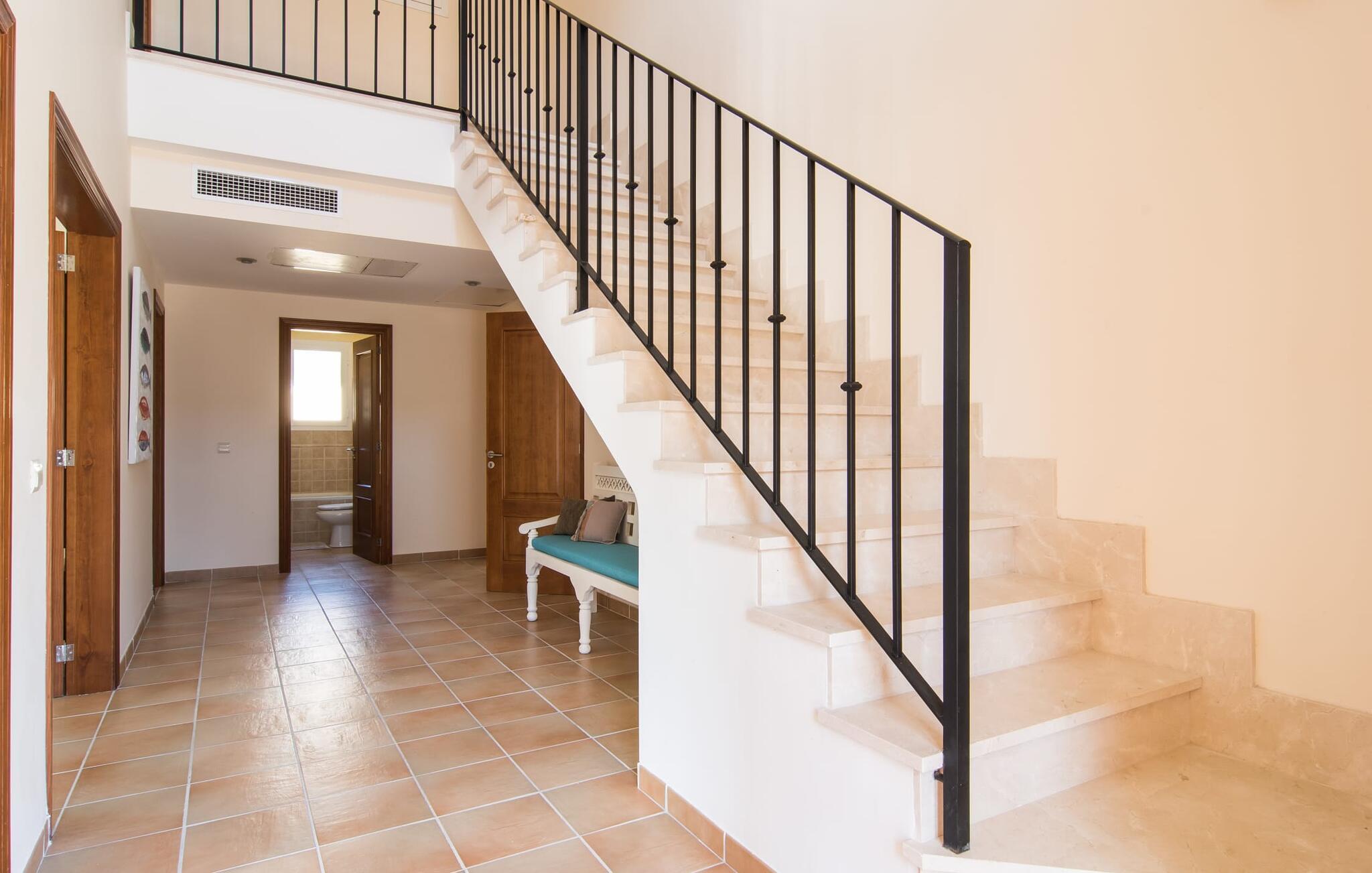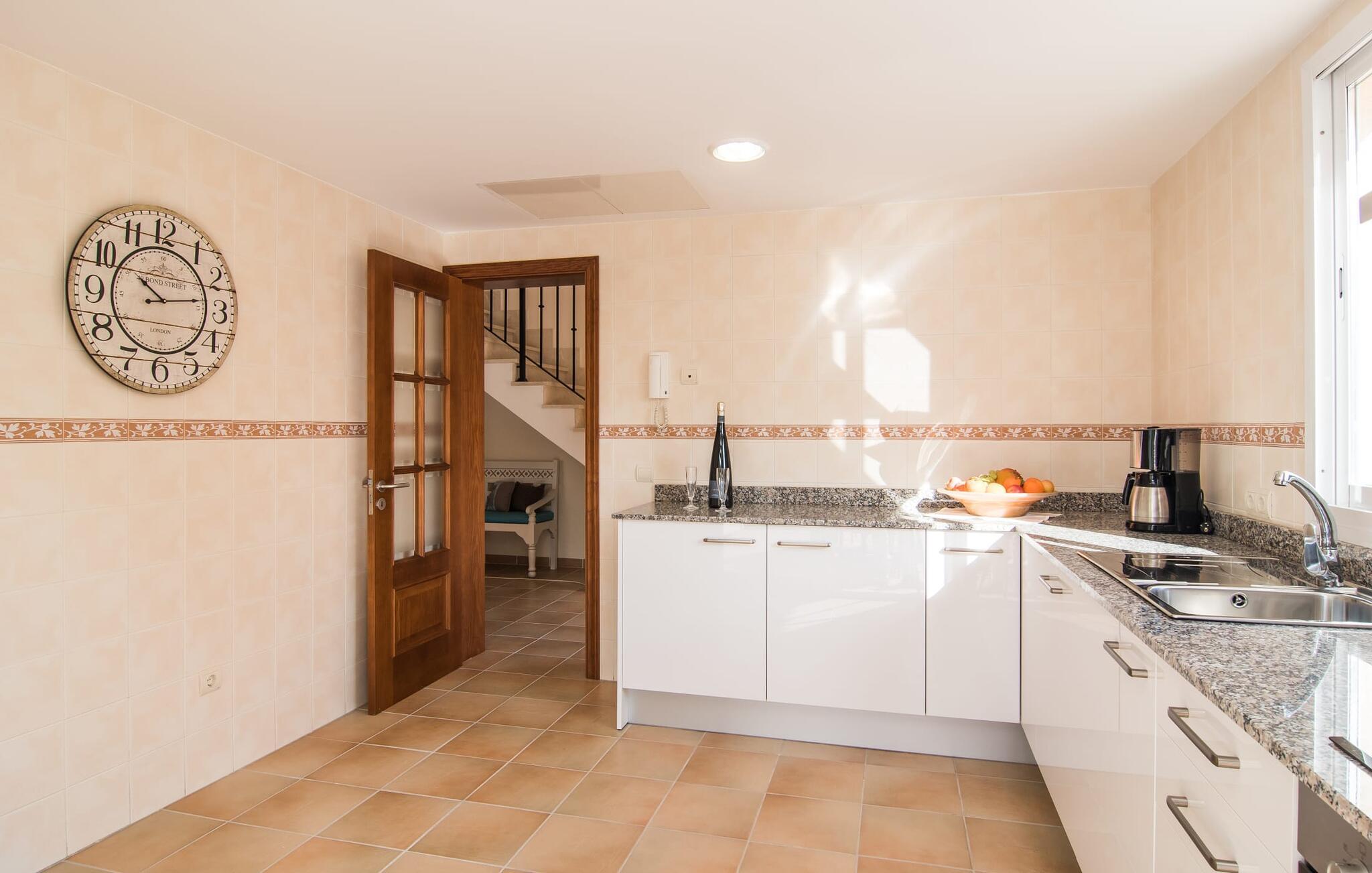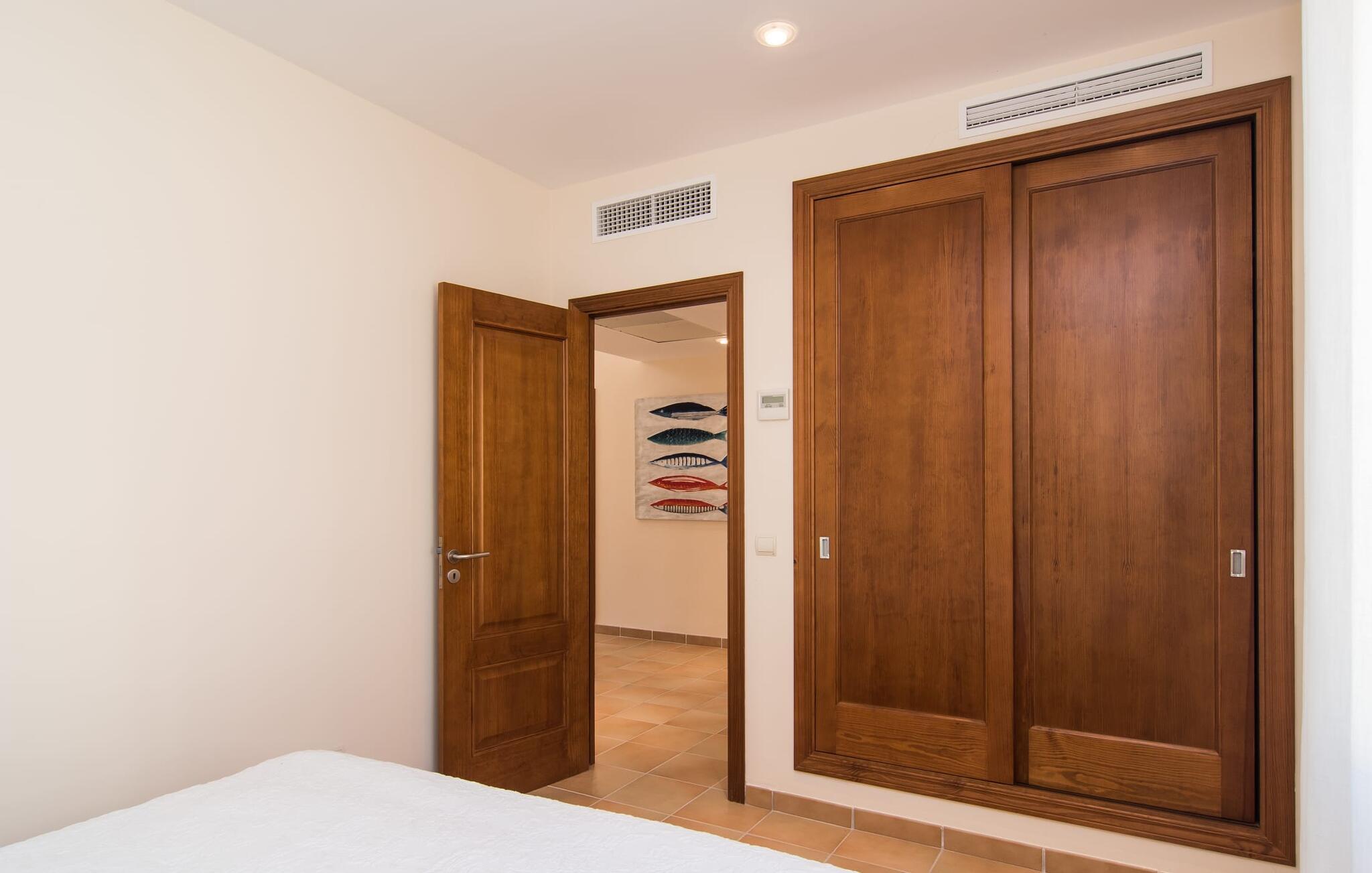 Din villa ligger på en 720 m² stor grund i den smukke kystby Cala Mesquida, en populær destination på østkysten, ikke langt fra Cala Rajada med sin helt egen autentiske charme. Cala Mesquida er perfekt til både en familie og en aktiv ferie. Denne ejendom er særligt interessant for familier med små børn, da den 6 x 3 m skrånende pool kan være fuldstændig indhegnet: Dette giver ekstra sikkerhed, hvis jeres små tager af sted på egen hånd, mens mor eller far komfortabelt drikker en café leche den overdækkede terrasse. En udendørs bruser er en del af pakken: I kan friske jer op, når det er nødvendigt eller efter en tur til stranden uden at trække sand ind i huset. Lige ved siden af poolen finder I komfortable liggestole; En udendørs lounge inviterer jer til at slappe af. I kan nyde frisk grillet fisk ved det store spisebord i skyggen af terrassen: en kulgrill er naturligvis tilgængelig, ligesom den indirekte poolbelysning, som på magisk vis oplyser ejendommen om aftenen. Under Mallorcas klare stjernehimmel og havets blide lyd i jeres ører, vil I med garanti besvime! Det indre af det 165 m² store hus, der strækker sig over stueetagen og øverste etager, byder velkommen med varme, afdæmpede farver og hyggelig hygge. Moderne kunst på væggene tilføjer interessante accenter; Elegante belysningsobjekter i form af overdimensionerede pærer er et rigtigt blikfang. Det typiske middelhavsterracotta-farvede stengulv køler interiøret på varme dage. Derudover er alle værelser udstyret med aircondition, så I kan tilpasse temperaturen efter jeres behov. I stueetagen finder I opholdsstuen med sofagruppe, fladskærms-tv og stort glas spisebord, fuldt udstyret køkken med direkte udgang til terrassen, to soveværelser med dobbeltseng eller to enkeltsenge samt badeværelse oversvømmet med dagslys med en stor håndvask og badekar. Ovenpå er der endnu et soveværelse med dobbeltseng med eget badeværelse. Alle værelser har omfattende garderobeskabe til at opbevare jeres feriegarderobe, så I altid har det rigtige outfit ved hånden. Uanset hvor meget I bare vil bo i villaen, er der også meget at opdage og opleve i det omkringliggende område! Beliggende nær den autentiske landsby Capdepera, er villaen den perfekte base for at udforske den nordøstlige del af Mallorca, en region, der sikrer, at der ikke er nogen chance for kedsomhed på grund af dens mangfoldighed af oplevelser. Til fods kan I nå adskillige gode restauranter og shoppingmuligheder samt Capdeperas vartegn, det historisk betydningsfulde Castell, på cirka 5 minutter i bil. Havet er også i gåafstand fra jeres villa. Takket være den centrale beliggenhed og gode transportforbindelser, som betyder, at trafikken af og til er hørbar, kan de smukkeste strande og bugter med deres omfattende udbud af vandsport hurtigt nås. Nogle meget attraktive byer i det indre, som er særligt indbydende på travle markedsdage, er også nemme at nå. Capdepera golfbanen, der er kendt for sine varierede fairways, er et besøg værd, selvom I ikke har lyst til at spille, men hellere vil prøve det fremragende, traditionelle køkken i den tilstødende Roca Viva restaurant. Villa “del Mar 1980” ligger i det populære feriested Cala Mesquida, mellem det beskyttede klitlandskab i syd og Parque de Llevant i nord, og tilbyder det perfekte udgangspunkt for både soldyrkere og aktive rejsende. Herfra kan I starte jeres udflugter på stierne og stierne gennem fyrreskoven eller følge de afmærkede vandrestier til Cala Ratjada.