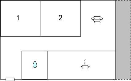 Soveværelse 9m2 (nr. 2) - 1 Soveplads. (Enkeltseng(e)). 2 Sovepladser. (Dobbeltseng(e)).