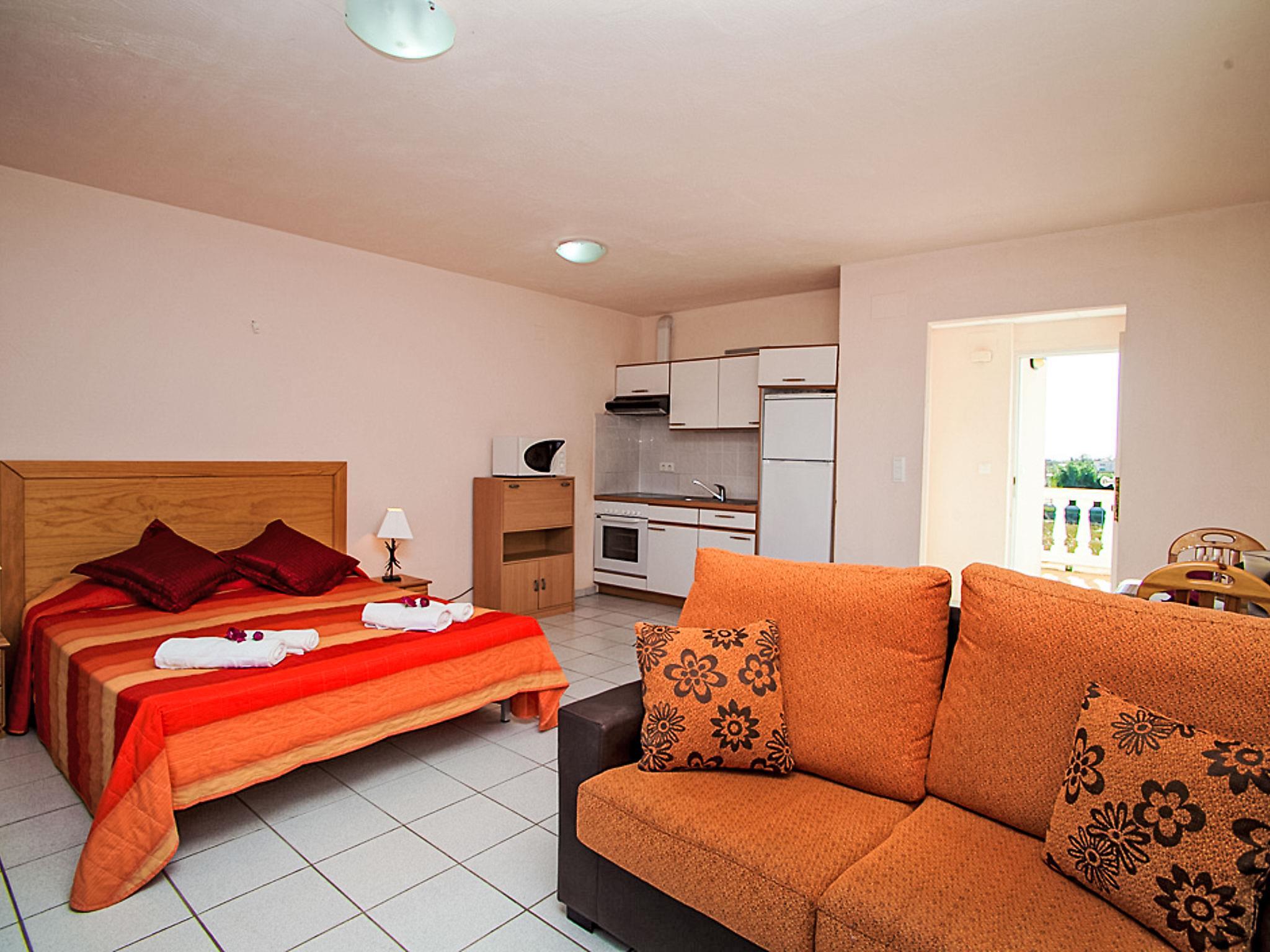 1-room studio 45 m2, on the ground floor. Practical and comfortable furnishings: living/dining room with 1 french bed, 1 sleeping facility, satellite TV and air conditioning. Exit to the terrace. Exit to the terrace. Kitchenette (oven, X ceramic glass hob hotplates, microwave, electric coffee machine). Bath/WC. Floor heating. Large terrace. Terrace furniture. View of the sea, the swimming pool and the garden. Facilities: washing machine. Internet (WiFi, free). Suitable for families. Maximum 2 pets/ dogs allowed. HUTTE-000936
