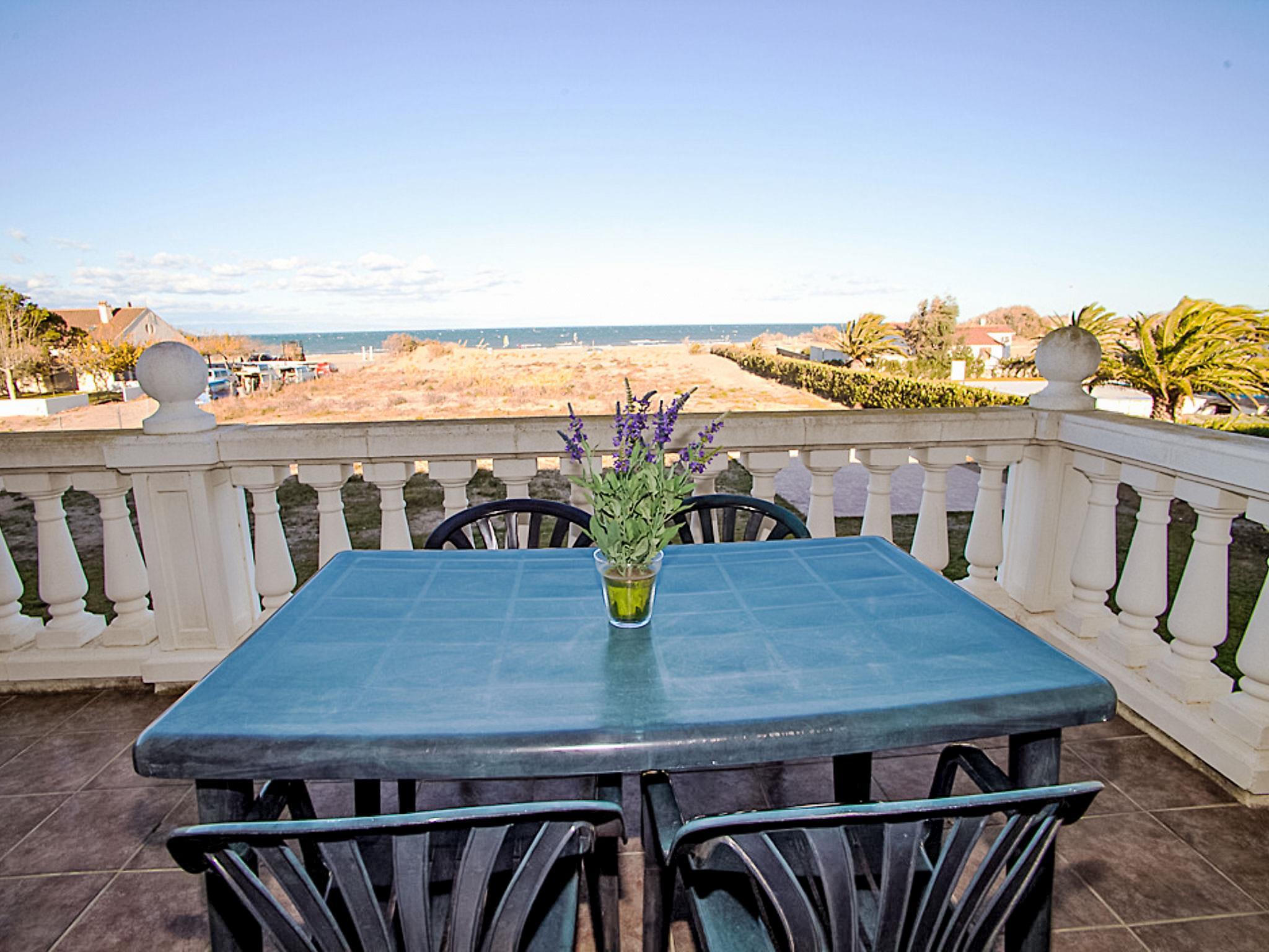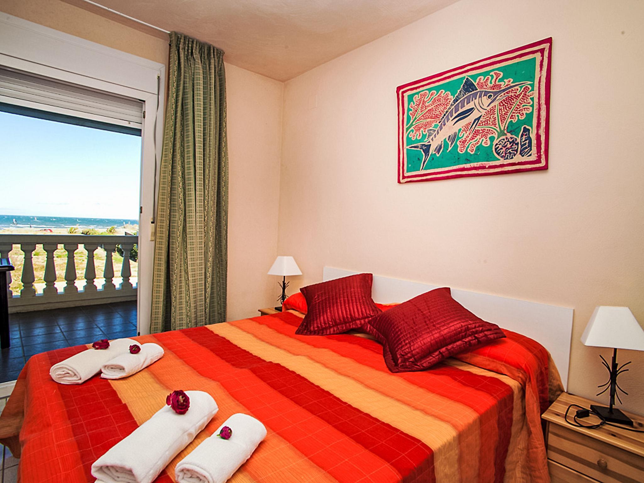 Riumar 10 km from Deltebre: Child friendly, beautiful apartment block "Royal Delta", 2 storeys, surrounded by fields. 20 apartments in the residence. In a quiet, sunny position, 50 m from the sea, 50 m from the beach, direct access to the beach. For shared use: beautiful garden with lawn, swimming pool angular (20 x 10 m, seasonal availability: 01.Jan. - 31.Dec.) with internal staircase. Children's pool, outdoor shower, tennis, barbecue. In the house: WiFi. Parking on the premises. Shop, restaurant 100 m, bus stop "Riumar" 1 km. Please note: baby equipment on request. Groups of teenagers on request only. The photograph shows a typical example.