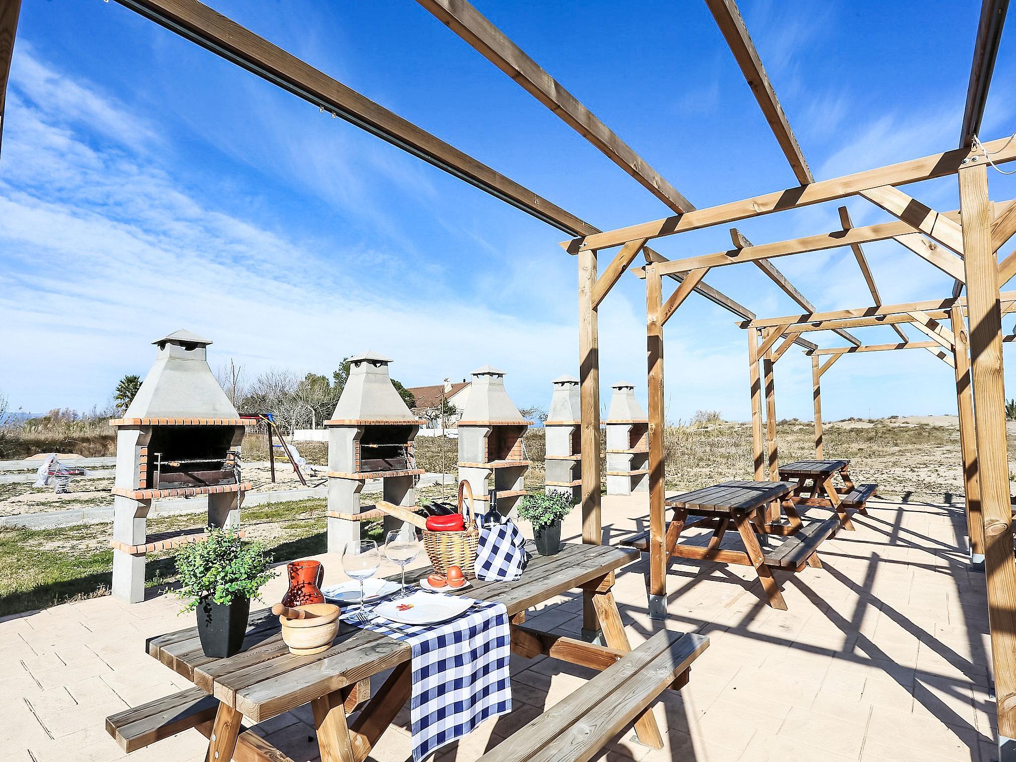 Riumar 10 km from Deltebre: Child friendly, beautiful apartment block "Royal Delta", 2 storeys, surrounded by fields. 20 apartments in the residence. In a quiet, sunny position, 50 m from the sea, 50 m from the beach, direct access to the beach. For shared use: beautiful garden with lawn, swimming pool angular (20 x 10 m, seasonal availability: 01.Jan. - 31.Dec.) with internal staircase. Children's pool, outdoor shower, tennis, barbecue. In the house: WiFi. Parking on the premises. Shop, restaurant 100 m, bus stop "Riumar" 1 km. Please note: baby equipment on request. Groups of teenagers on request only. The photograph shows a typical example.