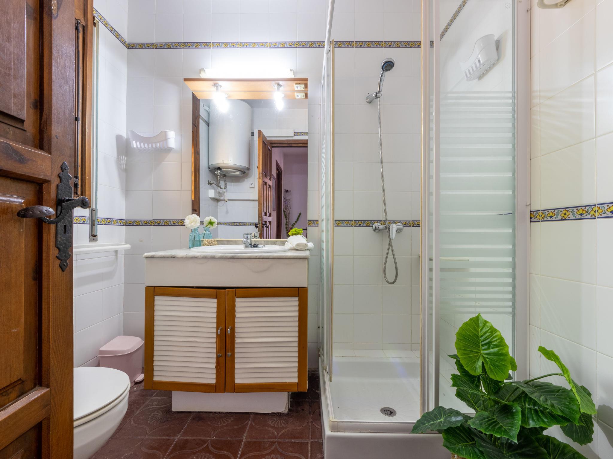 "Moru", 3-room house 65 m2. Comfortable and rustic furnishings: living/dining room with open-hearth fireplace (only for decoration), dining table, digital TV and international TV channels. Exit to the patio. 1 double bedroom with 1 french bed (135 cm, length 190 cm). 1 double bedroom with 1 bed (90 cm, length 190 cm), 1 x 2 bunk beds (90 cm, length 190 cm). Kitchen (4 hot plates, oven, dishwasher, toaster, microwave, freezer, electric coffee machine). Shower/WC. Air-conditioning, forced-air heating. Terrace furniture, barbecue (portable), deck chairs. View of the swimming pool and the garden. Facilities: washing machine, iron, mosquito net. Internet (WiFi, free). Parking at the house. Suitable for families. Maximum 2 pets/ dogs allowed. HUTTE000346 // Reg. Nr.: ESFCTU0000430190003749240000000000000000HUTTE-0003468