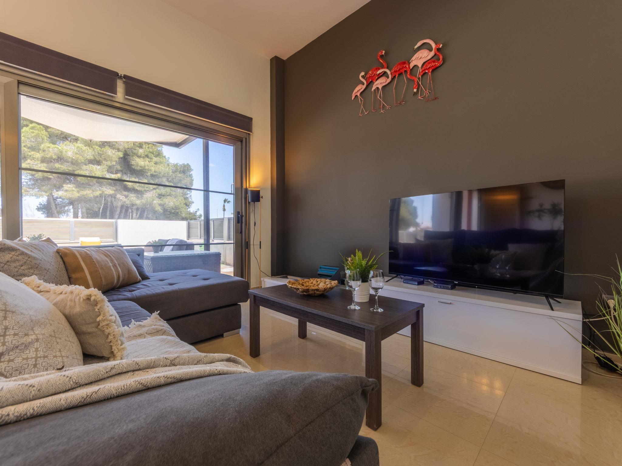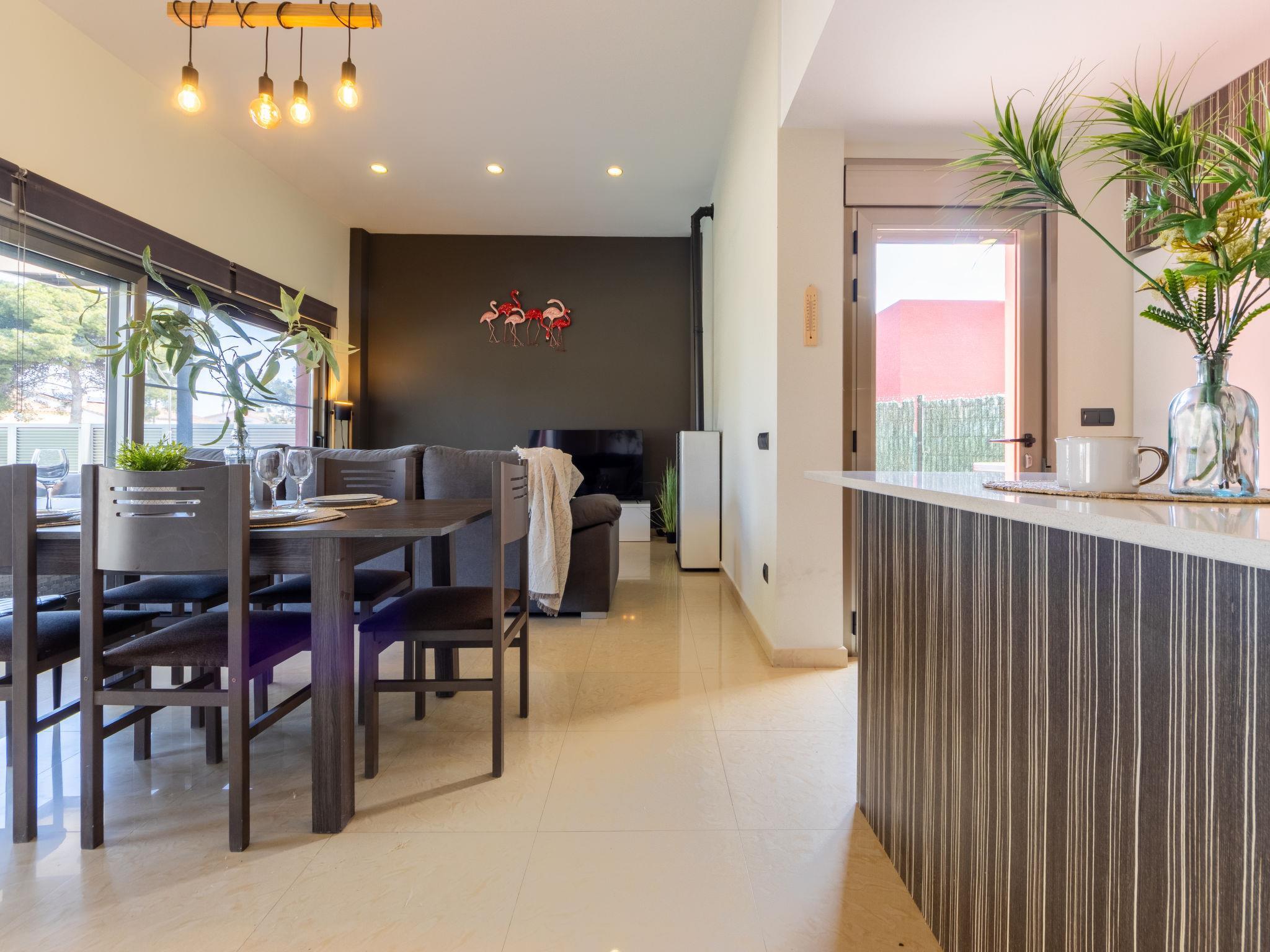Riumar 10 km from Deltebre: Modern, cosy house "Grobro 1". In a quiet, sunny position, 700 m from the sea, 700 m from the beach. Private: property (fenced), swimming pool angular (8 x 3 m, depth 160 cm, seasonal availability: 01.Apr. - 30.Nov.) with internal staircase. Outdoor shower, pergola, terrace, garden furniture, barbecue. In the house: WiFi, air conditioning, washing machine. Parking on the premises. Supermarket 500 m, restaurant, bar 300 m, bakery 600 m, bus stop "Riumar" 400 m, railway station "Aldea- Amposta" 25 km, sandy beach "Riumar" 700 m. Nearby attractions: Parc Natural del Delta 800 m, Tortosa 35 km, Playa el Trabucador 29 km, Barcelona 190 km, Port Aventura 70 km. Hiking paths: Ports Tortosa Beseit 52 km, GR 92 20 km. Please note: car recommended. Groups of teenagers on request only.