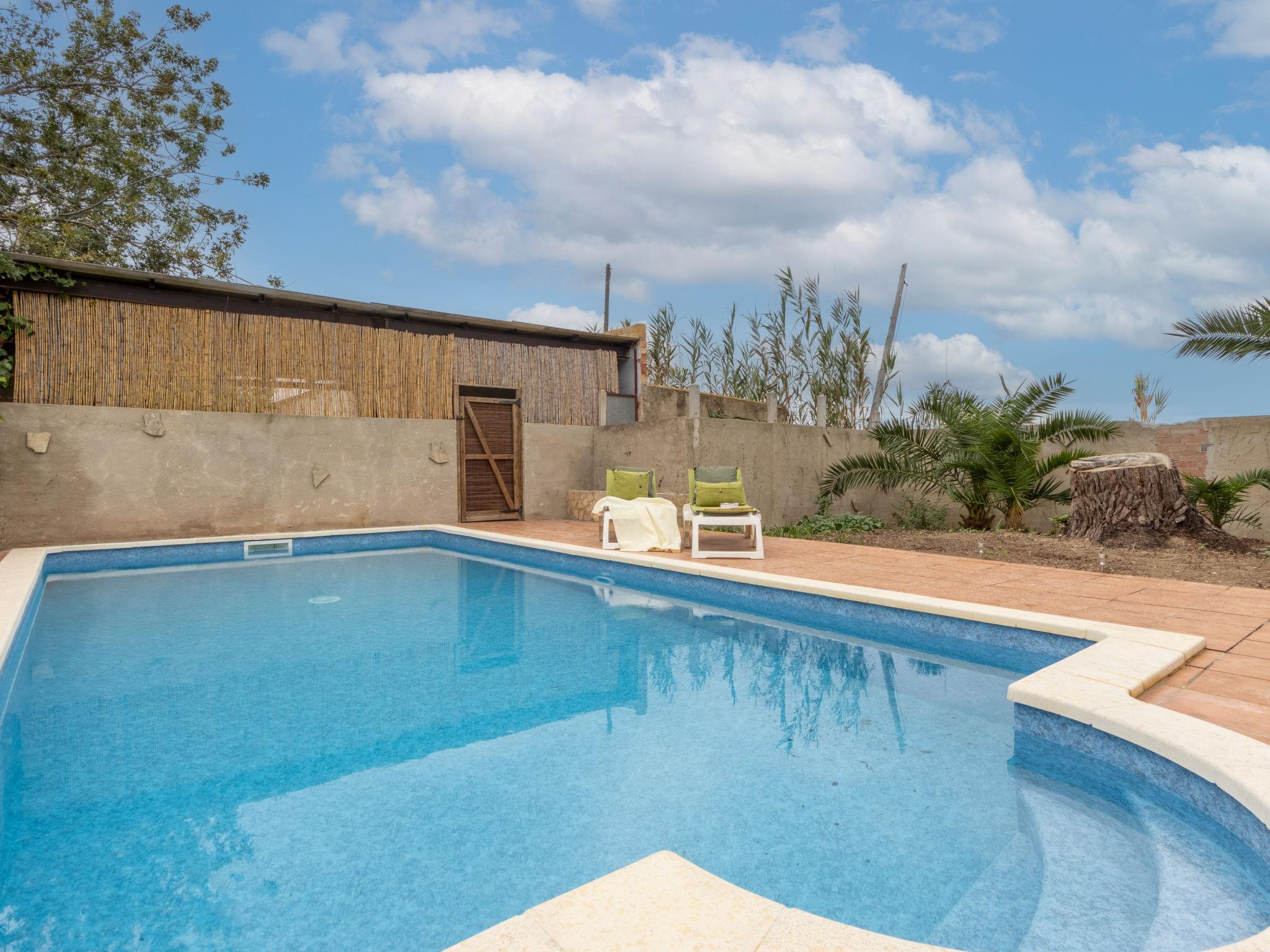Sant Jaume 10 km from Eucaliptus: Cosy, comfortable house "Corbella", surrounded by fields. 2 houses in the resort. In the resort 1 km from the centre of Sant Jaume, in a quiet, sunny position, 10 km from the sea, 10 km from the beach, in the countryside. For shared use: natural state property (fenced). Private: swimming pool angular, fenced (8 x 3 m, depth 160 cm, seasonal availability: 01.Apr. - 30.Oct.) with internal staircase. Outdoor shower, pergola, terrace, garden furniture, barbecue. In the house: WiFi, air conditioning, washing machine. Roofed, parking on the premises. Supermarket 1 km, restaurant 1 km, bar 1 km, bakery 1 km, bus stop "Sant Jaume" 1 km, railway station "Aldea- Amposta" 15 km, sandy beach "Eucaliptus" 10 km. Nearby attractions: Parc Natural del Delta 800 m, Tortosa 25 km, Playa el Trabucador 10 km, Barcelona 190 km, Port Aventura 70 km. Hiking paths: Ports Tortosa Beseit 45 km, GR 92 20 km. Please note: car recommended. Suitable for families. Groups of teenagers on request only. The owner lives on the same property. The owner has a dog.