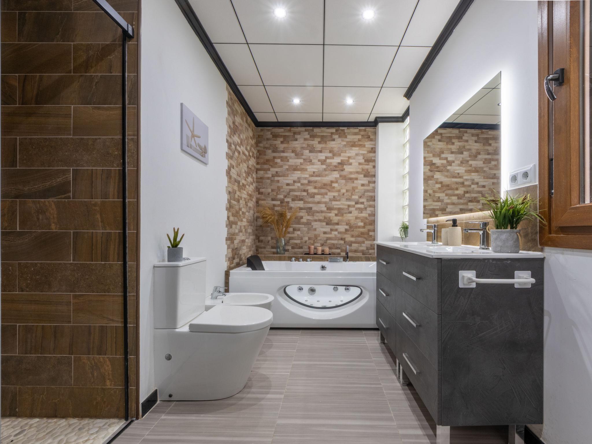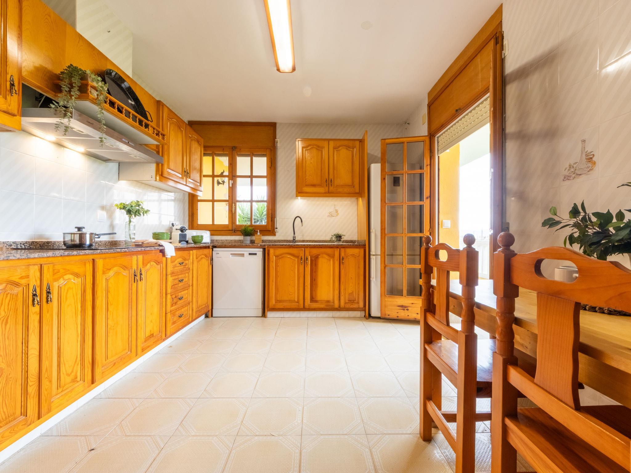 "Corbella", 5-room house 98 m2, on the upper floor. Spacious, comfortable and cosy furnishings: living/dining room with dining table, digital TV, air conditioning and forced-air heating. Exit to the terrace, to the loggia. 1 double bedroom with Dressing room with 1 french bed (180 cm, length 200 cm), bath/shower/WC, air conditioning and forced-air heating. Exit to the loggia. 1 double bedroom with 1 french bed (160 cm, length 200 cm). 1 double bedroom with 1 french bed (140 cm, length 200 cm). 1 double bedroom with 1 bed (90 cm, length 200 cm). Kitchen (oven, dishwasher, 4 ceramic glass hob hotplates, toaster, kettle, microwave, freezer, electric coffee machine). Exit to the terrace, to the loggia. Hip bath/WC. Air-conditioning, forced-air heating. Terrace furniture, barbecue (portable), deck chairs, covered balcony. View of the swimming pool and the countryside. Facilities: washing machine, iron, mosquito net, hair dryer. Internet (WiFi, free). Parking (roofed, fenced 2 cars). Please note: suitable for families. Maximum 2 pets/ dogs allowed. No lift. The pool mentioned in the description is for private use. HUTTE-078566 // Reg. Nr.: ESFCTU0000430200003265090000000000000000HUTTE-0785669