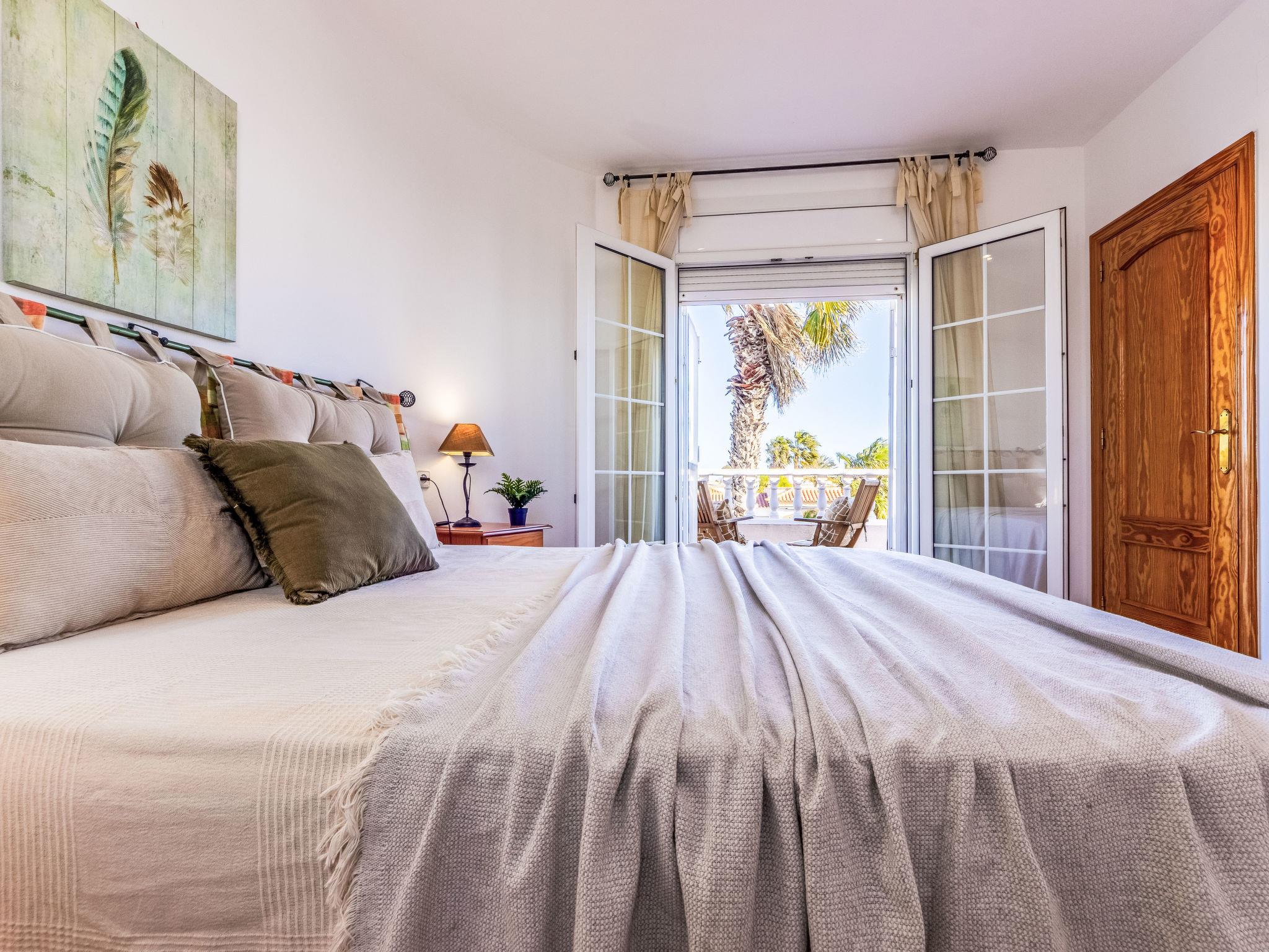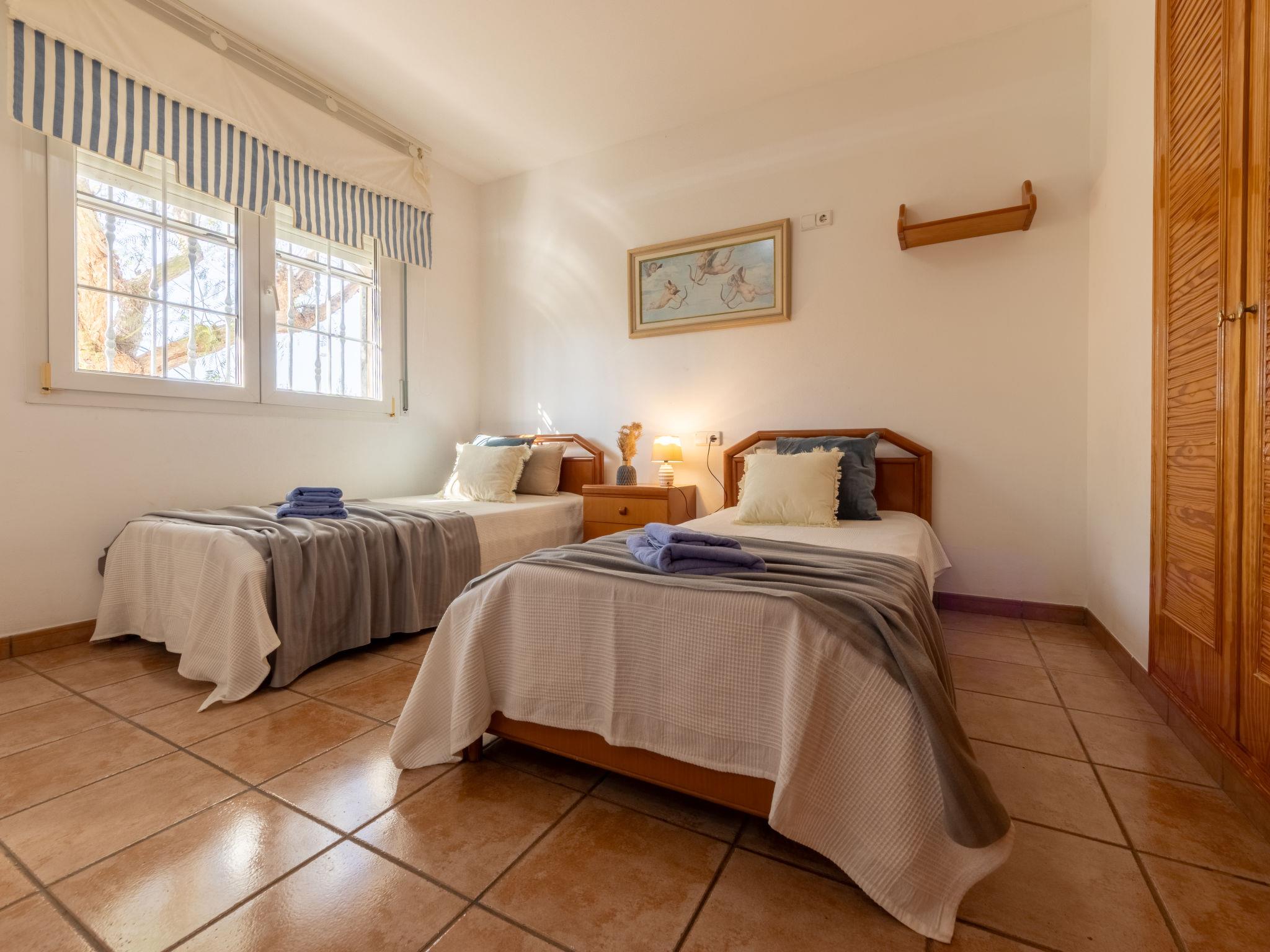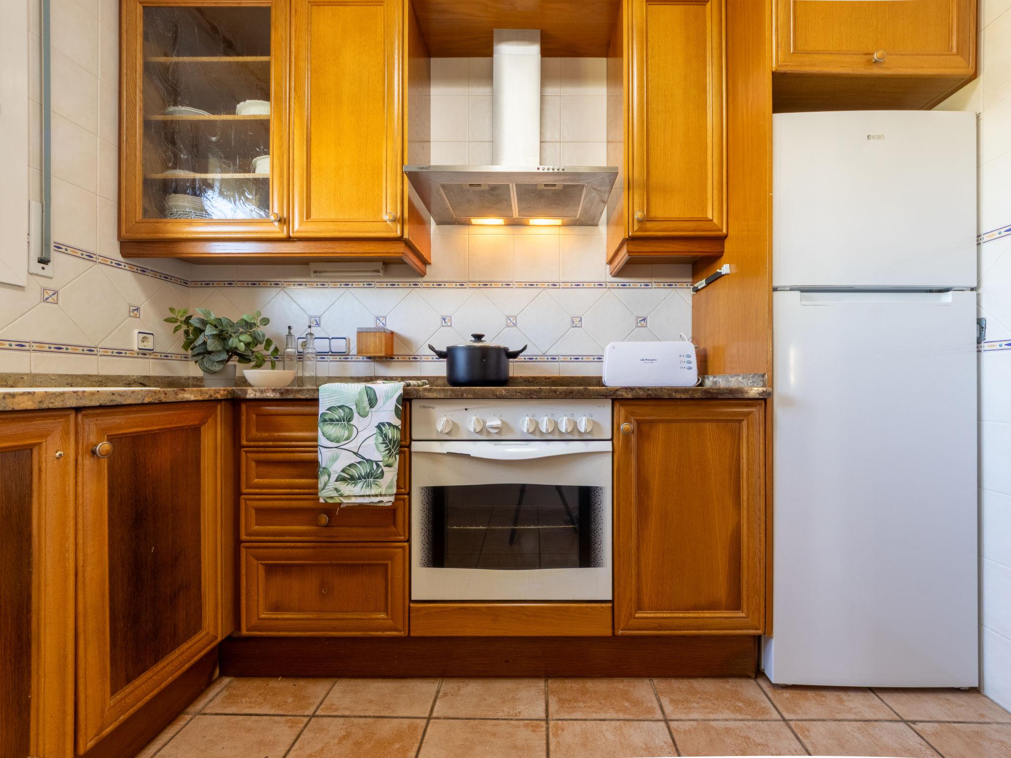 "Primavera", 4-room house 120 m2 on 2 levels. Comfortable and cosy furnishings: living/dining room with open-hearth fireplace (only for decoration), dining table and digital TV. Exit to the patio, to the swimming pool. 1 double bedroom with 2 beds (90 cm, length 190 cm). 1 double bedroom with 2 beds (90 cm, length 190 cm). Open kitchen (oven, dishwasher, 4 ceramic glass hob hotplates, toaster, microwave, freezer, electric coffee machine) with bar. Shower/WC. Air-conditioning, forced-air heating. Heating not available in all rooms. Upper floor: 1 double bedroom with 1 french bed (135 cm, length 190 cm), air conditioning and forced-air heating. Shower/WC. Patio. Terrace furniture, barbecue, deck chairs, covered balcony. View of the swimming pool and the garden. Facilities: washing machine, iron, mosquito net, hair dryer. Internet (WiFi, free). Parking (fenced). Suitable for families. Maximum 2 pets/ dogs allowed. HUTTE-001751 // Reg. Nr.: ESFCTU0000430190000918690000000000000000HUTTE-0017513