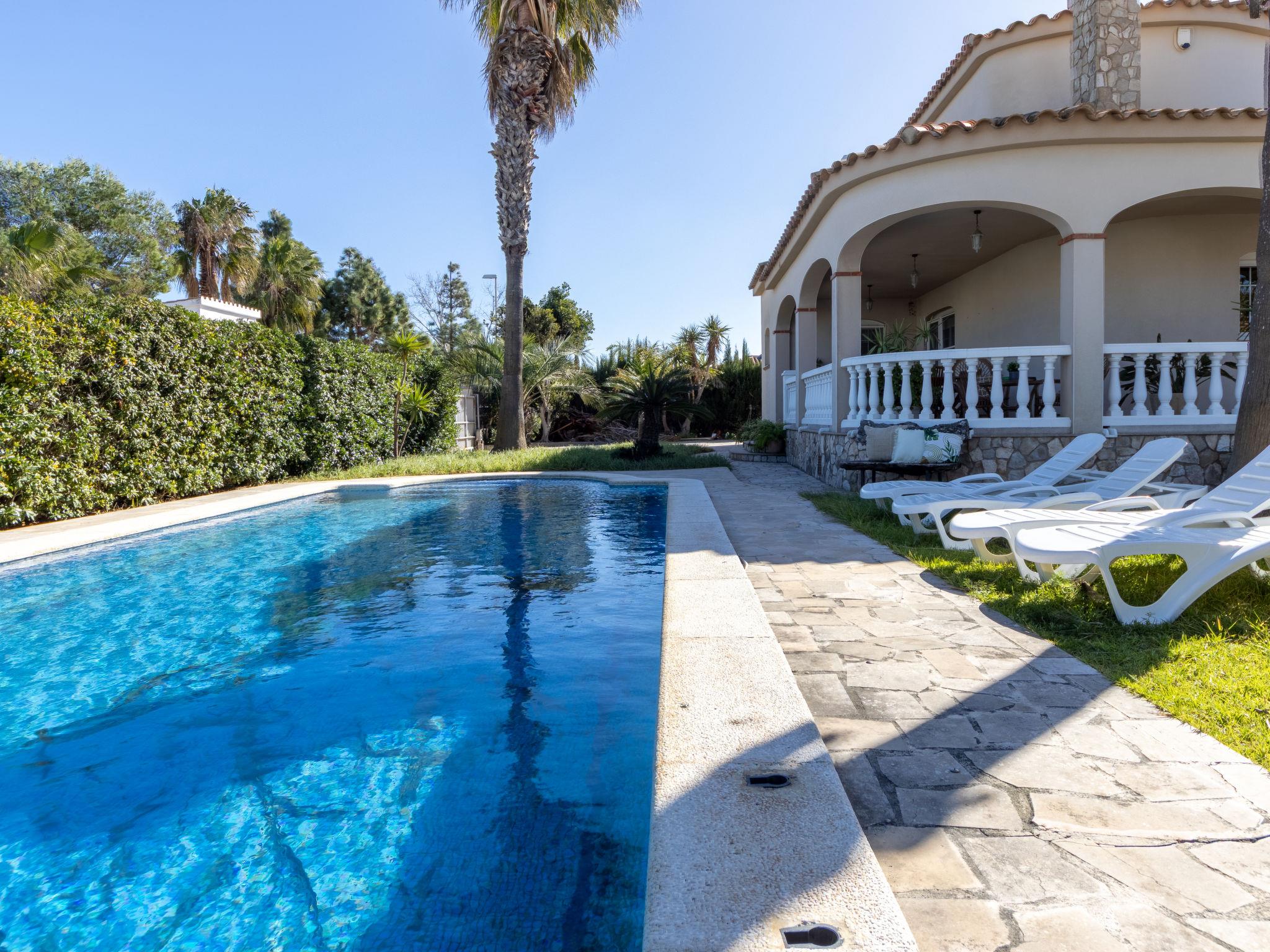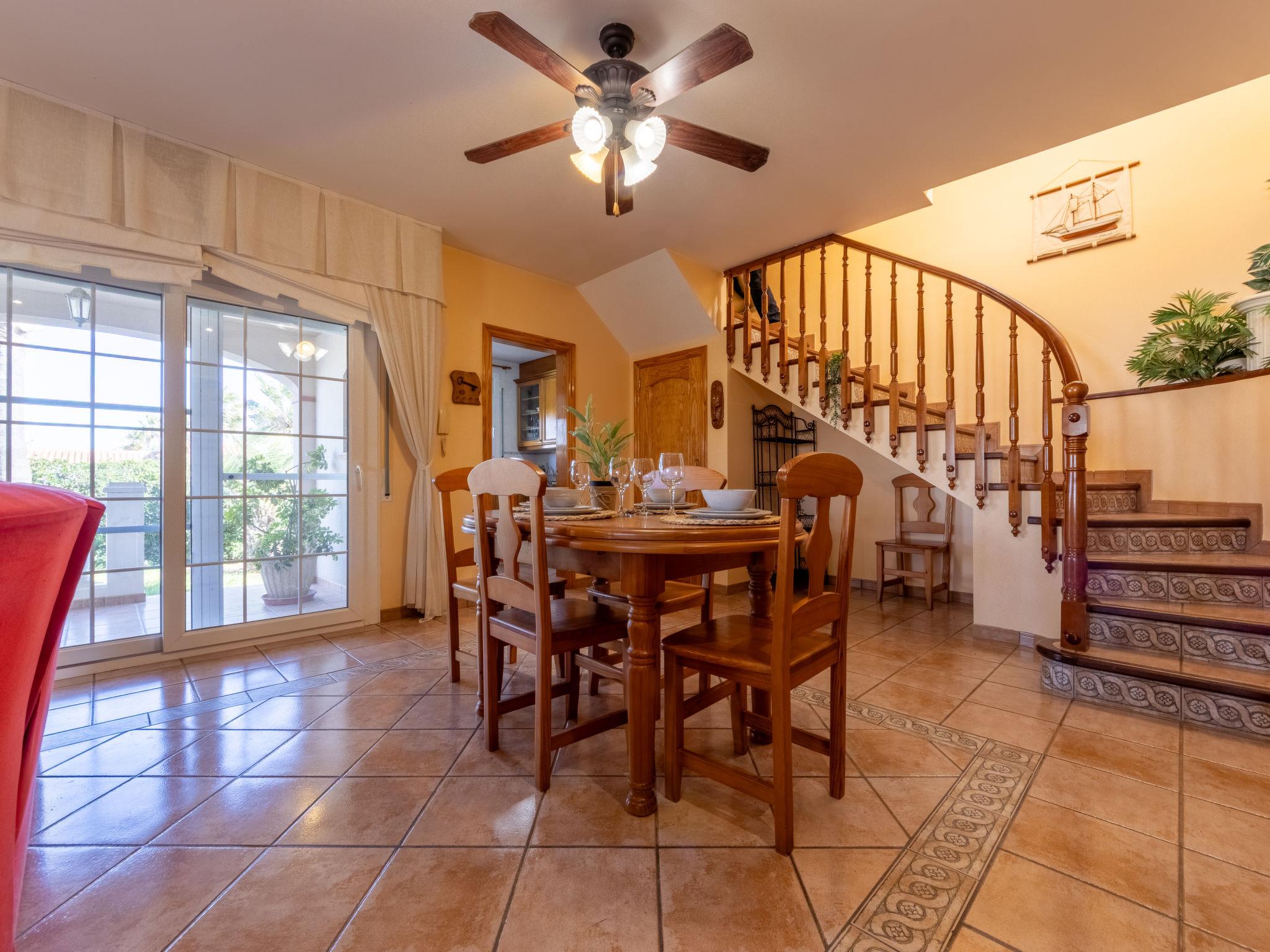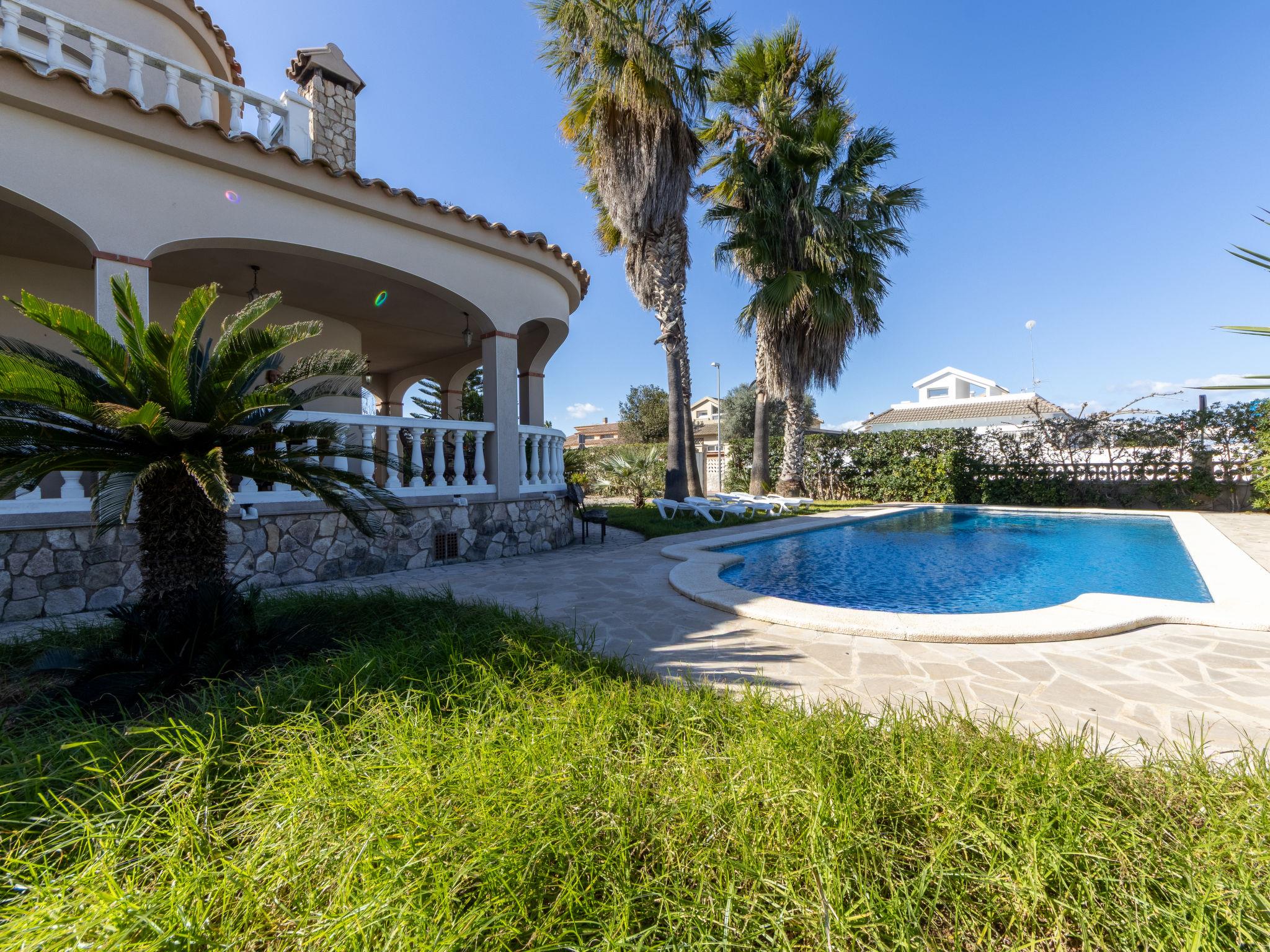 Urb. Riumar 8 km from Deltebre: Cosy, comfortable house "Primavera", 2 storeys. In a quiet, sunny position, excellent location: right in the centre but still quiet, 200 m from the sea, 200 m from the beach. Private: property (fenced), swimming pool angular (7 x 4 m, depth 190 cm, seasonal availability: 01.Apr. - 31.Nov.) with internal staircase. Outdoor shower, pergola, terrace, garden furniture, barbecue. In the house: WiFi, air conditioning, washing machine. Parking at the house on the premises. Grocery 200 m, supermarket 300 m, restaurant, bar, bakery 200 m, bus stop "Riumar" 100 m, railway station "Aldea- Amposta" 25 km, sandy beach "Riumar" 500 m. Sports harbour 1 km. Nearby attractions: Parque natural Delta del Ebro 2 km, Tortosa 35 km, Playa el Trabucador 29 km, Barcelona 190 km, Port Aventura 70 km. Hiking paths: Parque natural Puerto Tortosa Beseit 52 km, GR 92 15 km. Please note: car recommended. Suitable for families. Groups of teenagers on request only.