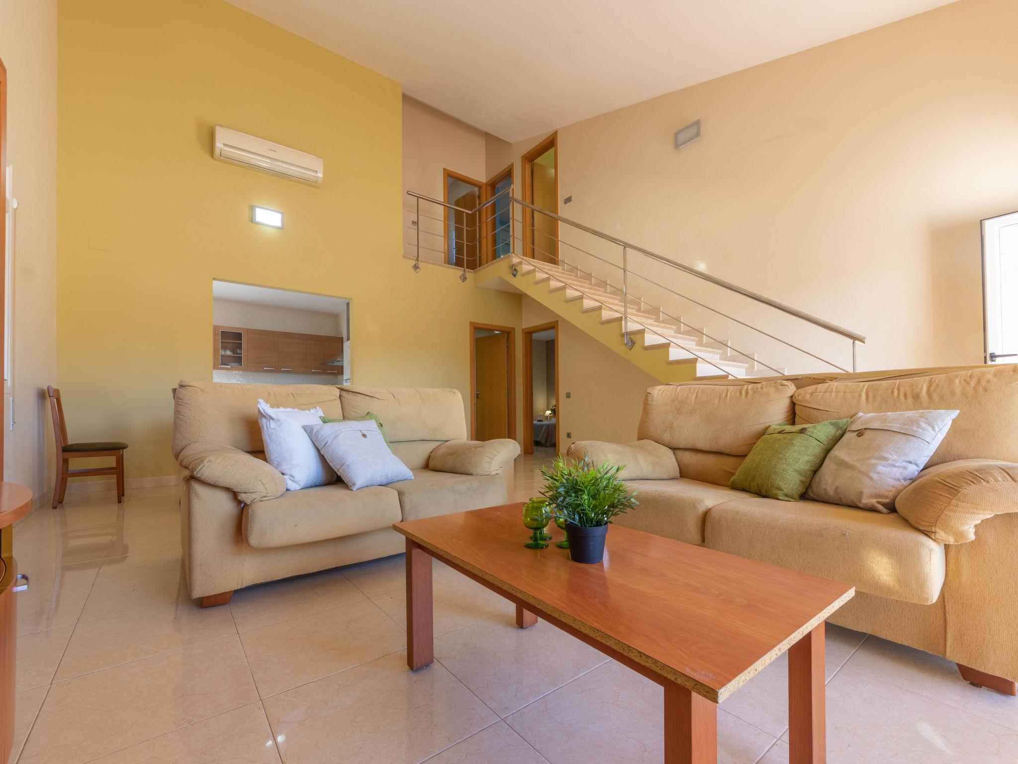 "Alex", 5-room terraced house 120 m2 on 2 levels. Spacious and bright, comfortable and cosy furnishings: living/dining room with dining table, digital TV, air conditioning and forced-air heating. Exit to the patio, to the swimming pool. 1 double bedroom with 1 french bed (135 cm, length 190 cm). Open kitchen (oven, 4 ceramic glass hob hotplates, toaster, microwave, freezer, electric coffee machine). Hip bath/bidet/WC. Air-conditioning, forced-air heating. Upper floor: 1 double bedroom with 1 french bed (135 cm, length 190 cm). 2 double bedrooms, each room with 2 beds (90 cm, length 190 cm). Shower/WC. Patio. Terrace furniture, barbecue, deck chairs. Facilities: washing machine, iron, mosquito net. Internet (WiFi, free). Parking (fenced), garage. Suitable for families. Maximum 2 pets/ dogs allowed. HUTTE000150 // Reg. Nr.: ESFCTU0000430190002441280000000000000000HUTTE-0001503