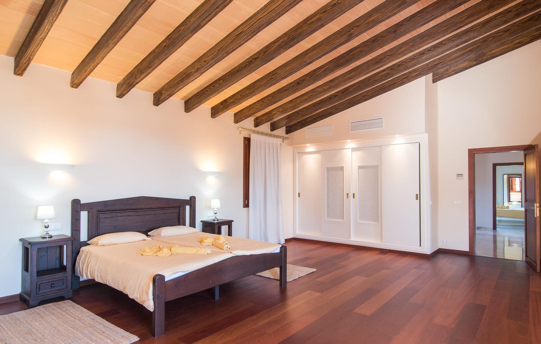 Kender I den følelse? I kommer ind i et hus for første gang og ved med det samme: Jeg vil blive her. I burde mærke denne mavefornemmelse her, for Villa "Dues" fortryllede os straks. På den omfattende 30.000 m² store ejendom er der skabt et sted med stor dygtighed og sans for detaljer, der kærtegner sjælen og med garanti vil få jer til at smile. Tag en dyb indånding og oplev et helt magisk øjeblik, når solen bevæger sig over bjergkæden og bader landskabet i gyldent lys: Den storslåede udsigt formidler en følelse af storhed. Direkte ved huset er der en overdækket terrasse med stort spisebord og grill, samt et område med liggestole til afslapning og en hyggelig udendørs lounge. Elsker I solen? Yderligere liggestole er tilgængelige i poolområdet til lang solbadning. Den store, indbydende pool byder ikke kun på en forfriskning på varme dage, men takket være den tilstødende græsplæne er den også det perfekte sted til jeres morgentræning eller en picnic i solnedgangen. Den øverste etage i den to-etagers bygning er omgivet af flere altaner: Heroppefra kan I se langt over øen og til havet. De 430 m² boligareal er fordelt på to etager. I stueplan finder I den lyse stue i lyse farver, køkken, gæstetoilet og soveværelse med badeværelse. En spisestue støder op til den stilfuldt indrettede stue med pejsehjørne og et stort sofasæt. Herfra kan I gå direkte til det ultramoderne køkken med kogeø, ovn, mikroovn og stort køleskab. Alle værelser har direkte adgang til haven. Det moderne soveværelse med dobbeltseng har sit eget, dagslysfyldte en-suite badeværelse med en stor vask. På øverste etage finder I yderligere tre rummelige soveværelser, som hver kan rumme to personer. Samtlige værelser er indrettede i varme farver og har dobbeltseng og eget badeværelse med badekar eller brusekabine. Kan I lide det køligt om natten? Intet problem, for jeres sommerhus er fuldt airconditioneret; I hvert rum kan I nemt vælge den ønskede omgivelsestemperatur. Villaens udsatte, afsondrede beliggenhed garanterer 100% privatliv og uforglemmelige øjeblikke i en meget idyllisk region på Mallorca. Bygningen, der er bygget i klassisk stil, ligger majestætisk på en bakke, omgivet af en maquis af lavendel og kostebuske, vilde oliventræer, fyrretræer og Aleppo fyrretræer, rosmarin og cistus. Det milde middelhavsklima med dets mange solskinsdage har skabt et landskab, der er uden sidestykke i sin skønhed og ynde. Urban flair kan opleves i Mallorcas næststørste by, Manacor: Byen er kendt for sin perleindustri og med sine historiske aristokratiske huse, og byen har nu kastet sit mere industrielle image og overrasker nu besøgende med smalle gader, smukke caféer, restauranter og butikker. Især det ugentlige marked emmer af en typisk mallorcansk holdning til livet. De smukkeste bugter og strande på østkysten, herunder den betagende Cala Romantica, er ikke langt væk i bil. Derudover byder regionen på utallige vandrestier, vandsportsmuligheder og talrige attraktioner - stort set alt, hvad I værdsætter i en varieret, yderst afslappende ferie. Den smukke naturstensvilla "Dues" ligger højt i middelhavslandskabet syd for byen Manacor. Den udsatte, afsondrede beliggenhed garanterer 100 % privatliv og en bred, uhindret udsigt over den store, frugtbare slette Llevant. Der er ingen direkte naboer: Her kan I nyde et luksuriøst underdrivelse uden for den slagne turiststi. På ingen tid når I perlebyen Manacor, hvor I kan gøre jeres daglige indkøb eller besøge en af de mange restauranter.
