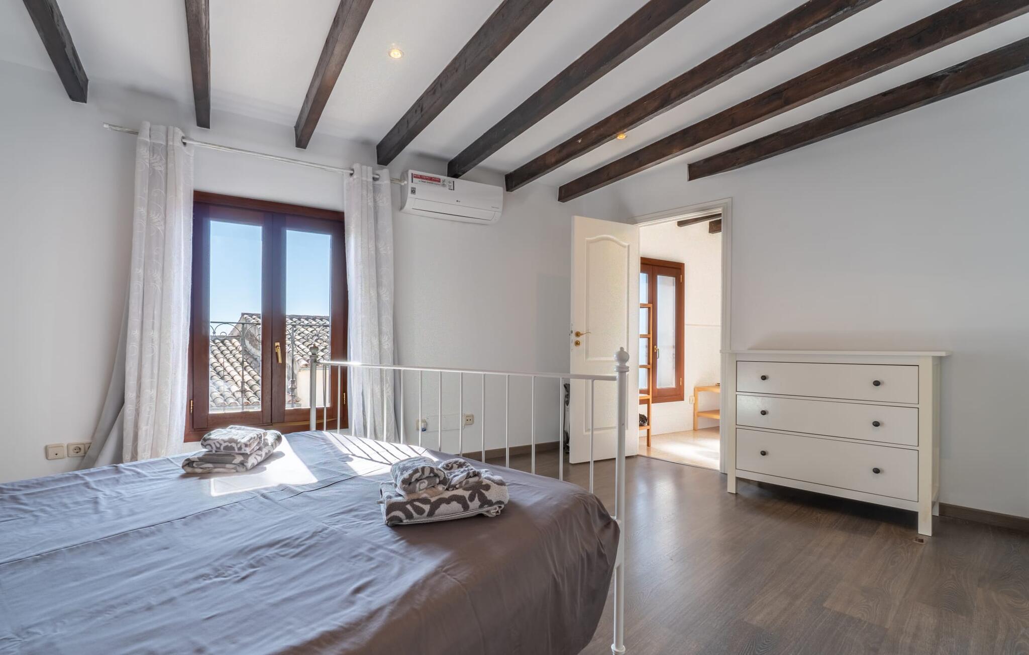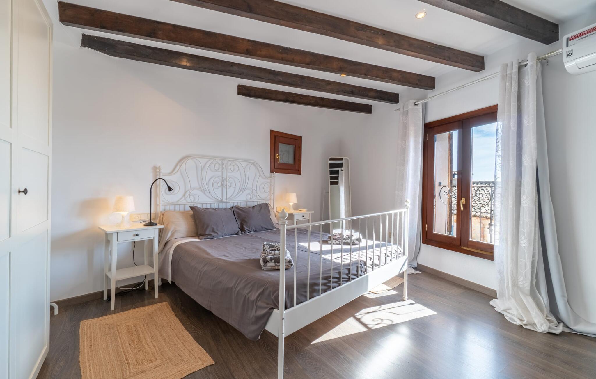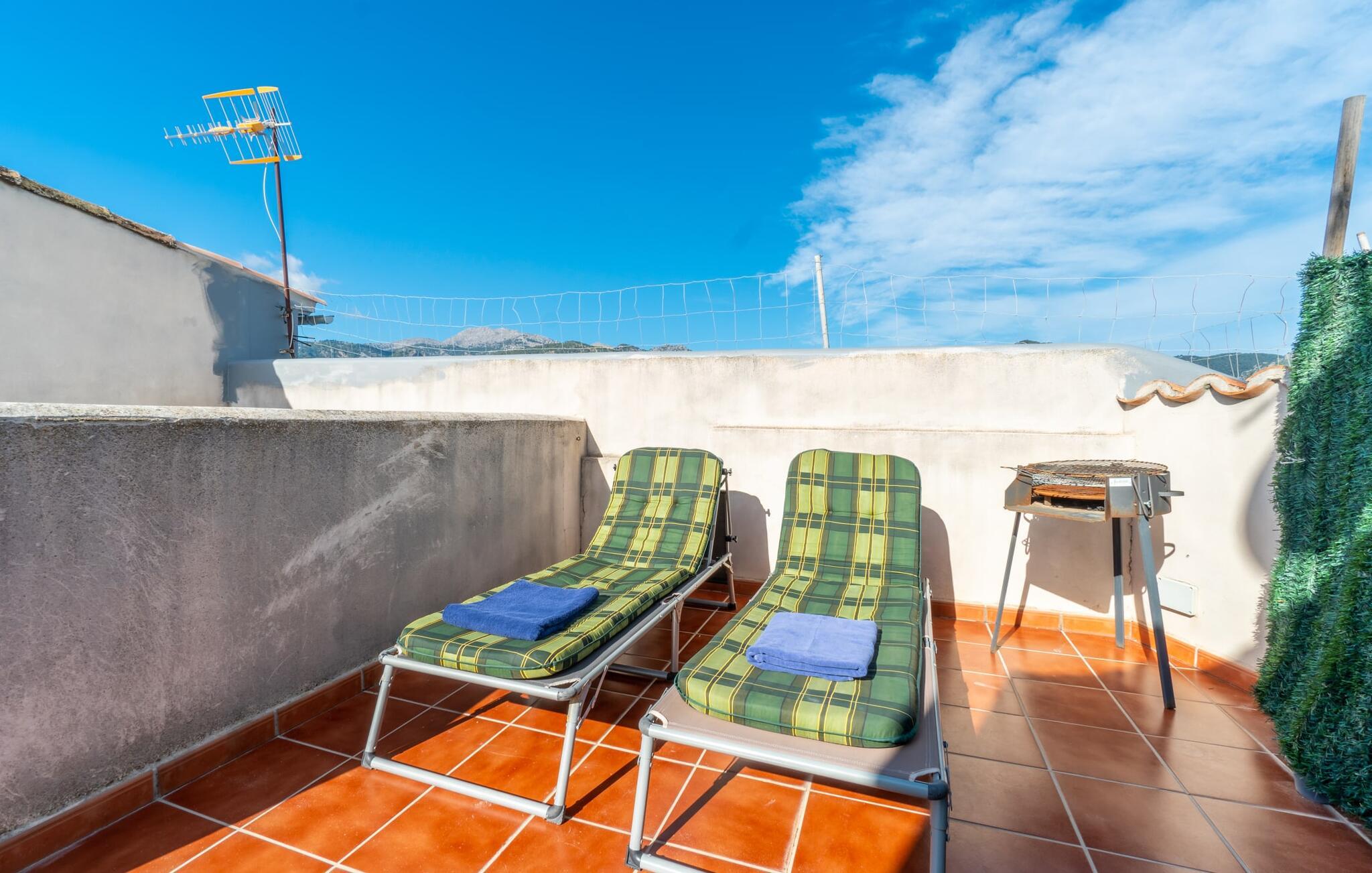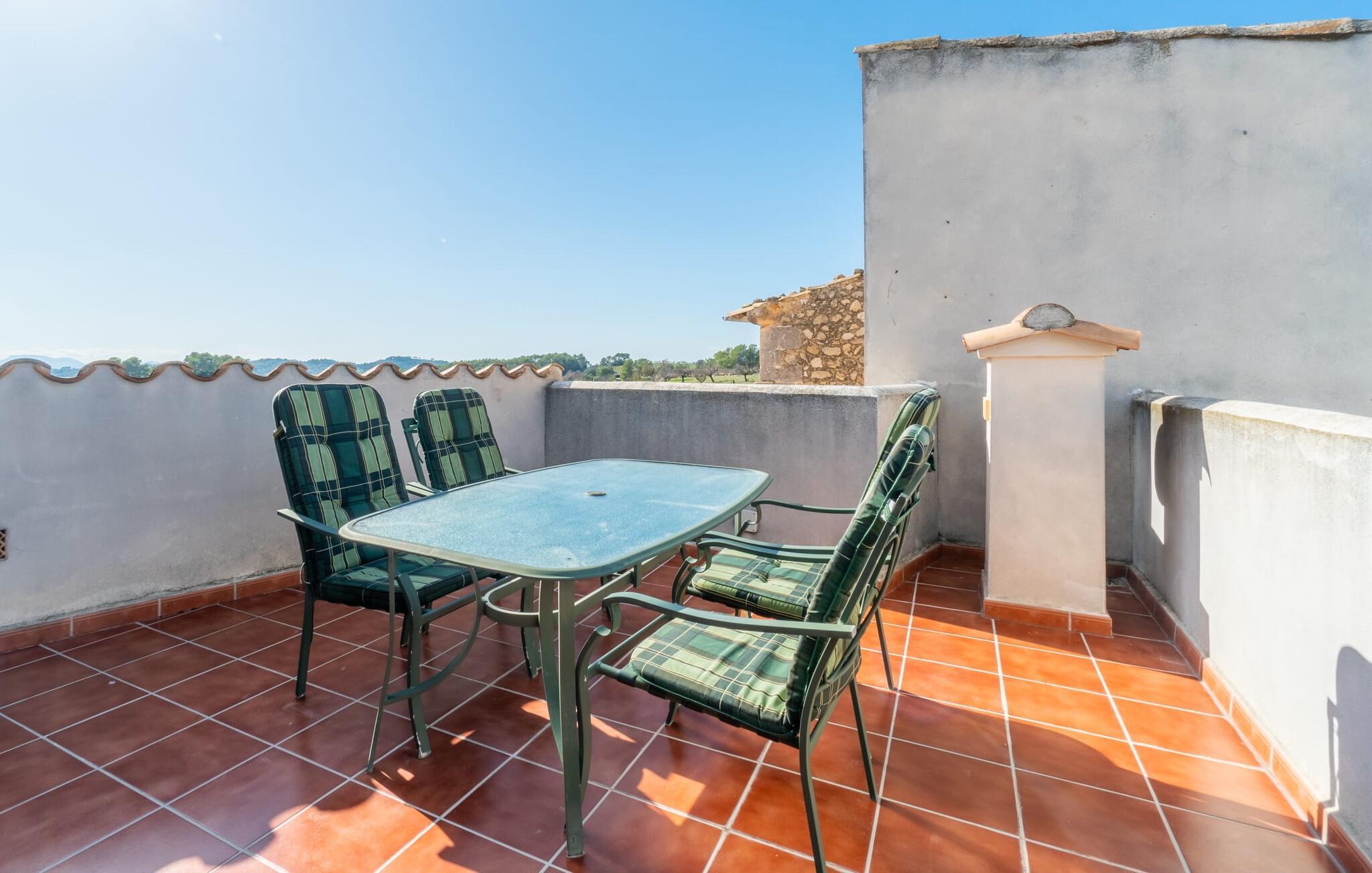 Den komfortabelt indrettede ferielejlighed "Duplex can Roses" imponerer med sin smukke bjergkulisse, især når man står på tagterrassen i dette hus. Det ligger overfor kirken, ved foden af Tramuntana-bjergene. Denne lejlighed er et ideelt udgangspunkt for at udforske det omkringliggende område. Samtidig har I mulighed for at opleve autentisk ø-liv i denne typiske mallorcanske landsby. Hvis I gerne vil bruge tid i boligen, finder I liggestole, stole og et bord på ovennævnte terrasse. Der er ingen grænser for omfattende solbadning, en udendørs morgenmad eller en grillaften. Indenfor byder denne lejlighed på første sal en behagelig, hyggelig atmosfære. Stuen og spisestuen er et hyggeligt område at slappe af. Det lille bord er et godt sted at spise sammen. Et andet opholdsområde er i køkkenet ved siden af. Det er fuldt udstyret og ideelt til selvstændig forplejning på ferie. Der er også et gæstetoilet på denne etage. Soveværelset med dobbeltseng og badeværelset med bruser er et niveau over. Tagterrassen er også heroppe. Tilstedeværelsen af radiatorer og varm-kold aircondition tillader behagelige ophold i denne ferielejlighed på Mallorca hele året rundt. Beliggende på et højt plateau byder byen på enkle indkøbsmuligheder og restauranter. Større indkøb kan foretages i Selva (4 km) eller Campanet (3 km). Populære strande i nord, herunder Platja del Muro, er ca. 21 km væk.