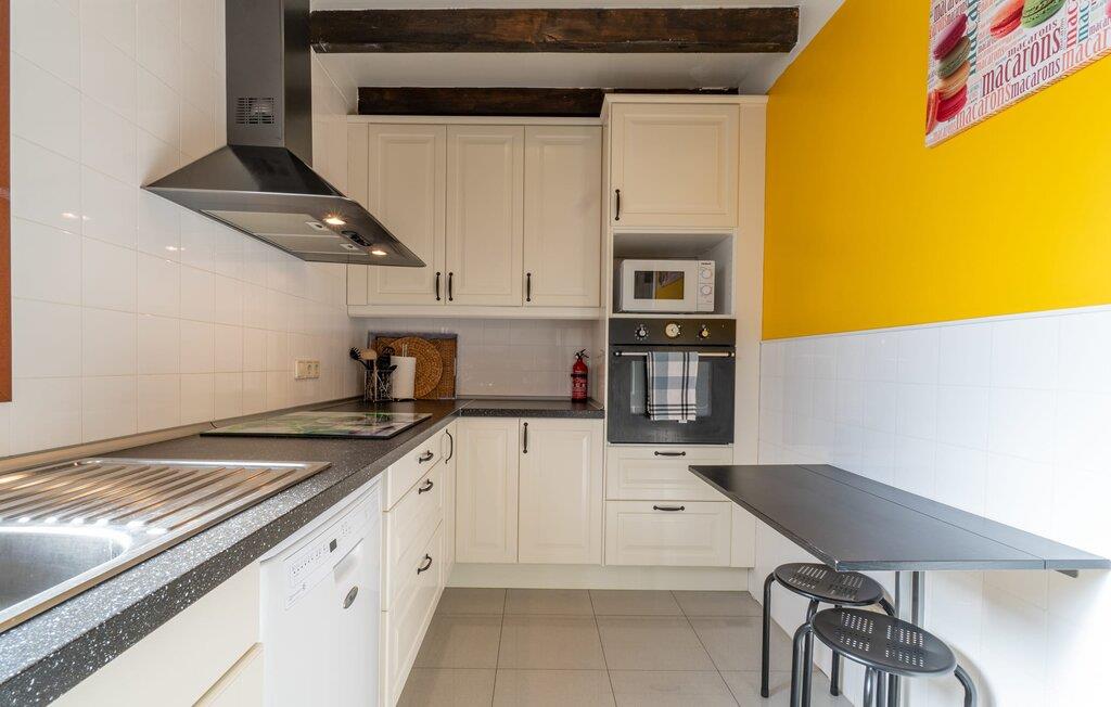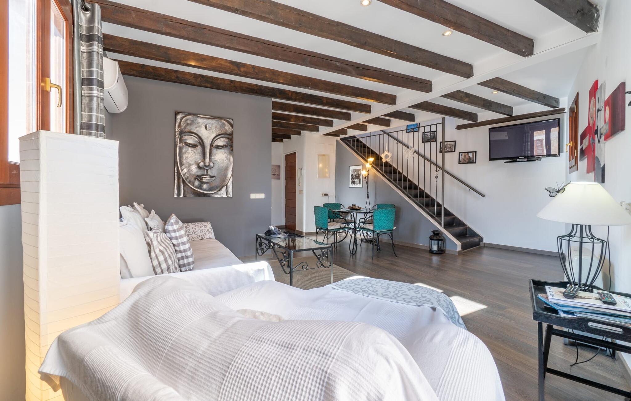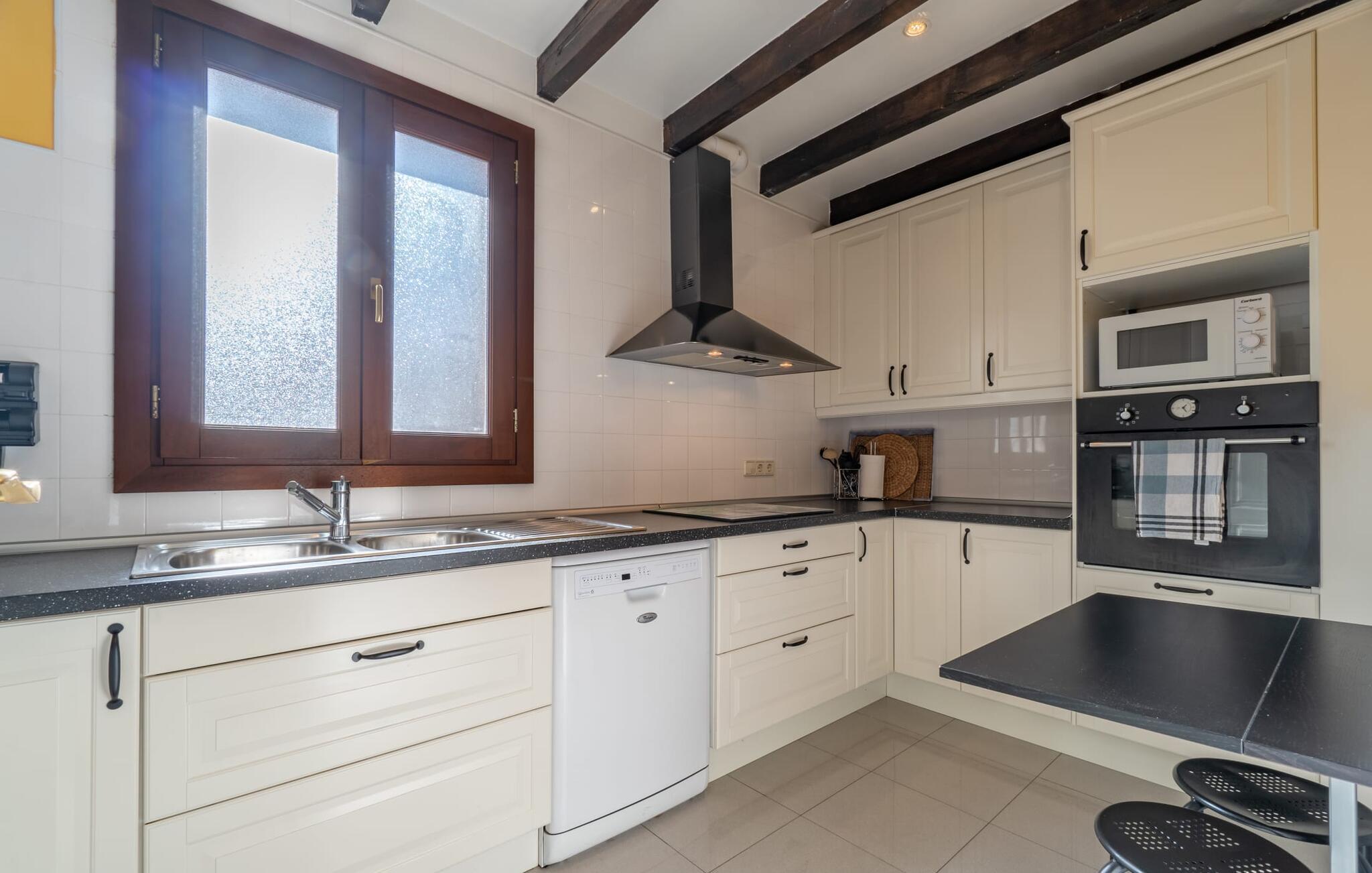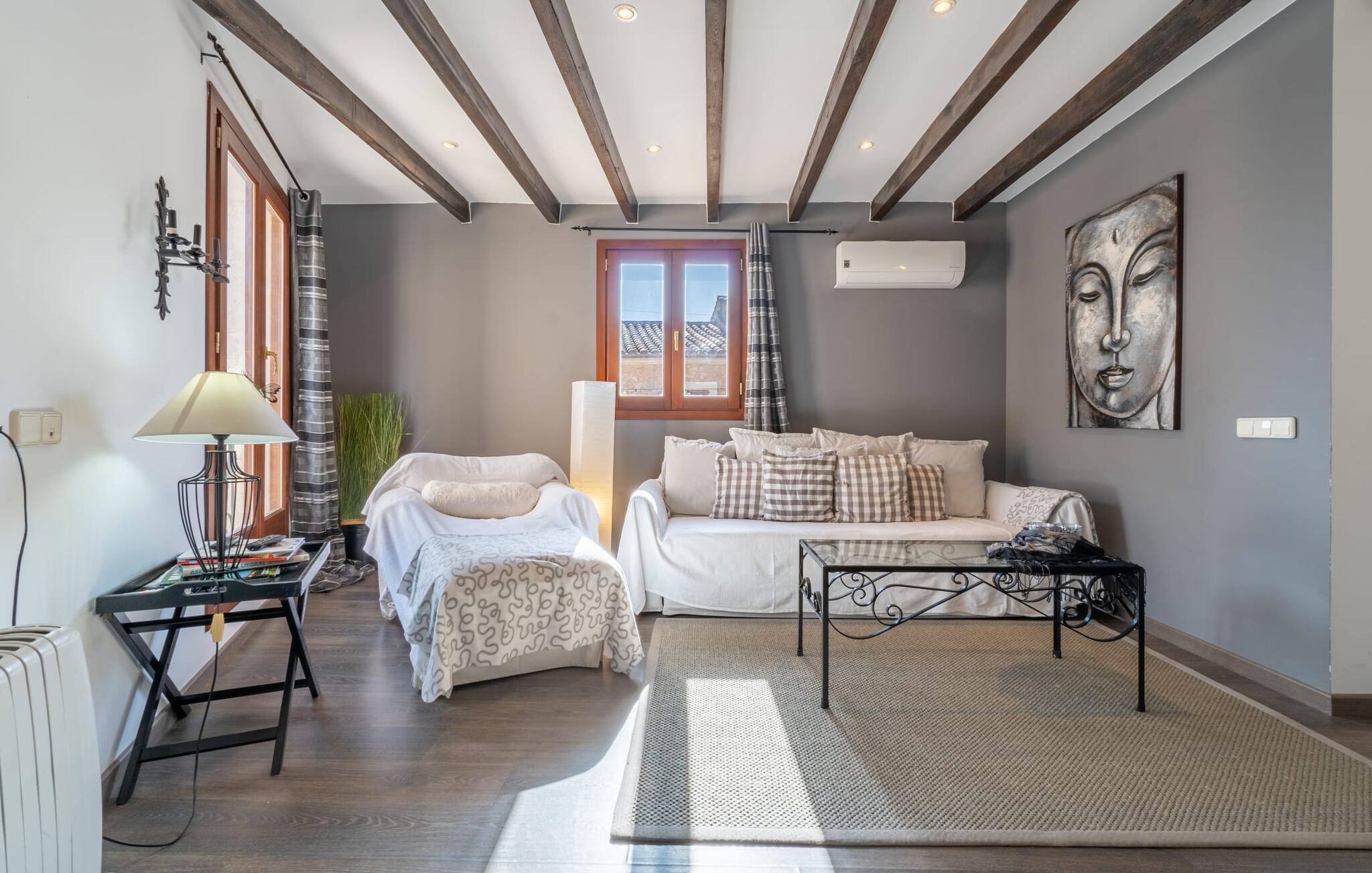 Den komfortabelt indrettede ferielejlighed "Duplex can Roses" imponerer med sin smukke bjergkulisse, især når man står på tagterrassen i dette hus. Det ligger overfor kirken, ved foden af Tramuntana-bjergene. Denne lejlighed er et ideelt udgangspunkt for at udforske det omkringliggende område. Samtidig har I mulighed for at opleve autentisk ø-liv i denne typiske mallorcanske landsby. Hvis I gerne vil bruge tid i boligen, finder I liggestole, stole og et bord på ovennævnte terrasse. Der er ingen grænser for omfattende solbadning, en udendørs morgenmad eller en grillaften. Indenfor byder denne lejlighed på første sal en behagelig, hyggelig atmosfære. Stuen og spisestuen er et hyggeligt område at slappe af. Det lille bord er et godt sted at spise sammen. Et andet opholdsområde er i køkkenet ved siden af. Det er fuldt udstyret og ideelt til selvstændig forplejning på ferie. Der er også et gæstetoilet på denne etage. Soveværelset med dobbeltseng og badeværelset med bruser er et niveau over. Tagterrassen er også heroppe. Tilstedeværelsen af radiatorer og varm-kold aircondition tillader behagelige ophold i denne ferielejlighed på Mallorca hele året rundt. Beliggende på et højt plateau byder byen på enkle indkøbsmuligheder og restauranter. Større indkøb kan foretages i Selva (4 km) eller Campanet (3 km). Populære strande i nord, herunder Platja del Muro, er ca. 21 km væk.