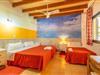 Villaen "El Bosque Candy" med fladt tag ligger i virkelig magiske omgivelser på en stor grund, der strækker sig over 67.000 m² næsten så langt øjet rækker. Den enorme have giver børnene masser af plads til at løbe rundt og lege på den frodige grønne græsplæne og har også plads til et volleyballnet, en basketballkurv og et bordtennisbord. Det er omgivet af store palmer, bambusgræs, cypresser og 100 oliventræer. Det betyder fuldstændig afsondrethed og en vidunderlig nærhed til naturen. Og fuldstændig ro, som I kan nyde både i haven og i huset. Det enorme område er særdeles velegnet til at rejse med en stor gruppe. Poolen er indlejret i græsplænen. Og komfortable liggestole venter på jer på den omkringliggende naturstenterrasse. Det hyggeligste sted at sidde er dog nok loungeområdet under en pergola i caribisk stil ved siden af poolen. Det er et vidunderligt sted at slappe af, spille et brætspil eller blot mens I er væk fra tiden til en god snak i en afslappet atmosfære. Bag en dør med persienner er der et yderst praktisk badeværelse med bruser og toilet, som kun er tilgængeligt fra haven. En indbygget muret grill venter på jer på den anden side af poolen. I øvrigt fører trappen langs husets udvendige facade jer op til den enorme tagterrasse med panoramaudsigt over det blide landskab - simpelthen fantastisk! Den tilstødende veranda rummer et stort bord af høj kvalitet og komfortable stole. Fordi det er særligt godt beskyttet mod elementerne og er lige ved siden af et fransk vindue, er det det perfekte sted at nyde alle jeres måltider, serveret hurtigt så tæt på hjemmet. Interiøret er perfekt til at rumme flere par eller op til tre familier afhængigt af belægningen. Alle fællesarealer tilbyder plads nok til et større antal personer. Opholdsstuen er indrettet med flere lyse sofaer og byder på plads nok til at alle kan se en film sammen om aftenen. Og alle vil finde deres sædvanlige plads ved det store bord i den åbne spiseplads. Det separate køkken ved siden af tilbyder præcis den komfort, I har brug for, for at gøre selvforplejningen sjov for alle involverede. Måltider kan tilberedes ved det bekvemt placerede køkkenbord. Særligt flot er den direkte adgang til haven og den caribisk-inspirerede poolterrasse. Soveværelserne tilbyder også perfekt komfort: Hvert af de fuldt klimatiserede værelser har sit eget badeværelse, hvilket er særligt praktisk, hvis I rejser i en stor gruppe. Der er fem individuelt designede soveværelser, hvoraf tre hver er udstyret med to enkeltsenge eller en 1,50 m bred dobbeltseng. Begge tredobbeltværelser er ideelle som børneværelser og tilbyder soveplads til seks børn, svarende til seks voksne i dobbeltværelserne. I kan også booke to børnesenge mod et ekstra gebyr, hvilket giver jer fuld fleksibilitet i værelsesindretningen til jeres gruppe. Helt rolig beliggenhed med 100% privatliv, omgivet af smuk ø-landskab og tæt på stranden, cirka 15 minutter syd for Palma - det, der næsten lyder som en selvmodsigelse, er helt ægte i villaen "El Bosque Candy". Læg dertil dens størrelse og god værdi for pengene, og dette muntre feriehus bliver yderst attraktivt. Ejendommen er beliggende lige uden for urbaniseringen Ses Palmeras i kommunen Llucmajor. Byen Llucmajor ligger 17 km derfra. Udover det store bondemarked onsdag og fredag, er Placa Espanya også et besøg værd for at nyde en god kop kaffe. Stedet, der er populært blandt cyklister, er også et godt udgangspunkt for vandreture, for eksempel til Randa-bjerget. Så hvorfor ikke selv tage på cykeltur og udforske de smukke omgivelser? Der er syv cykler i forskellige størrelser til rådighed til leje i huset. Den store familievenlige villa "El Bosque Candy" er omgivet af en parklignende have og en frodig grøn græsplæne. Villaen har en helt rolig beliggenhed og kun 200 m væk fra den nærmeste by. Der finder I alt, hvad I skal bruge til at dække jeres daglige behov. Øens hovedstad Palma ligger kun 15 km væk og byder på en livlig kontrast til det stille villaliv. Det er virkelig en perfekt beliggenhed, da havet og strandene også ligger få minutters kørsel væk.