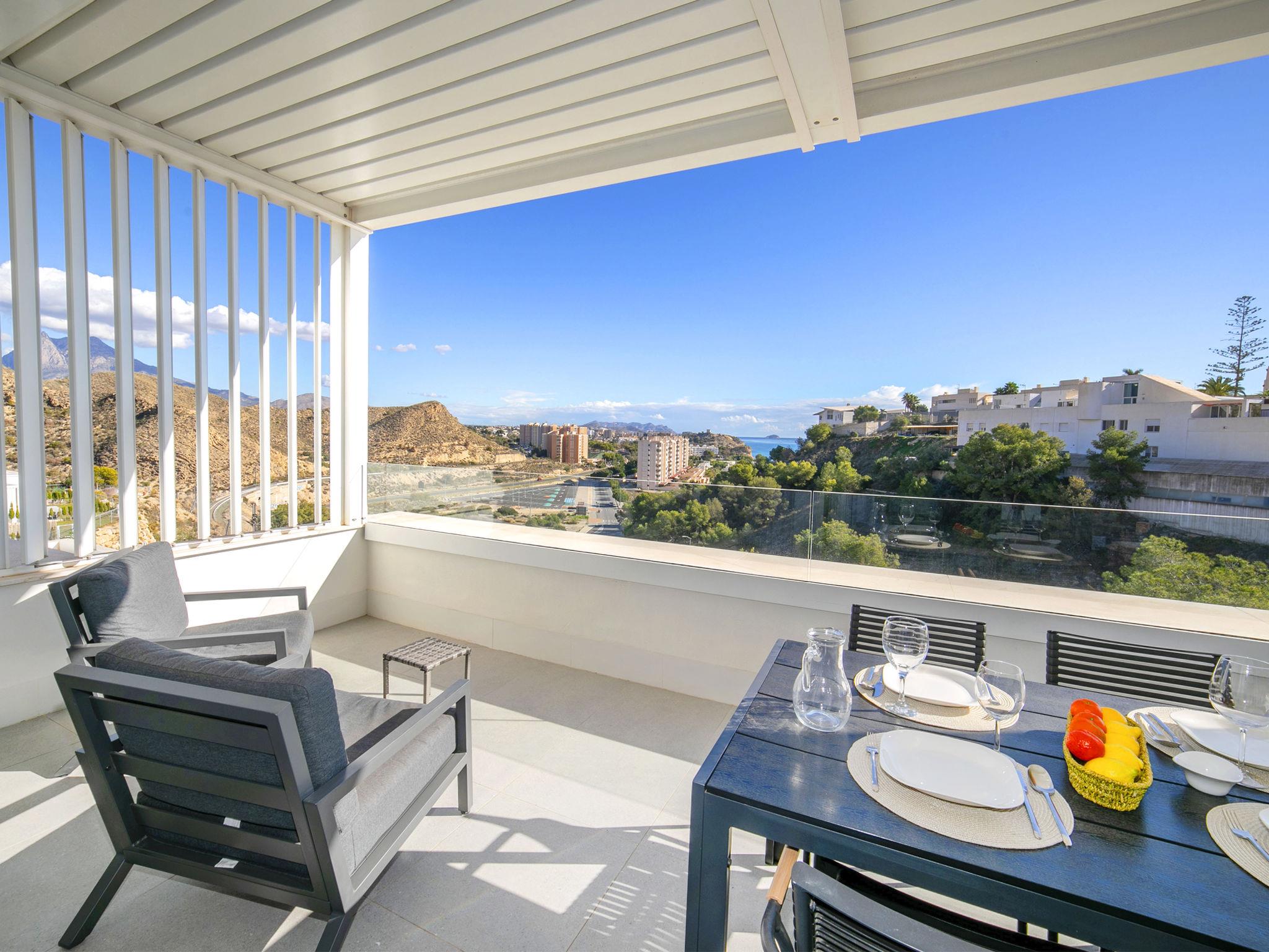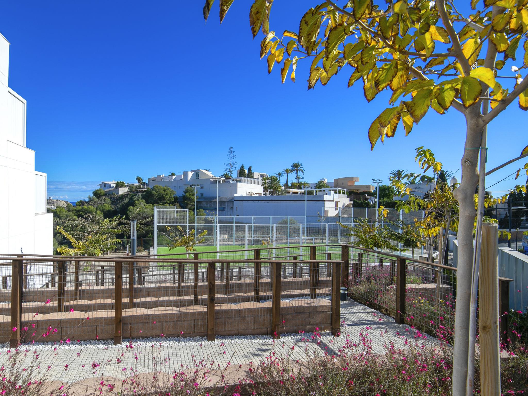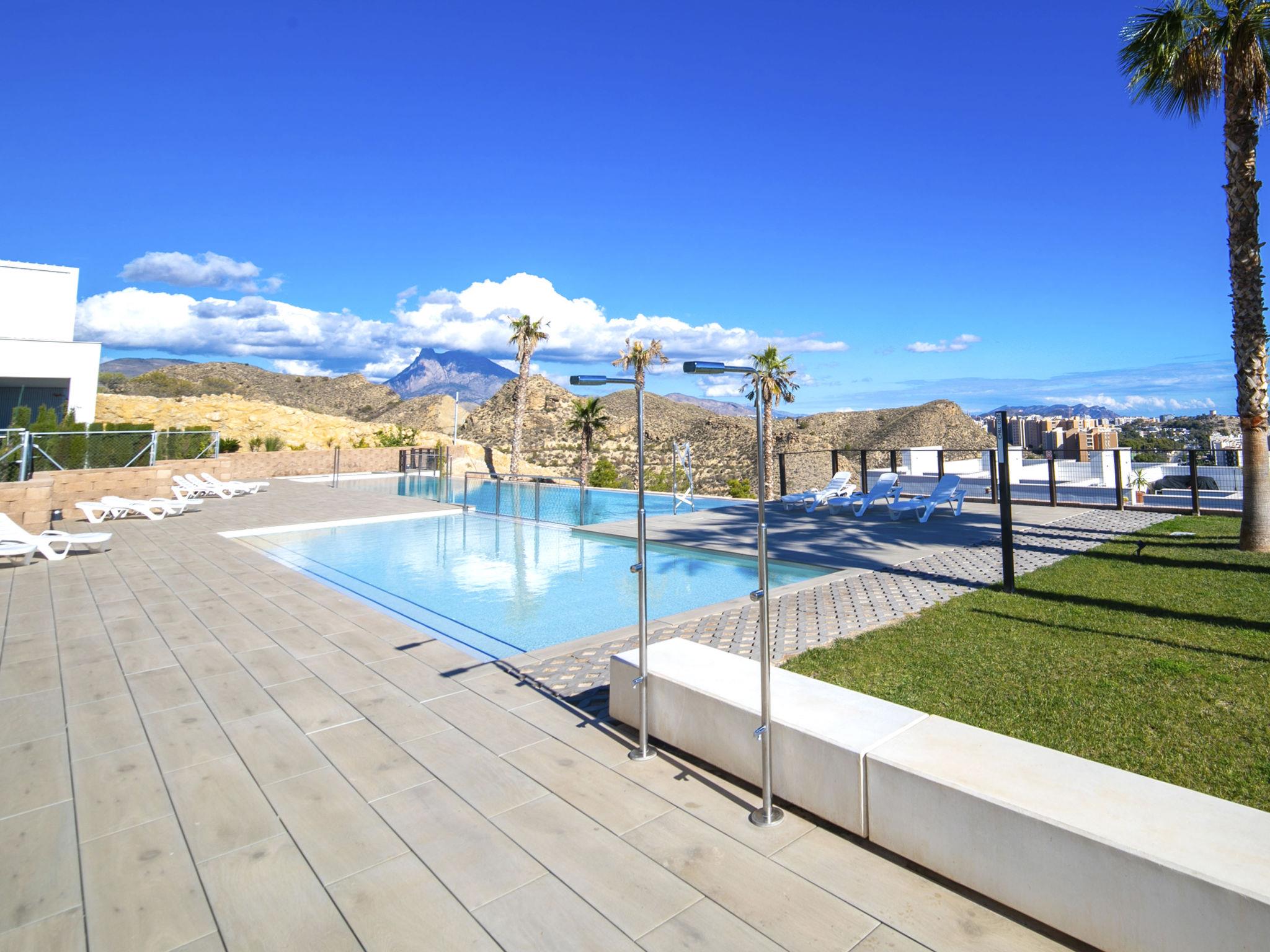 Zona Montiboli: Modern, comfortable holiday development "Bolnou Blue Sea", built in 2024. On the outskirts villajoyosa, in a sunny position on a slope, 400 m from the sea, 400 m from the beach. For shared use: property (fenced), swimming pool (21 x 4 m, depth 122 - 180 cm, seasonal availability: 01.Jan. - 31.Dec.). Outdoor shower. In the house: fitness room, lift. Parking space n 16. Supermarket 2 km, bar 900 m, bus stop "Villajoyosa numero 23" 50 m, railway station 900 m. Nearby attractions: Terra Natura Benidorm, Terra Mitica Benidorm, Aqualandia Benidorm, Mundomar Benidorm, Alicante, Aeropuerto. Please note: car recommended. Object suitable for 4 adults. The owner does not accept any youth groups. Neighbourhood highly sensitive to noise. Quietness and good behaviour expected.
