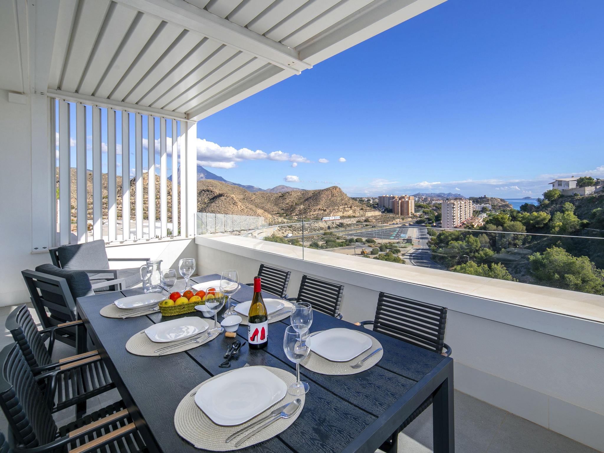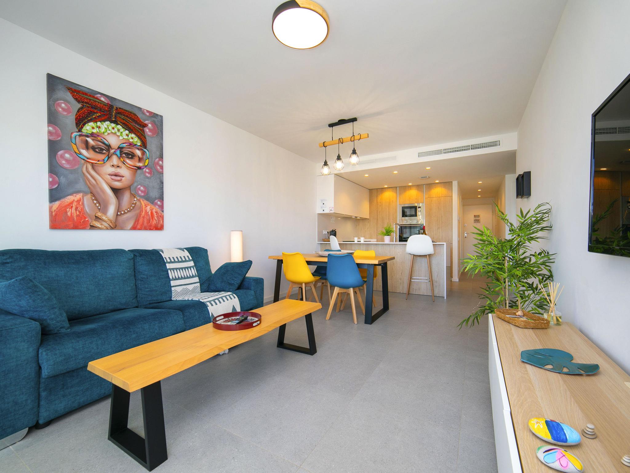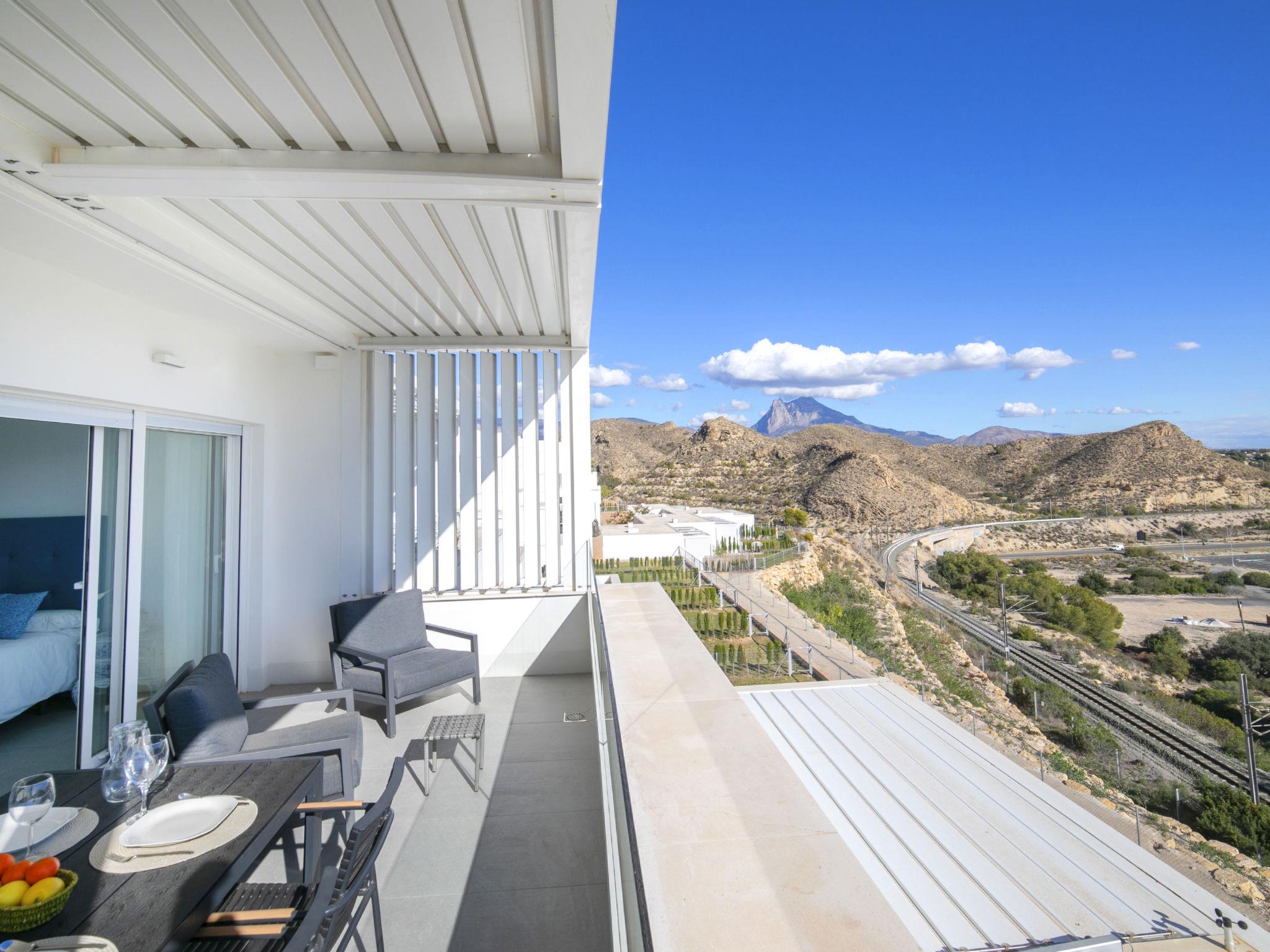 Zona Montiboli: Modern, comfortable holiday development "Bolnou Blue Sea", built in 2024. On the outskirts villajoyosa, in a sunny position on a slope, 400 m from the sea, 400 m from the beach. For shared use: property (fenced), swimming pool (21 x 4 m, depth 122 - 180 cm, seasonal availability: 01.Jan. - 31.Dec.). Outdoor shower. In the house: fitness room, lift. Parking space n 16. Supermarket 2 km, bar 900 m, bus stop "Villajoyosa numero 23" 50 m, railway station 900 m. Nearby attractions: Terra Natura Benidorm, Terra Mitica Benidorm, Aqualandia Benidorm, Mundomar Benidorm, Alicante, Aeropuerto. Please note: car recommended. Object suitable for 4 adults. The owner does not accept any youth groups. Neighbourhood highly sensitive to noise. Quietness and good behaviour expected.