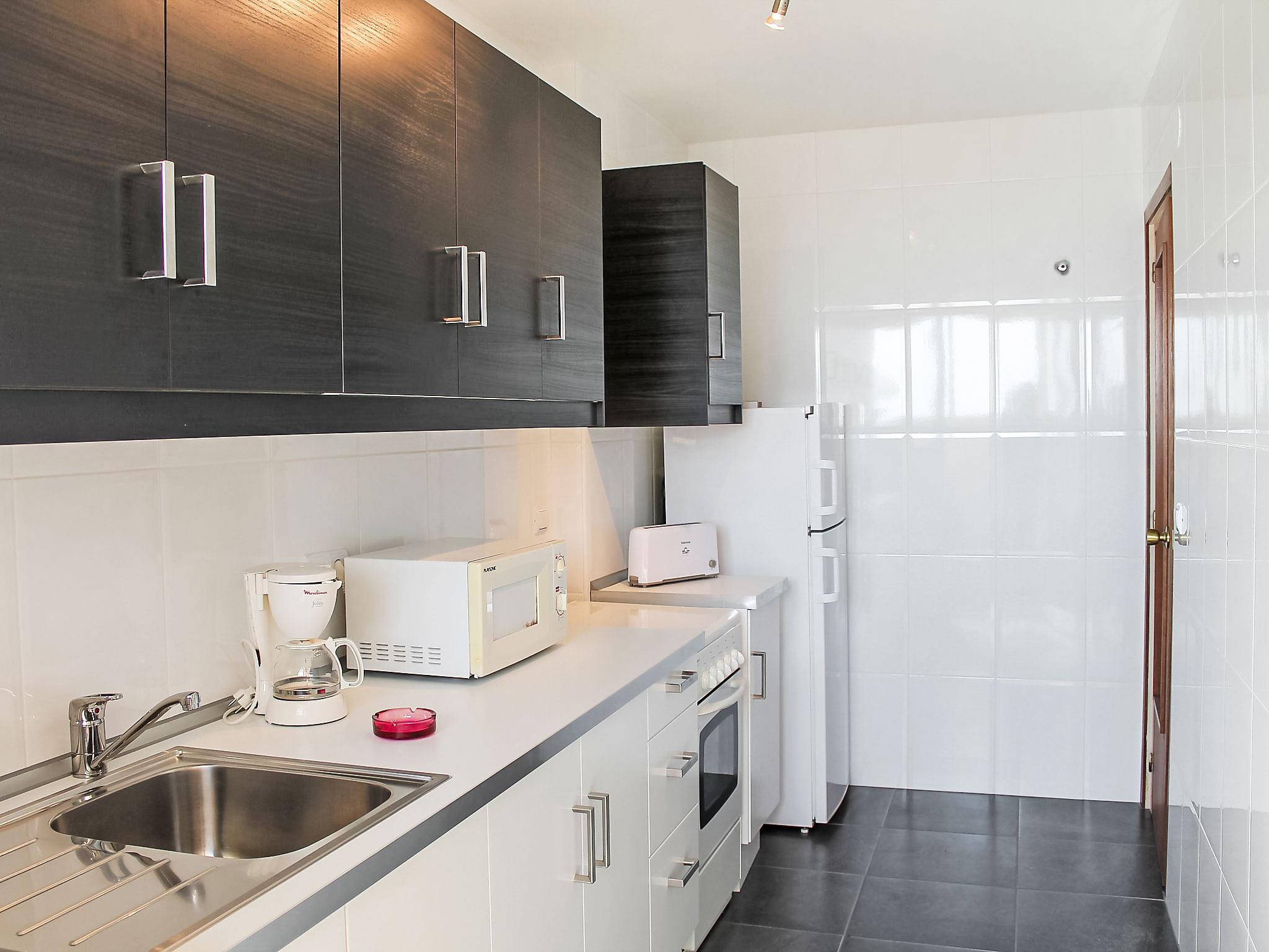 "Las Cinco Torres", 3-room apartment 60 m2 on 7th floor. Object suitable for 4 adults. Spacious and bright, simple and practical furnishings: living/dining room 18 m2 with digital TV and fan. Exit to the terrace. 1 room 8 m2 with 2 beds (90 cm, length 180 cm), fan. 1 room 10 m2 with 1 french bed (150 cm, length 190 cm), fan. Kitchen 9 m2 (4 hot plates, oven, toaster, kettle, microwave, freezer, electric coffee machine). Bath/WC. Electric heating. Small terrace. Terrace furniture. Partial view of the sea and the resort. Facilities: washing machine, iron. Internet (WiFi, free). Parking space n S/N at the house. Maximum 1 small pet/ dog allowed. VT-432125-A // Reg. Nr.: ESFCTU00000305600016919000000000000000000VT-432125-A8