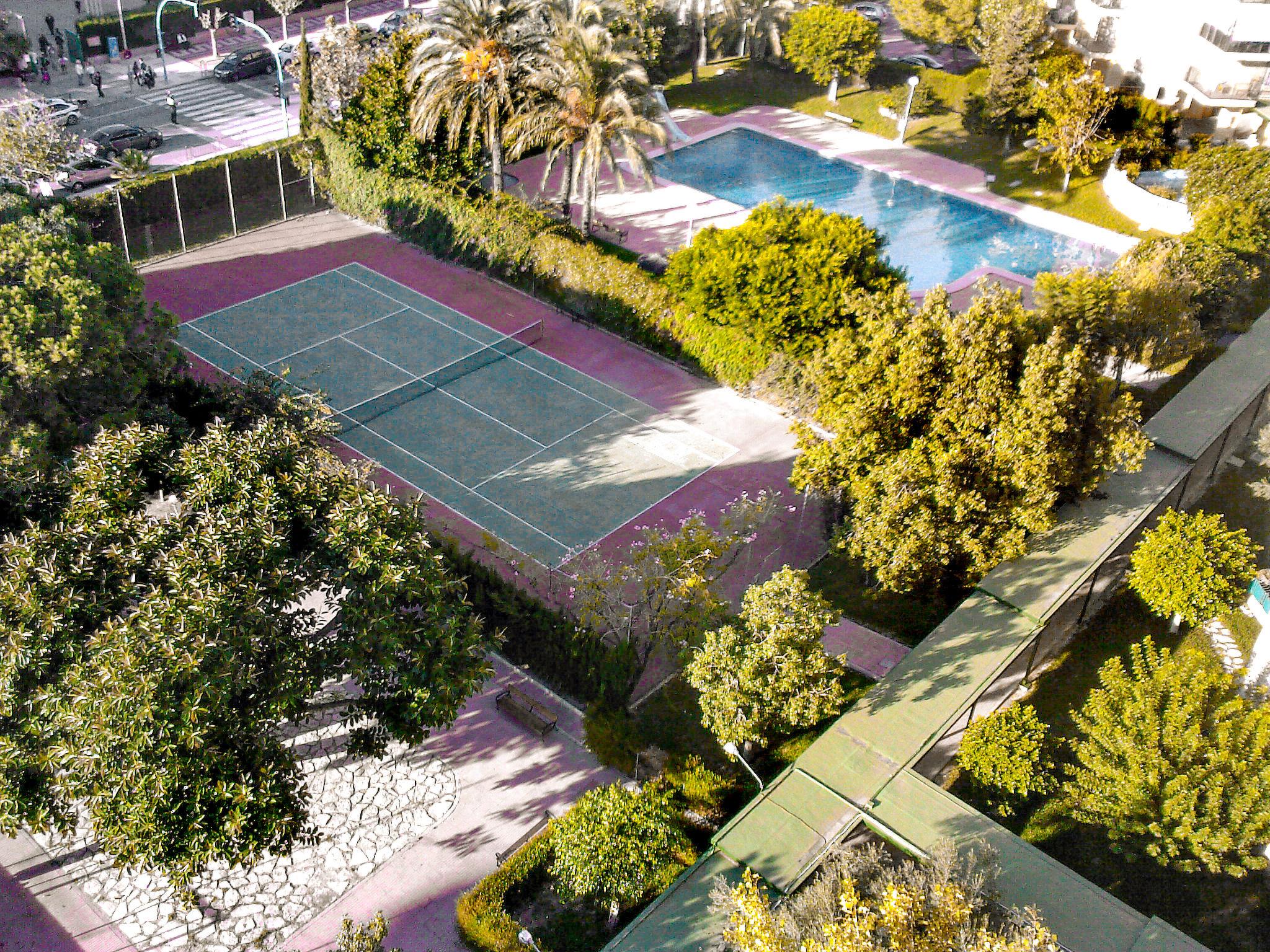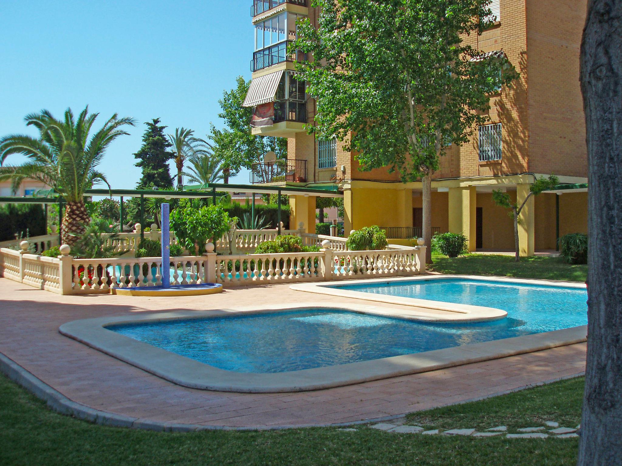 El Campello: Cosy, simple apartment block "Las 5 Torres", 7 storeys. In the resort 200 m from the centre of El Campello, in a central, sunny position, 700 m from the sea, 700 m from the beach, east facing position. For shared use: property (fenced), large garden (fenced) with lawn and trees, swimming pool fenced (15 x 10 m, depth 190 - 120 cm, seasonal availability: 15.Jun. - 15.Sep.). Children's pool, outdoor shower, tennis, children's playground. In the house: lift. Parking on the premises. Supermarket 100 m, shopping centre 200 m, restaurant, bar, café 50 m, 10 minute walk to the centre, bus stop "Av. Furs, 4" 100 m, railway station "Campello" 1 km. Sports harbour 1 km, golf course (18 hole) 6 km. Nearby attractions: Aqualandia Benidorm 30 km, Terra Mitica Benidorm 30 km, Alicante 12 km, Terra Natura Benidorm 30 km, Mundomar Benidorm 30 km, Aeropuerto Alicante 24 km. Please note: baby equipment on request. The owner does not accept any youth groups. Neighbourhood highly sensitive to noise. Quietness and good behaviour expected.