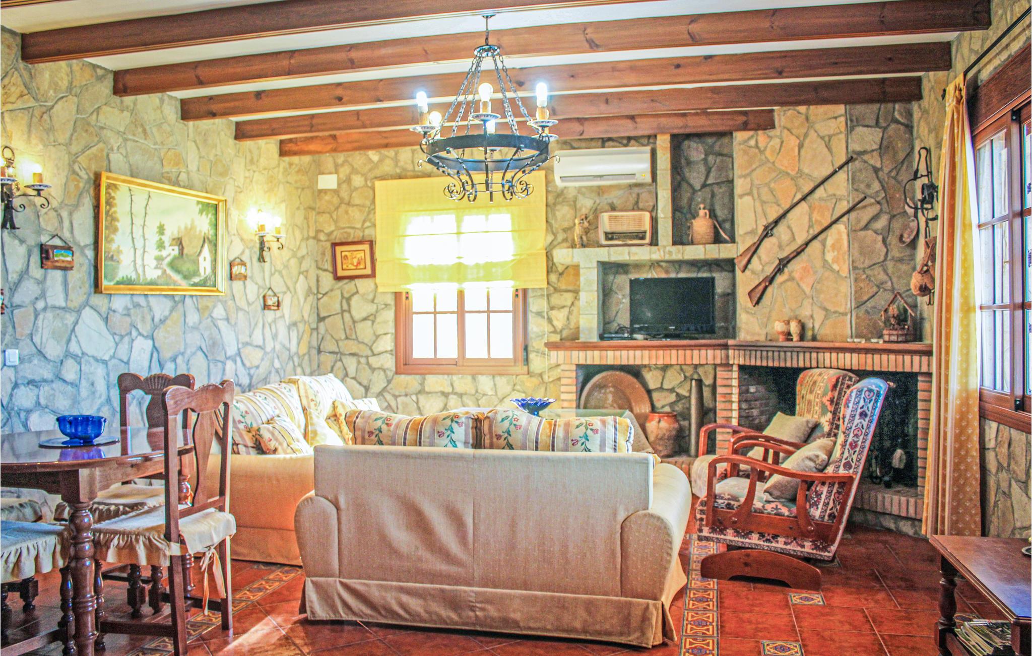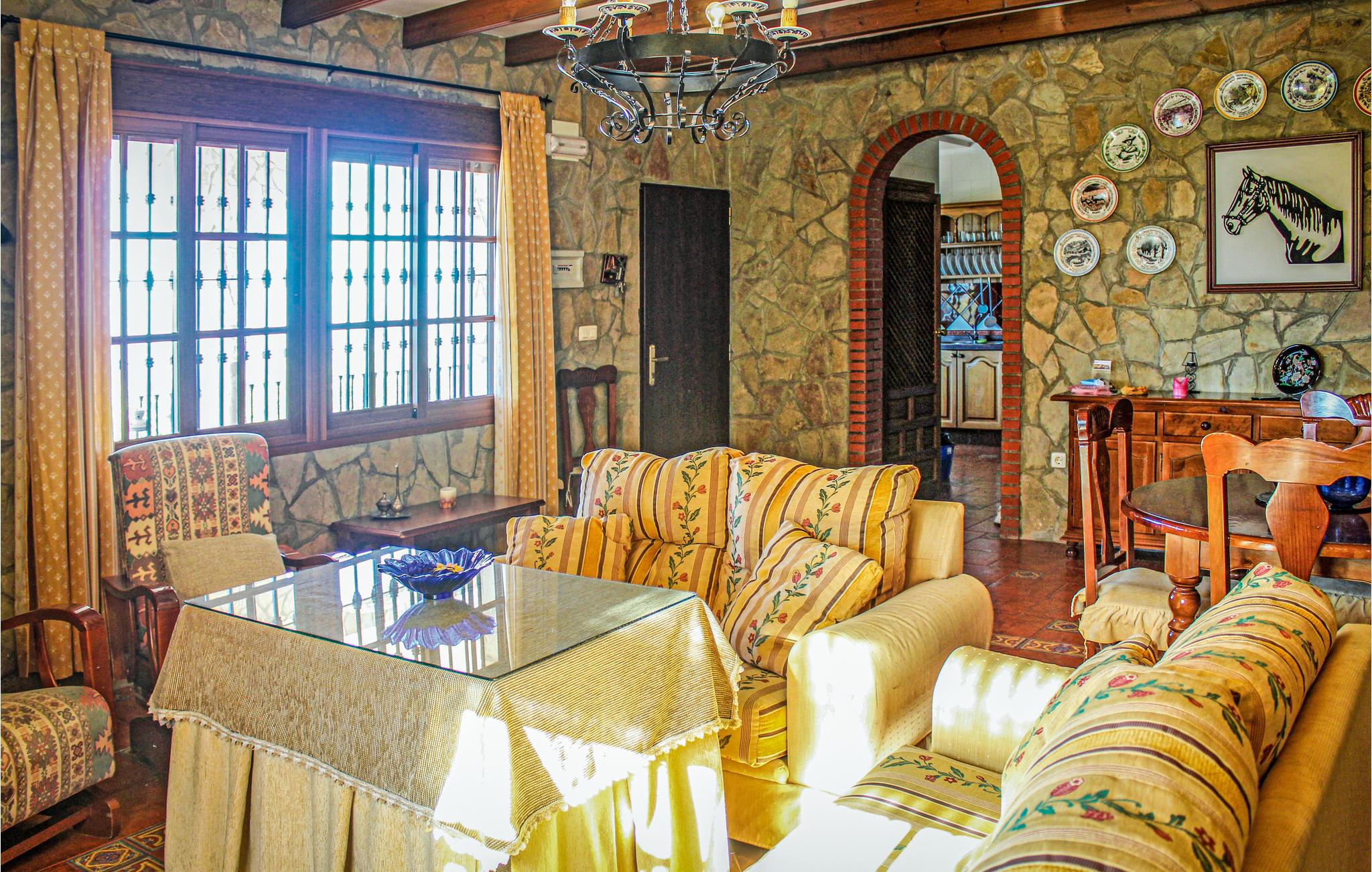 Mod syd ligger reservoiret "Zahara de la Sierra" og længere mod nord er bjerget "Algarin. Når du svømmer rundt i poolen, har du mulighed for at kunne nyde denne unikke bjergverden og også den fred og privatliv, der tilbydes her. Den rummelige stue med pejs har møbler af høj kvalitet og eksponeret stenmur, der er med til at give huset sin charme og hygge.