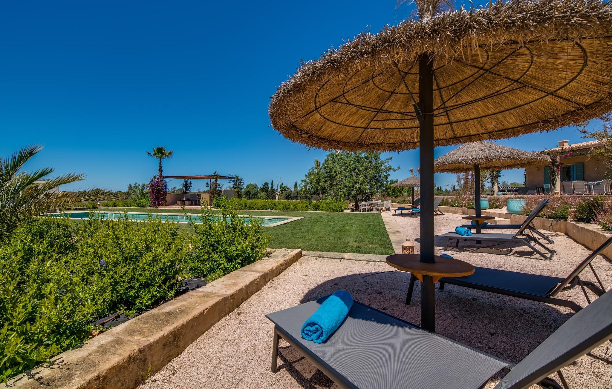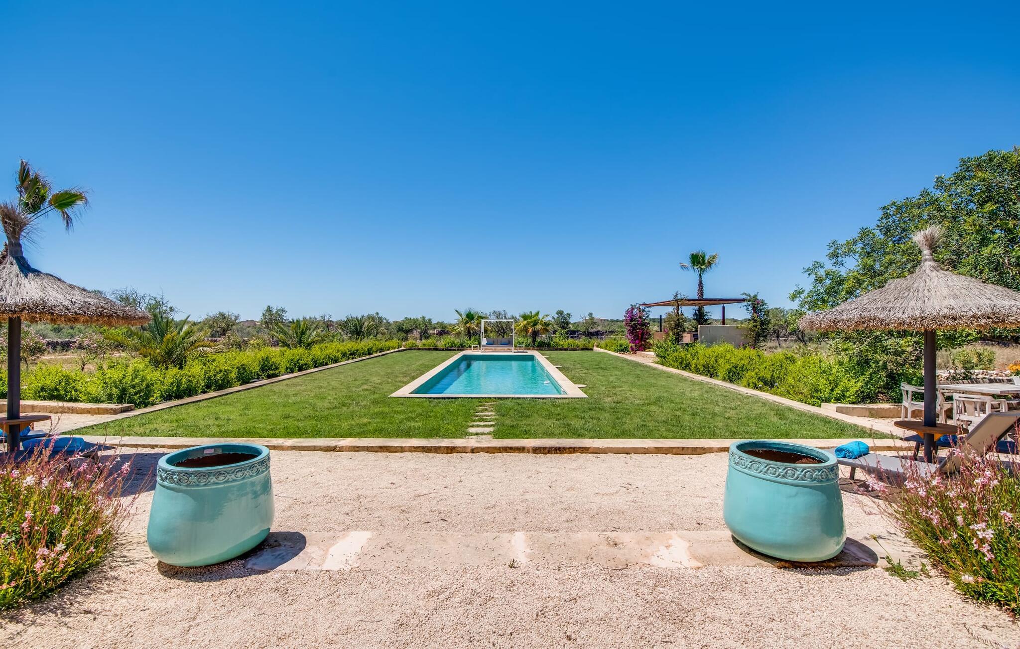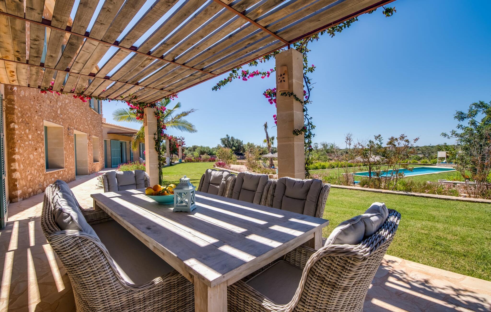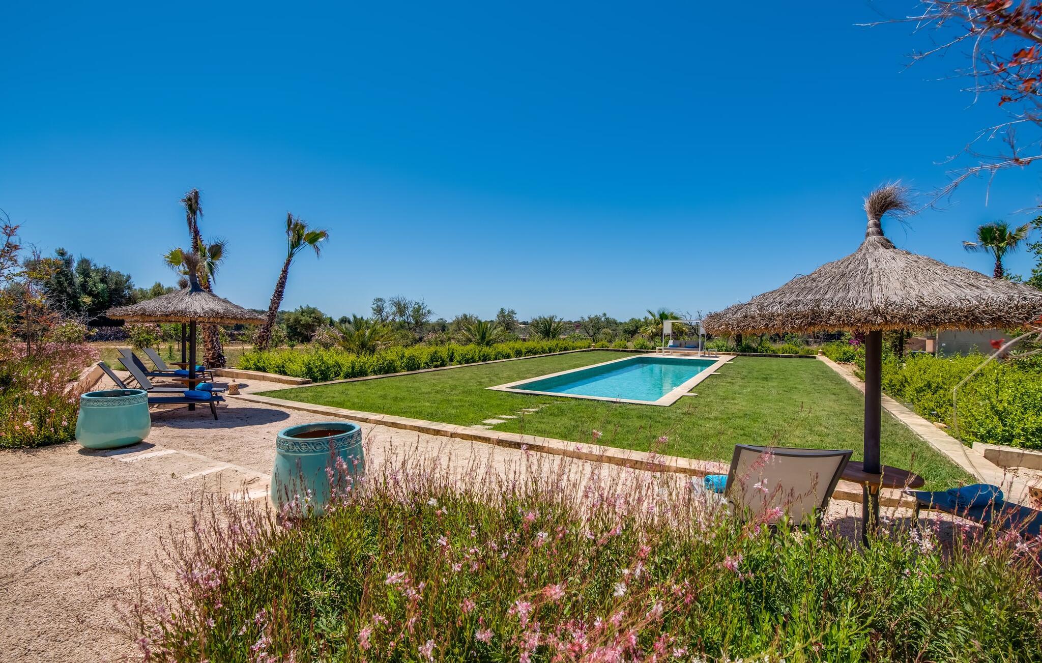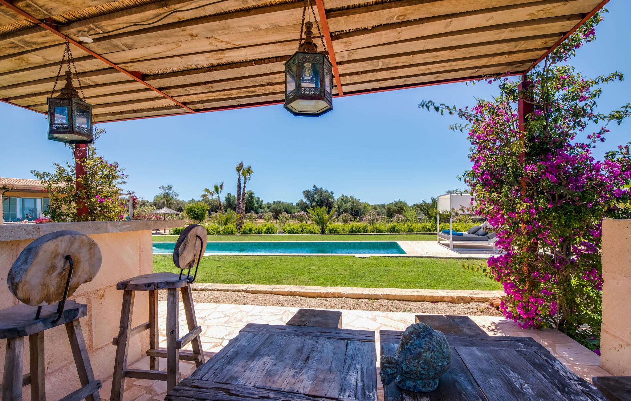 Malerisk og fredfyldt ligger denne finca-perle med det idylliske navn, der med sin middelhavsinspirerede byggestil og store glaspartier strækker sig mod solen i det sydlige Mallorca – her kan I nyde ro og privatliv til fulde. Den langstrakte fitnesspool med liggestole og relax-seng er forbundet med hovedbygningen i to etager og dens to fløje til en form som en pil, der rammer præcist i hjertet hos gæster, der ønsker at forsøde ferien med luksuriøs komfort. Alene den omkringliggende naturstensterrasse med sin luftige træoverdækning, de eksklusive loungemøbler og den vidtstrakte udsigt over landskabet gør "El Idilio" til en fantastisk ejendom, der vækker begejstring. Fincaen tilbyder masser af plads til at nyde tid sammen som familie eller gruppe, som par eller helt for jer selv, hvor I kan kombinere socialt samvær med privatliv og dyb afslapning. Efter ønske og mod betaling kan der desuden arrangeres catering, eventplanlægning, cykeludlejning, taxa, skønhedsbehandlinger og restaurantreservationer.