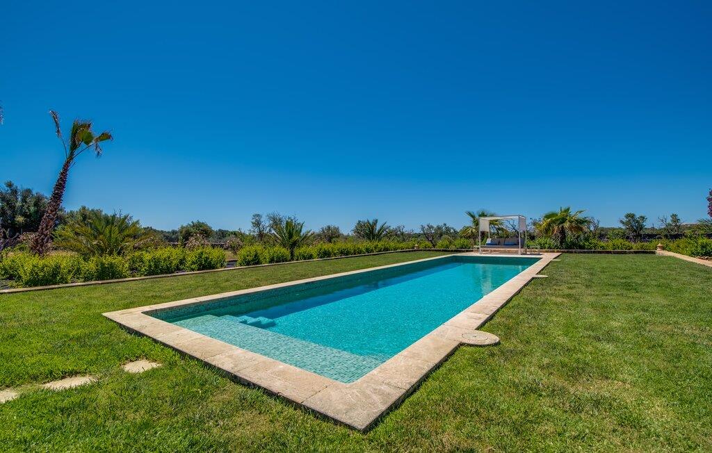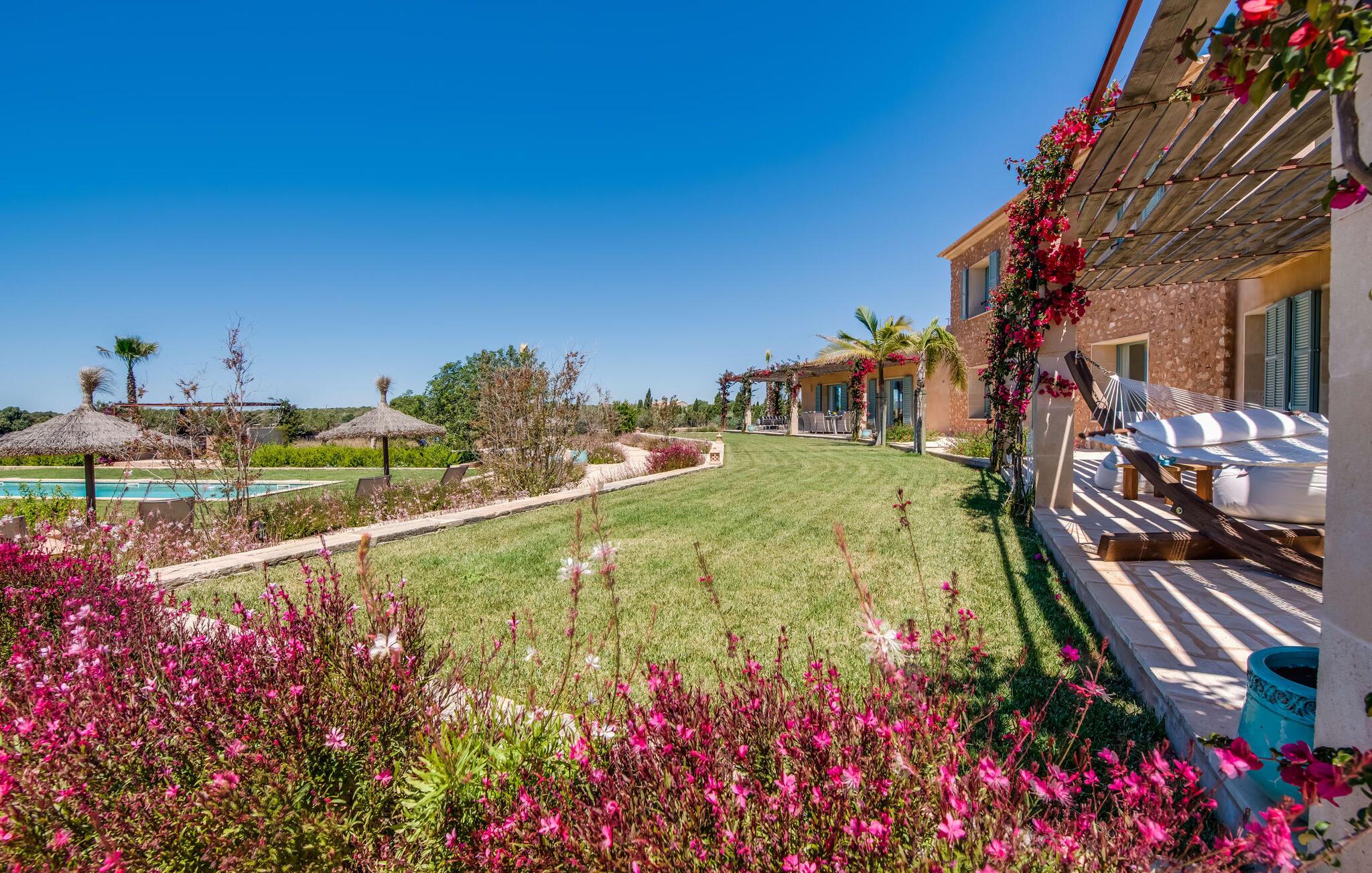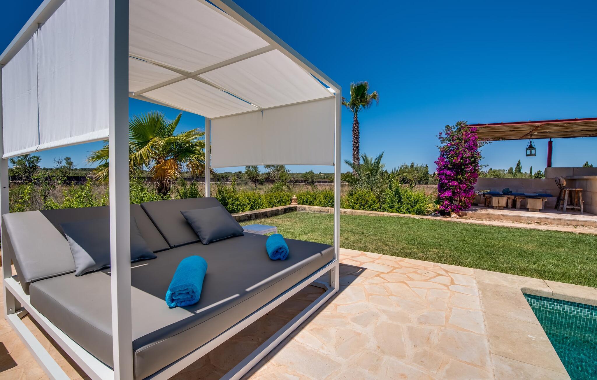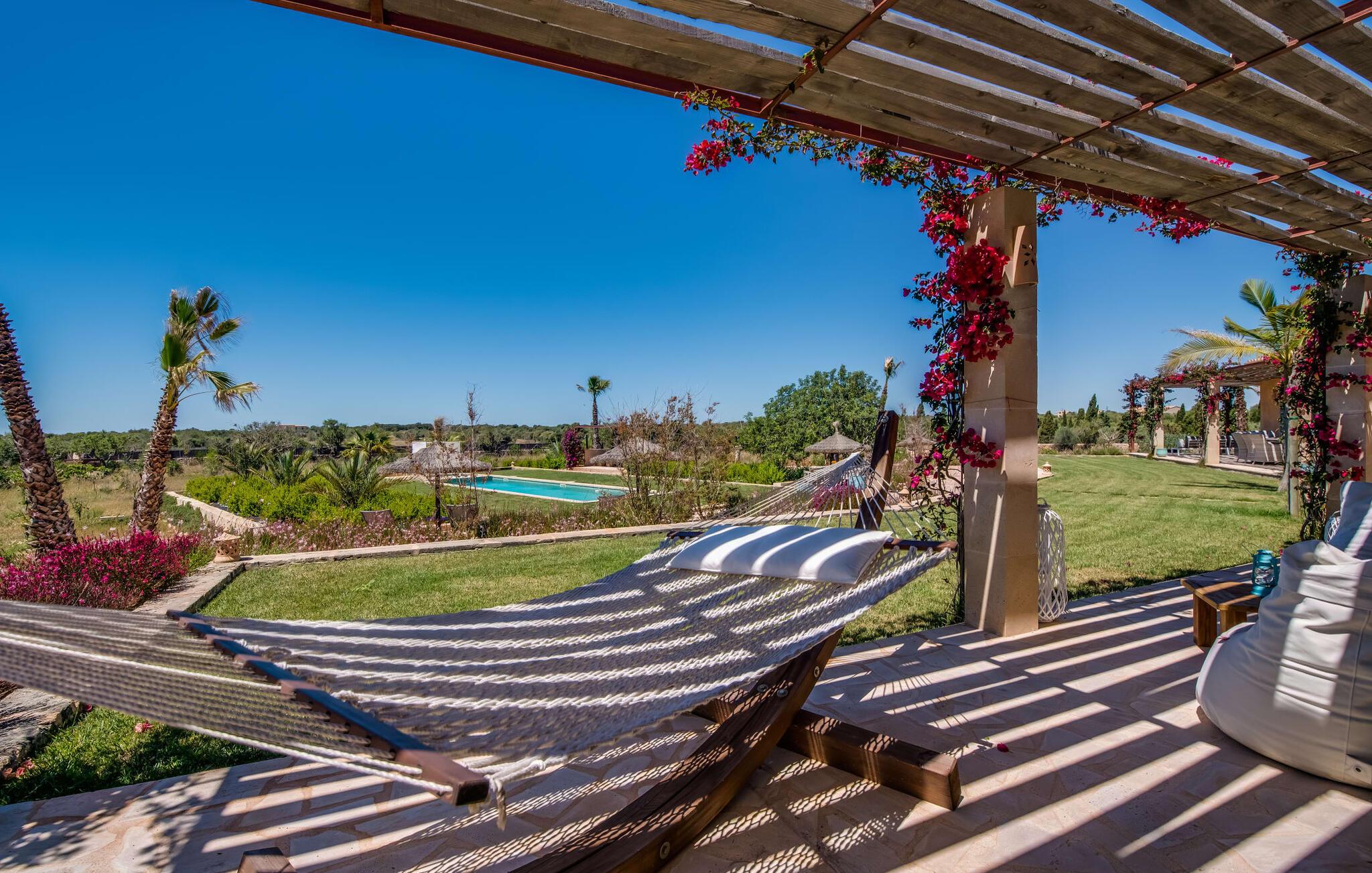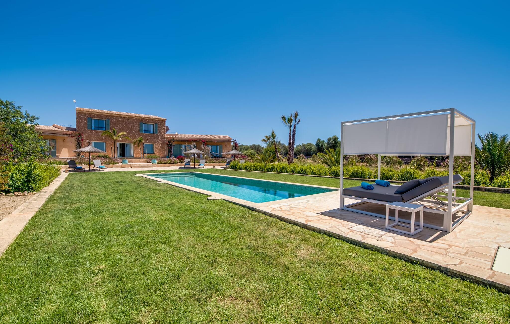 Malerisk og fredfyldt ligger denne finca-perle med det idylliske navn, der med sin middelhavsinspirerede byggestil og store glaspartier strækker sig mod solen i det sydlige Mallorca – her kan I nyde ro og privatliv til fulde. Den langstrakte fitnesspool med liggestole og relax-seng er forbundet med hovedbygningen i to etager og dens to fløje til en form som en pil, der rammer præcist i hjertet hos gæster, der ønsker at forsøde ferien med luksuriøs komfort. Alene den omkringliggende naturstensterrasse med sin luftige træoverdækning, de eksklusive loungemøbler og den vidtstrakte udsigt over landskabet gør "El Idilio" til en fantastisk ejendom, der vækker begejstring. Fincaen tilbyder masser af plads til at nyde tid sammen som familie eller gruppe, som par eller helt for jer selv, hvor I kan kombinere socialt samvær med privatliv og dyb afslapning. Efter ønske og mod betaling kan der desuden arrangeres catering, eventplanlægning, cykeludlejning, taxa, skønhedsbehandlinger og restaurantreservationer.