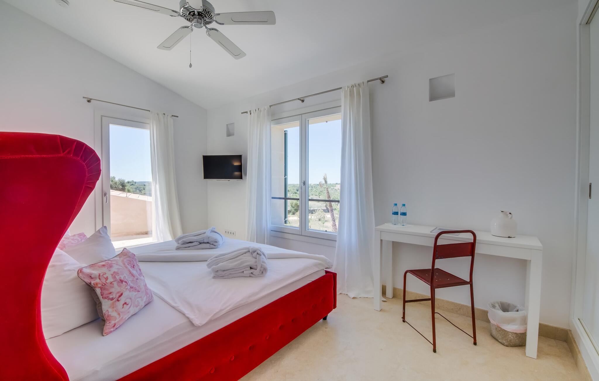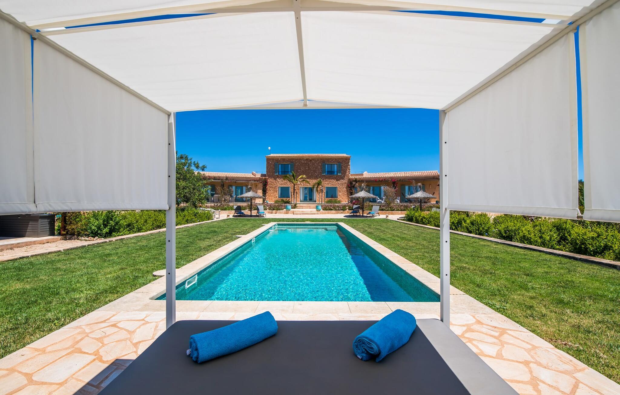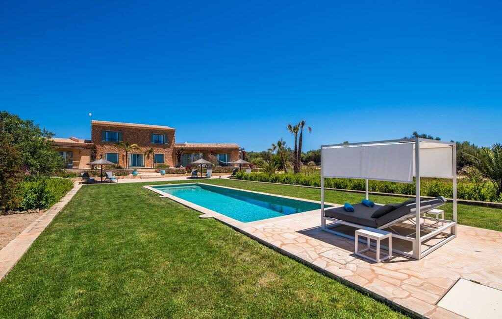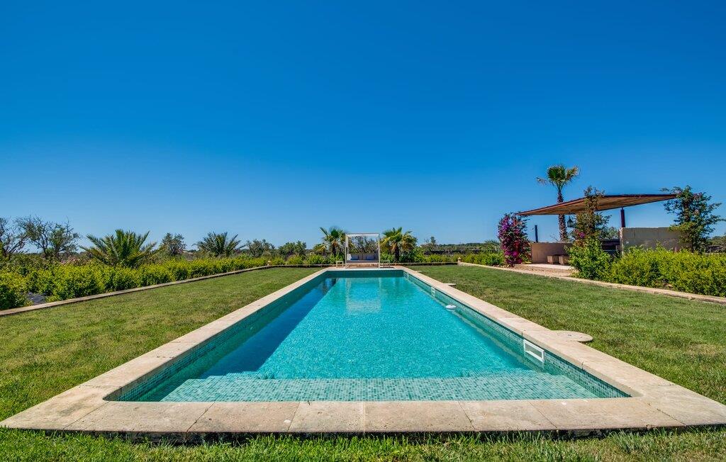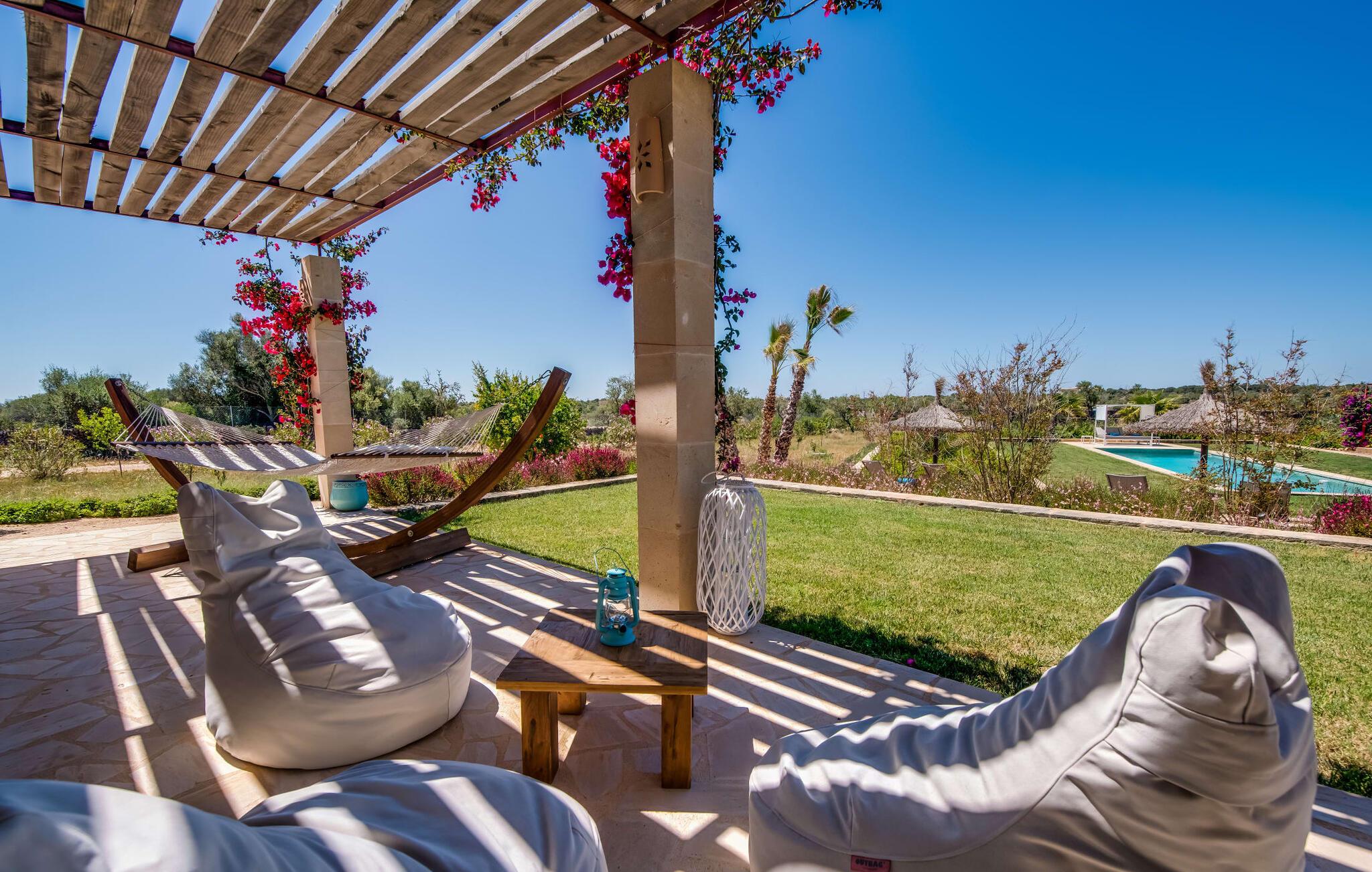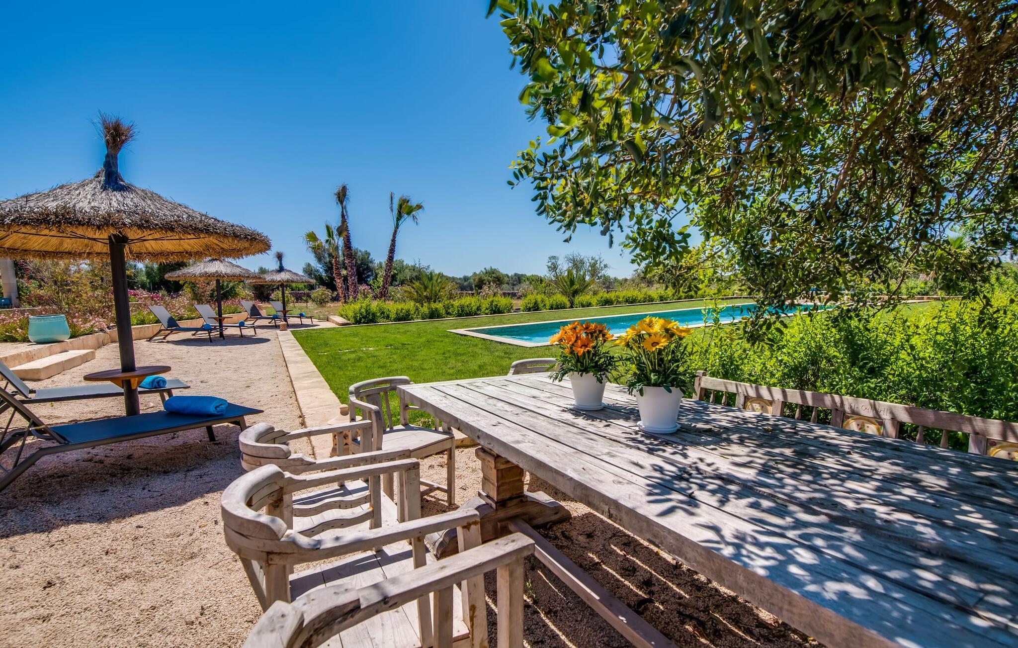 Malerisk og fredfyldt ligger denne finca-perle med det idylliske navn, der med sin middelhavsinspirerede byggestil og store glaspartier strækker sig mod solen i det sydlige Mallorca – her kan I nyde ro og privatliv til fulde. Den langstrakte fitnesspool med liggestole og relax-seng er forbundet med hovedbygningen i to etager og dens to fløje til en form som en pil, der rammer præcist i hjertet hos gæster, der ønsker at forsøde ferien med luksuriøs komfort. Alene den omkringliggende naturstensterrasse med sin luftige træoverdækning, de eksklusive loungemøbler og den vidtstrakte udsigt over landskabet gør "El Idilio" til en fantastisk ejendom, der vækker begejstring. Fincaen tilbyder masser af plads til at nyde tid sammen som familie eller gruppe, som par eller helt for jer selv, hvor I kan kombinere socialt samvær med privatliv og dyb afslapning. Efter ønske og mod betaling kan der desuden arrangeres catering, eventplanlægning, cykeludlejning, taxa, skønhedsbehandlinger og restaurantreservationer.