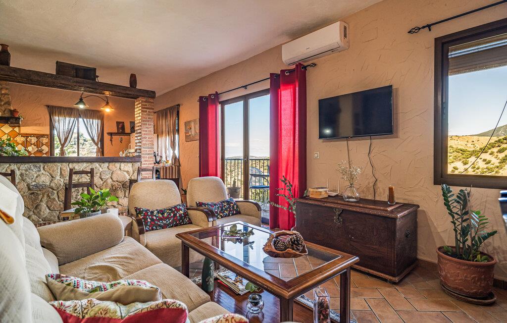 Dette charmerende og autentiske feriehus i El Jaral byder på en hyggelig og indbydende atmosfære med kærligt indrettede detaljer. Den åbne opholdsstue og den traditionelle indretning skaber en hjemlig stemning, som lægger op til ren afslapning. Fra balkonen eller terrassen kan I lade blikket vandre ud over landskabet, slappe af i udendørs dagsengen eller tage en opkvikkende dukkert i den private pool. Om aftenen er terrassen perfekt til hyggelige måltider under åben himmel.