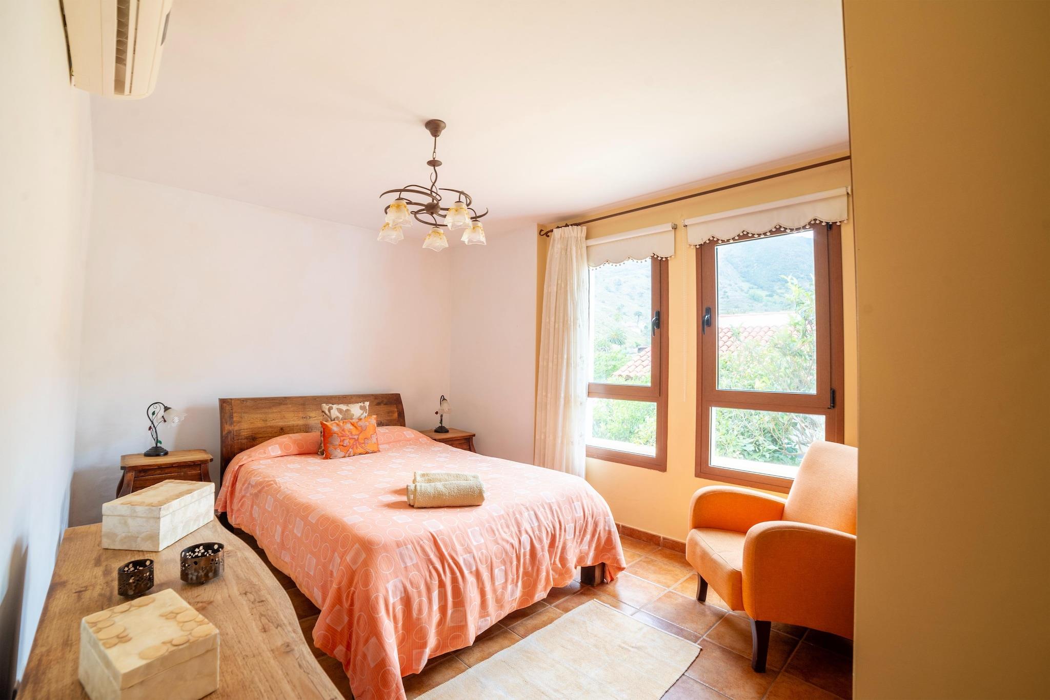 Beliggende midt i de frodige, grønne bjerge på det nordvestlige Tenerife tilbyder denne ferievilla et tilflugtssted med uovertruffen ro. Fra det øjeblik du træder ud på terrassen, betager det majestætiske landskab dig og inviterer dig til at slappe af og nyde den skønhed, der omgiver dig. Når du kigger ud over landskabet, smelter synet af havet i det fjerne problemfrit sammen med den private pool og skaber et fascinerende panorama, der helt sikkert vil fortrylle dig under hele dit ophold. Trods sin afsondrede beliggenhed er villaen bekvemt placeret inden for rækkevidde af lokale faciliteter, herunder butikker, restauranter og attraktioner. Den charmerende by Garachico med sin historiske arkitektur og naturlige pools ligger kun en kort køretur væk, mens den pulserende by Puerto de la Cruz tilbyder et væld af kulturelle oplevelser og underholdningsmuligheder. Indenfor kan villaen prale af tre rummelige dobbeltværelser og to badeværelser, hvilket giver rigelig plads til, at du og dine kære kan slappe af i komfort. For dem, der elsker at underholde, giver den private pool og grillområdet de perfekte rammer for afslappende sammenkomster og mindeværdige øjeblikke med familie og venner. Uanset om du slapper af ved poolen eller nyder et måltid under stjernerne, er hvert øjeblik her bestemt til at blive værdsat. Et ekstra gebyr på EURO30 pr. nat pr. gæst skal betales af gæsten til i henhold til den delte faktura/lejeaftale.