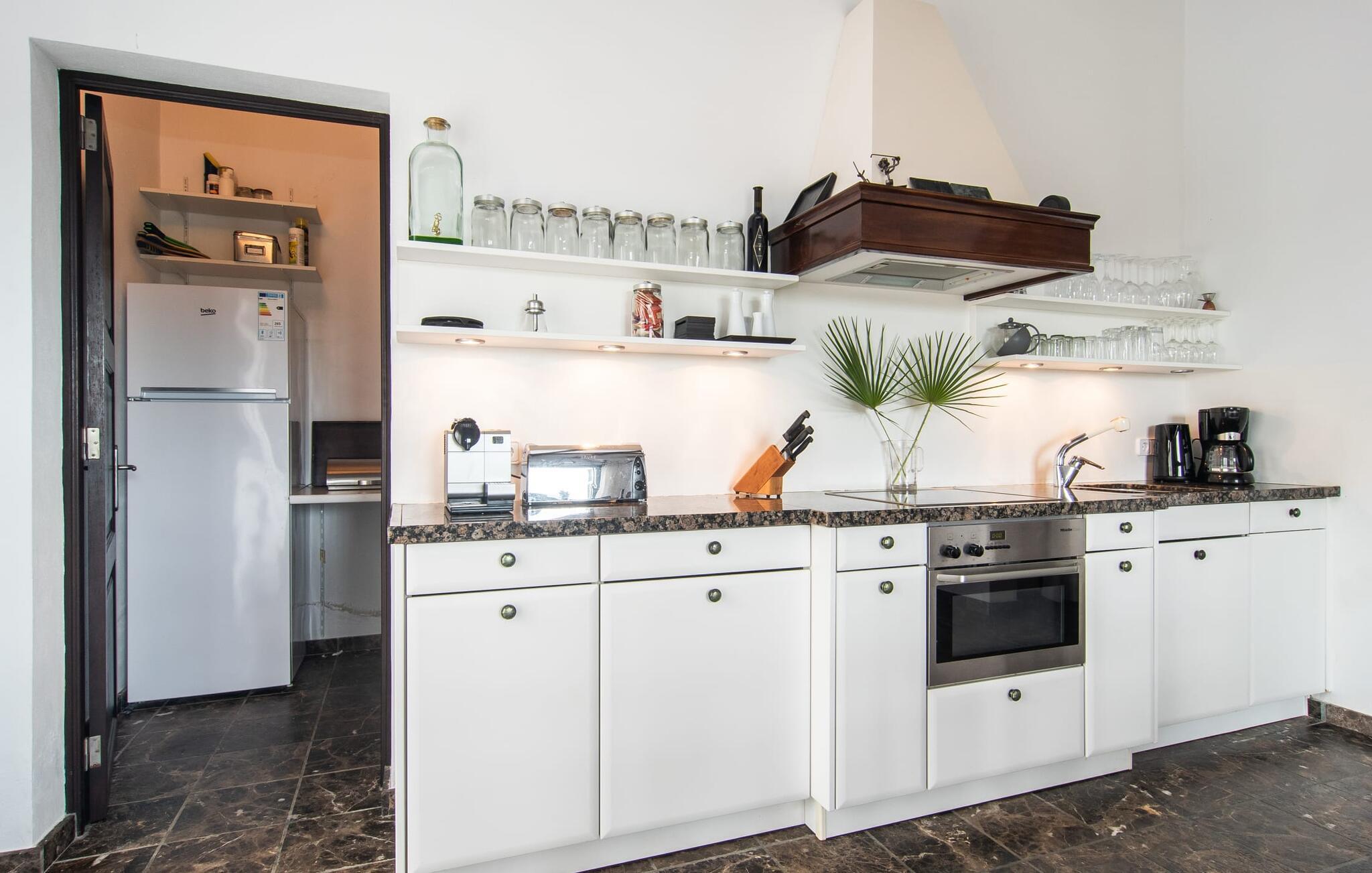 Denne komfortable finca i stueetagen er ideel for børnefamilier eller flere par, der rejser sammen og byder jer velkommen midt i den magiske middelhavsnatur. Lad jer inspirere af den vellykkede blanding af rustik elegance og moderne bekvemmeligheder, som det lyse og smagfulde interiør forkæler jer med. Glæd jer til at lave mad sammen i det rummelige, åbne køkken og hyggelige filmaftener i den indbydende sofa.