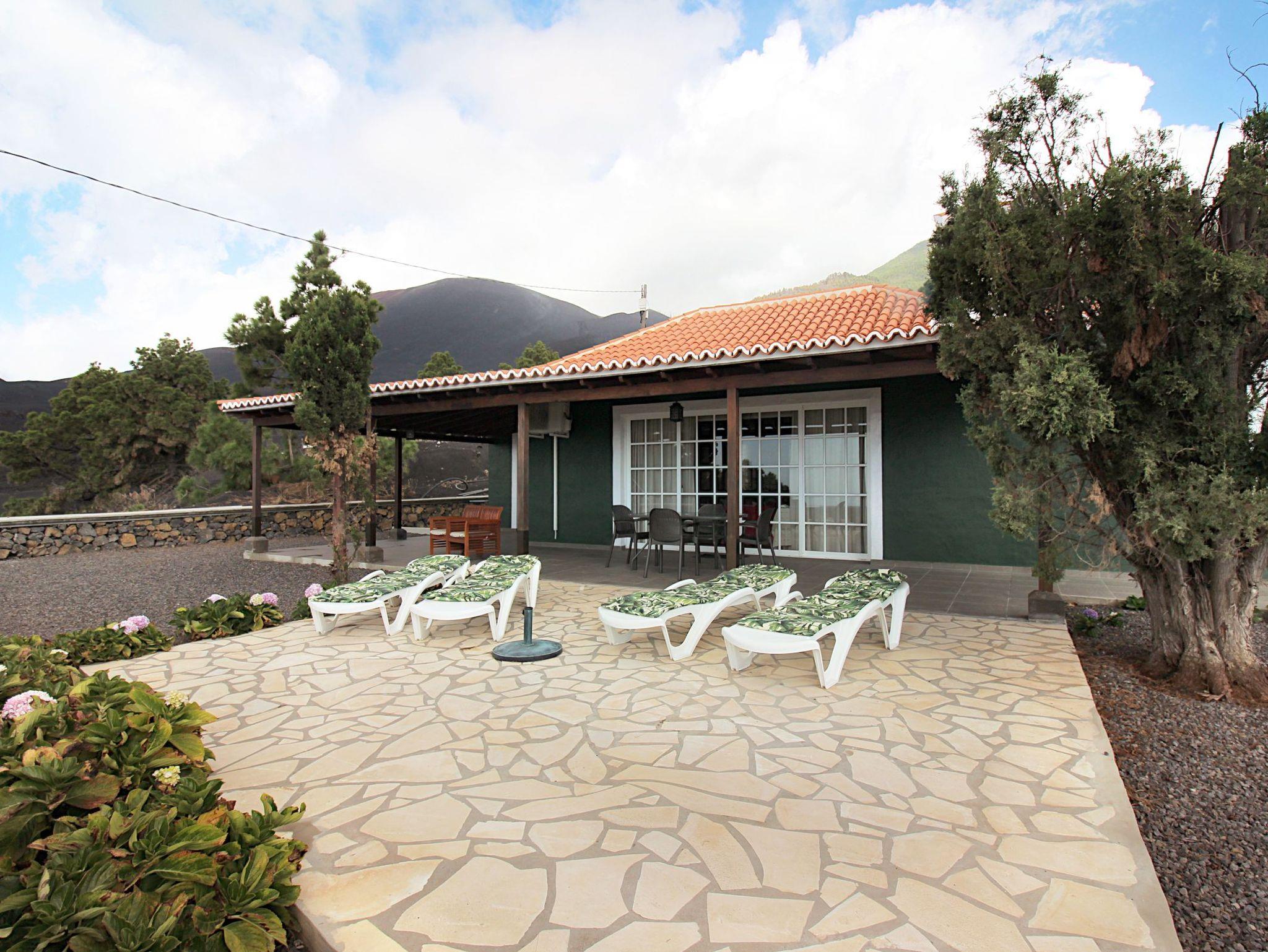 Der erkaltete Lavastrom des im Jahr 2021 ausgebrochenen Vulkans Tajogaite führt direkt an der Terrasse des Hauses vorbei. Zum Haus kommen Sie über die neu gebaute Straße, die durch den Vulkanfluss führt.