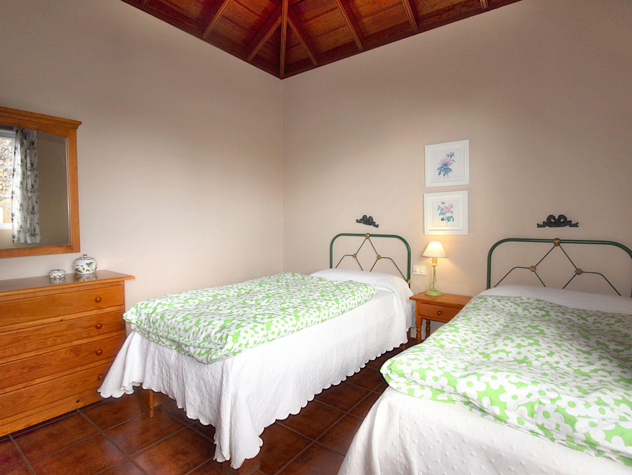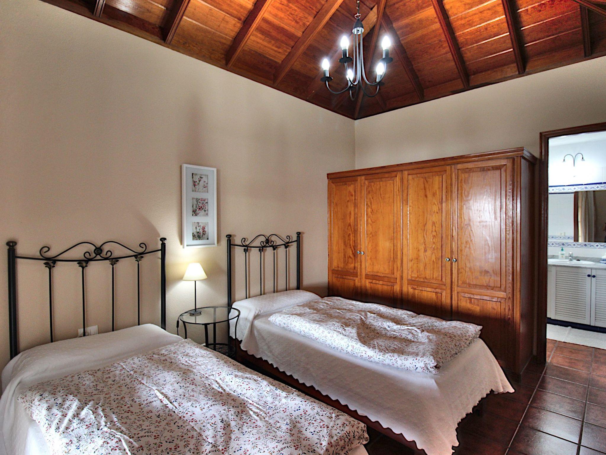 Cerca Verde verfügt über 3 Schlafzimmer. Alle Räume haben ihr eigenes Farbkonzept und daher hat jeder Raum sein eigenes Flair. Möbel im rustikalen kanarischen Stil und passende Wanddekoration runden das Gesamtbild ab. Das Schlafzimmer mit Doppelbett verfügt über ein en-suite Bad mit Badewanne/Dusche. Die anderen beiden Schlafzimmer verfügen jeweils über 2 Einzelbetten.