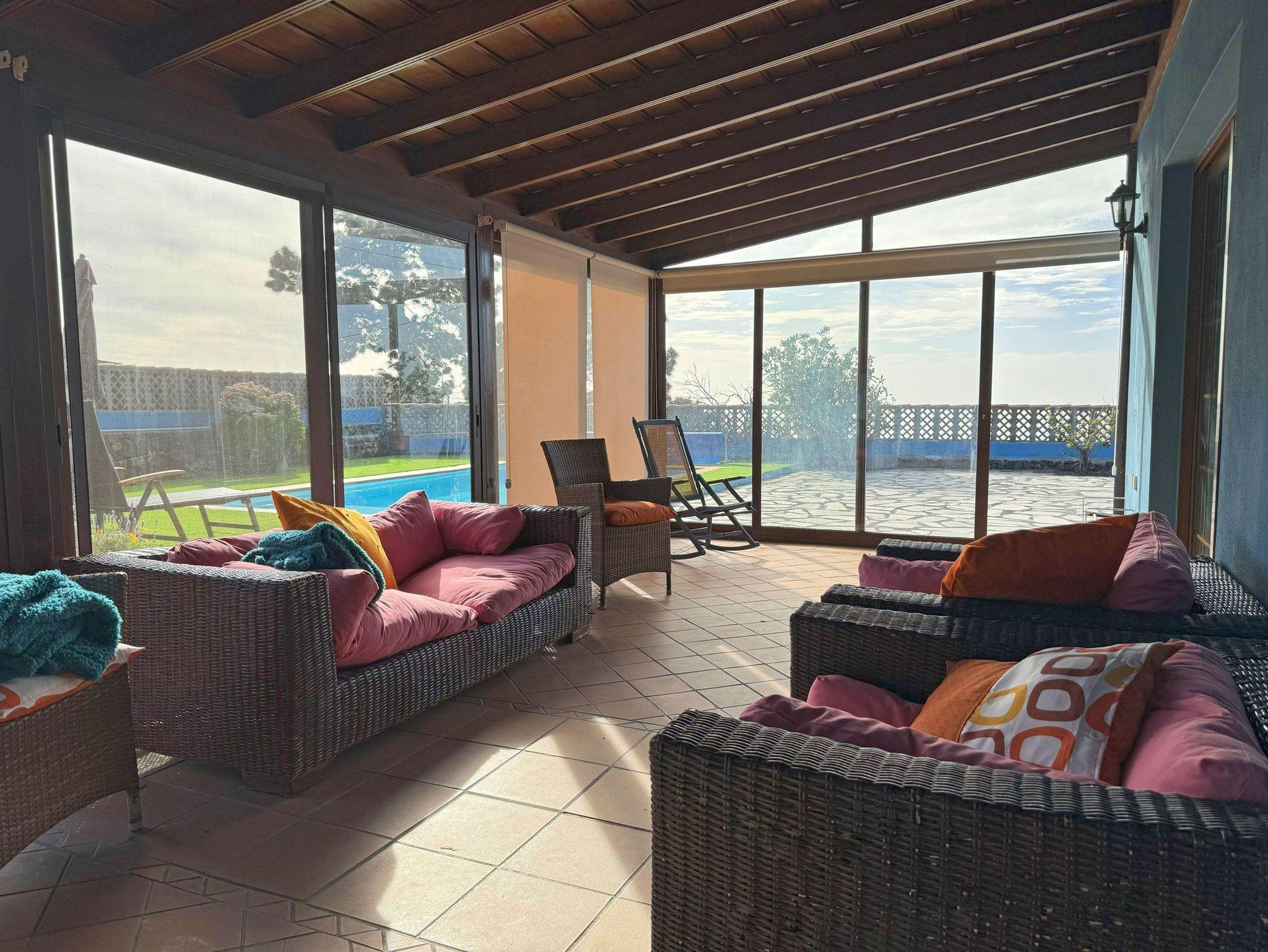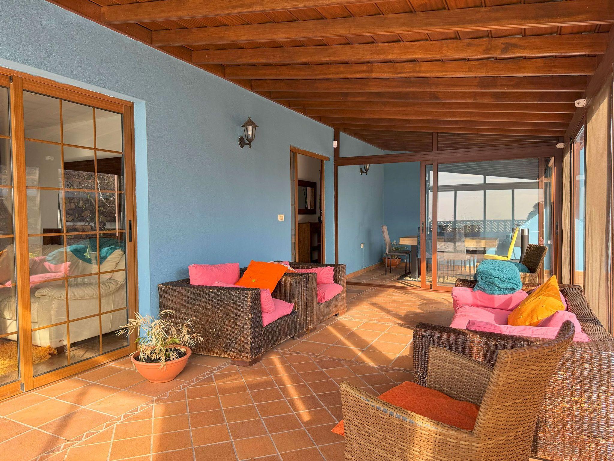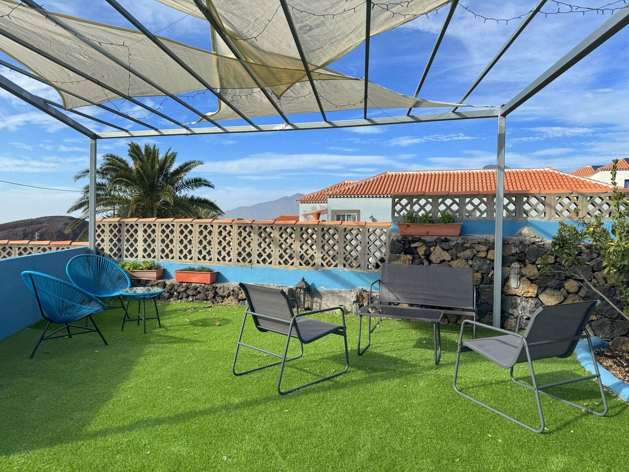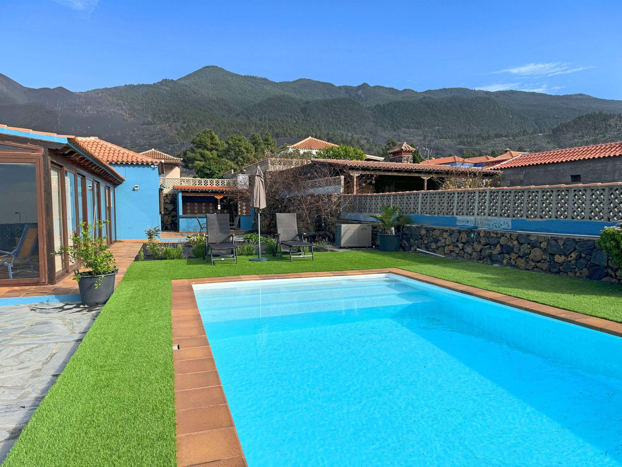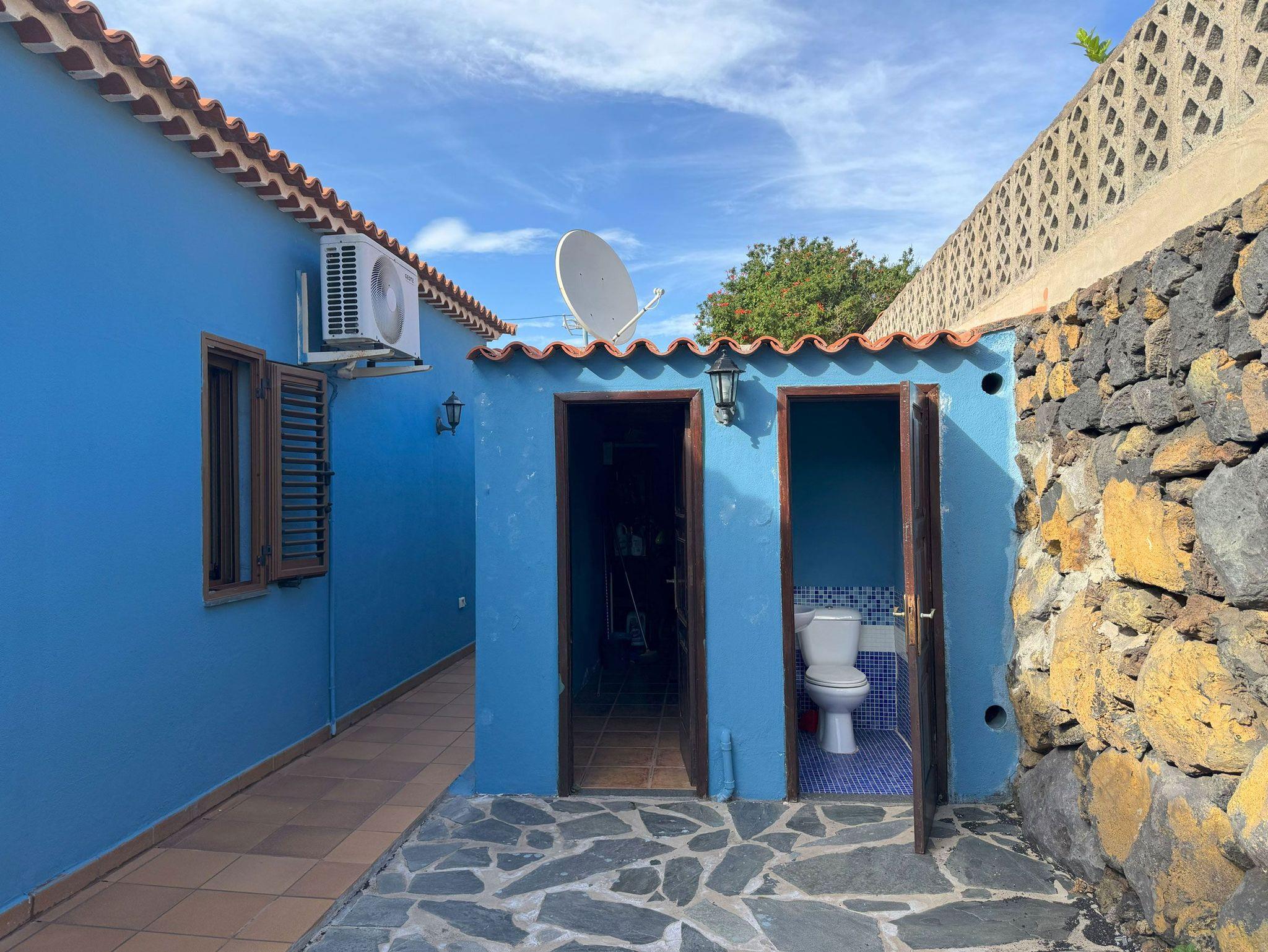 Ein echtes Highlight ist der Außenbereich der Casa Mirador Azul. Das 1000 Quadratmeter große Grundstück ist von einer Mauer umgeben und bietet viel Privatsphäre. Ein beheizbarer Pool mit Abdeckung lädt zum erfrischenden Schwimmen ein, eine Liegefläche mit 2 Sonnenliegen und Sonnenschirm zum Entspannen.