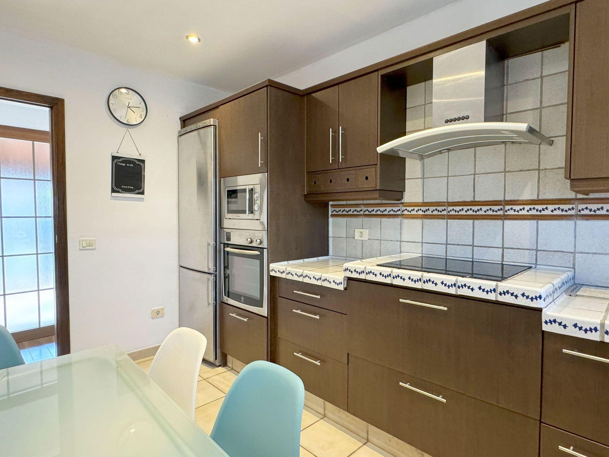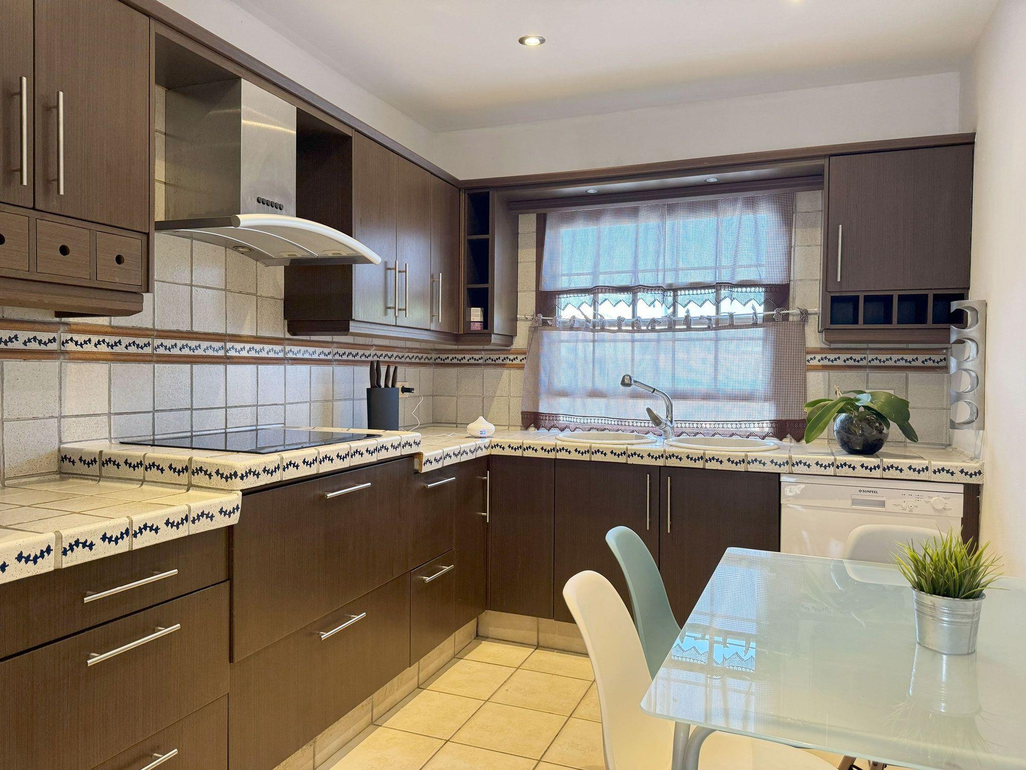 • Küche mit 3 Kochplatten, Backofen, Dunstabzug, Mikrowelle, Spülmaschine, Kühl-/Gefrierkombination