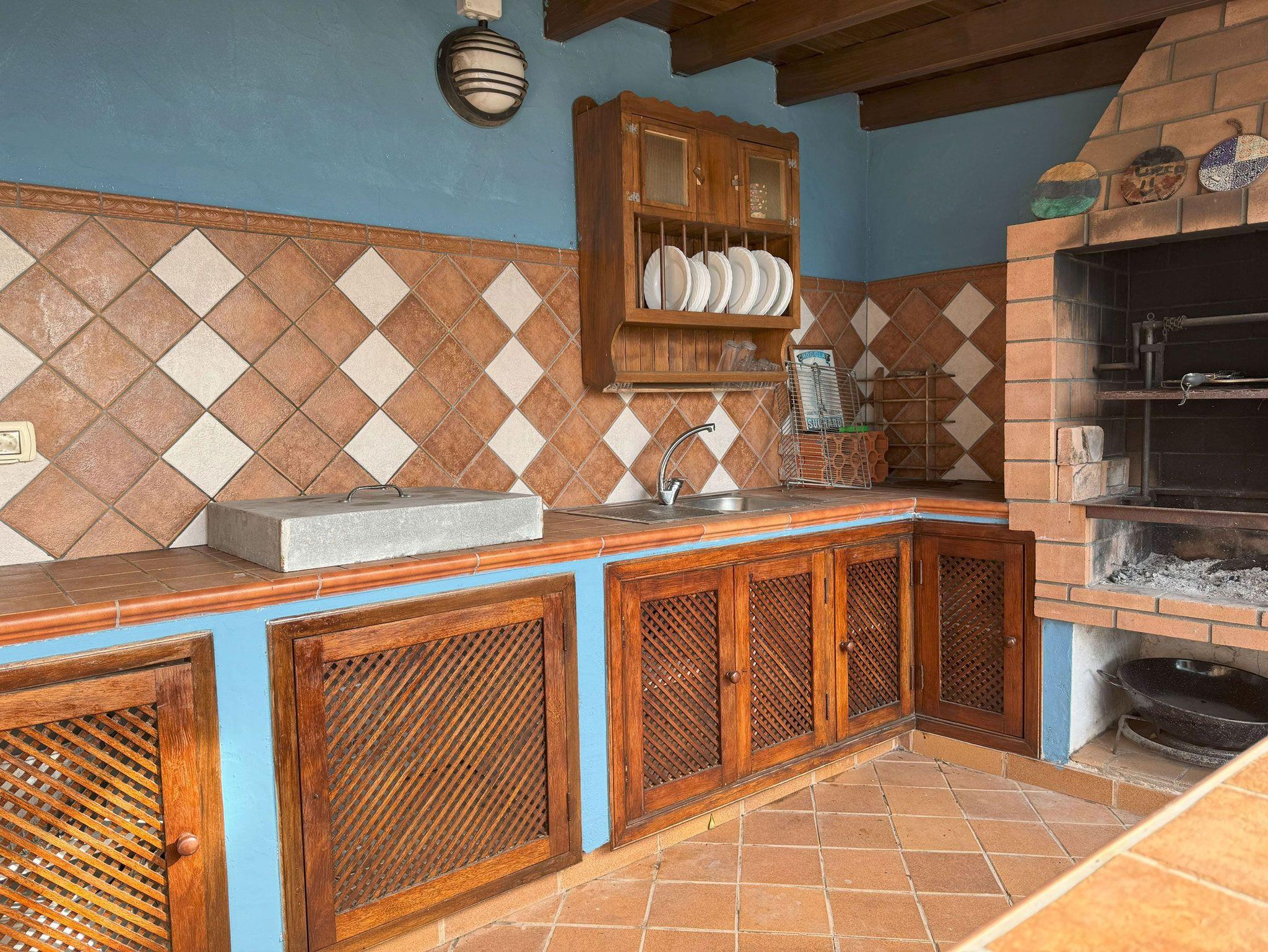 Ein separates Grillhaus mit Außenküche und Toilette in einem kleinen Nebengebäude ermöglicht den Gästen das Kochen und Essen im Freien.