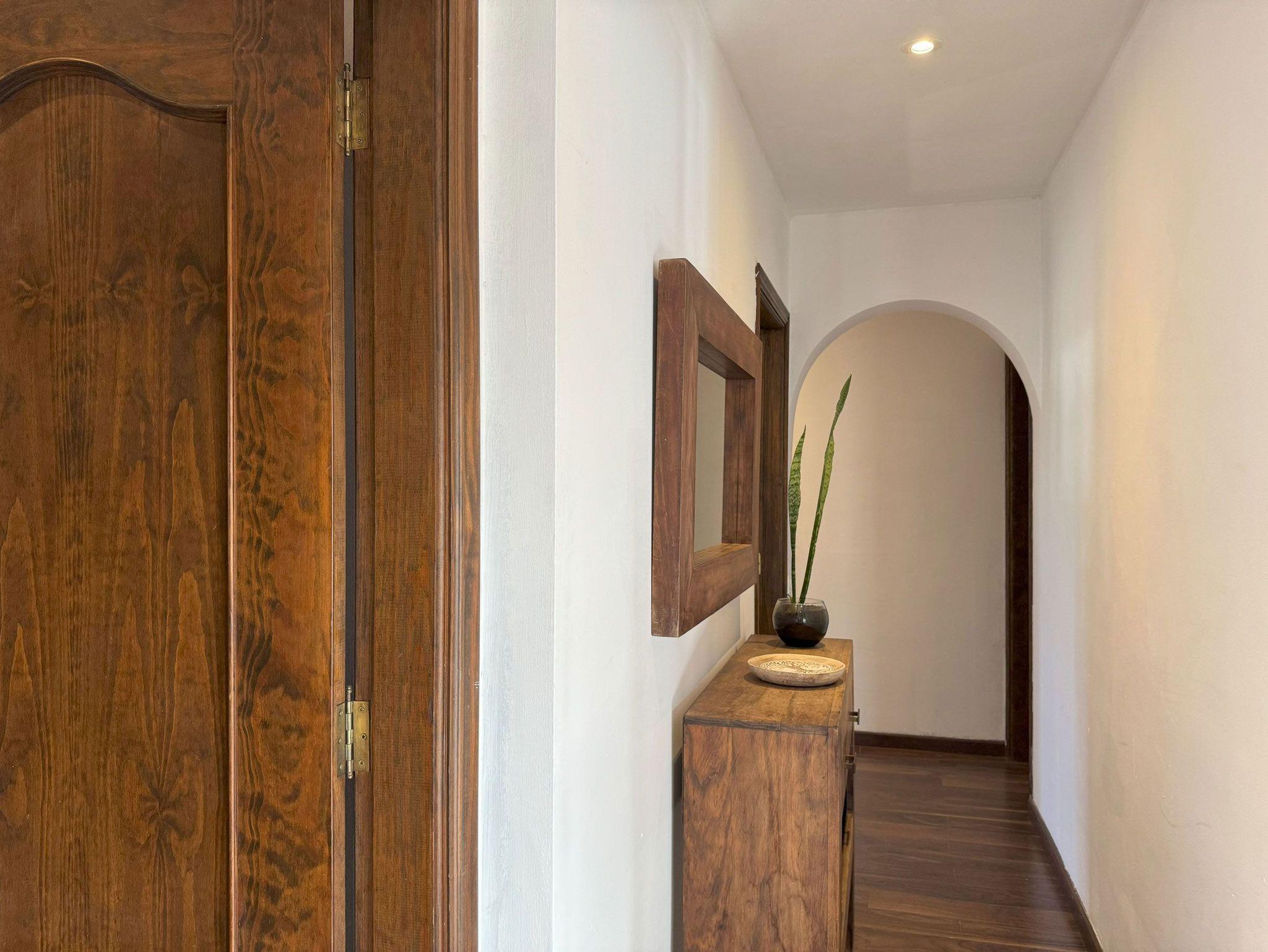 • 1 Schlafzimmer mit Doppelbett (1,50 x 2,00m), begehbarem Schrank, Klimaanlage (Heizen und Kühlen) und Ensuite Bad