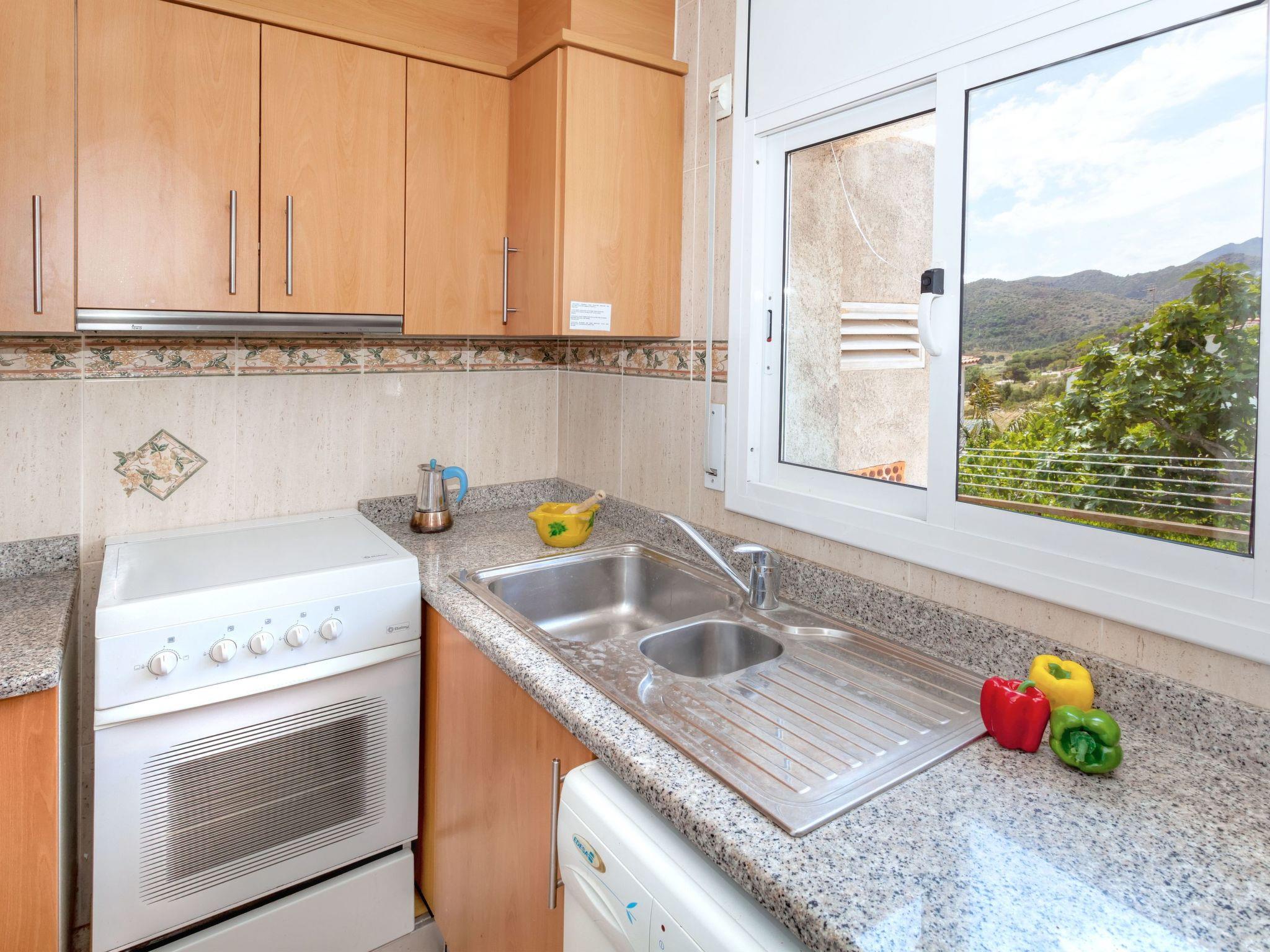4-room apartment 75 m2 on 1st floor. Practical furnishings: living/dining room 22 m2 with digital TV and international TV channels. Exit to the terrace. 1 room with 1 french bed (135 cm). 1 room with 1 x 2 bunk beds (80 cm). 1 room with 2 beds (90 cm). Kitchen (4 hot plates, oven, microwave, freezer). Shower/bidet/WC. No heating option. Terrace 12 m2. Terrace furniture. Distant view of the sea and the mountains. Facilities: washing machine. Internet (WiFi, free). HUTG007563