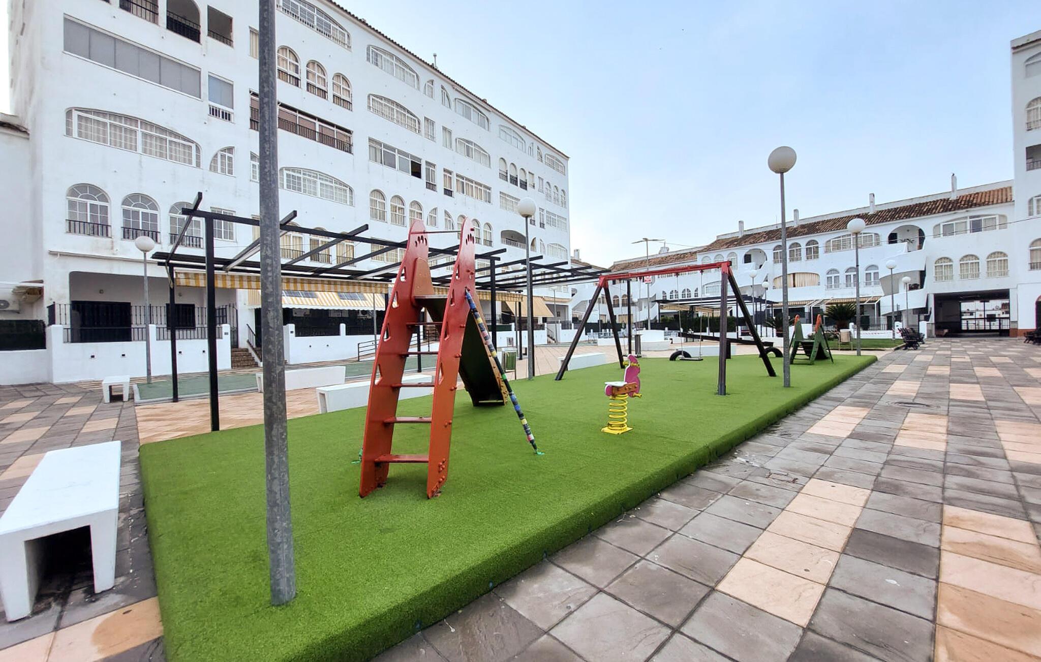 Nyd solrige dage i denne ferielejlighed med fælles pool og altan. Denne lejlighed tilbyder alt, hvad I behøver for en afslappende ferie på den andalusiske kyst. Her finder I sol, hav og den spanske livsstil i en afslappet atmosfære – ideelt for par eller familier. Opholdsstuen er praktisk designet og møbleret med sofa, tv og spisebord – perfekt til hyggelige timer efter en dag på stranden. Tilbered jeres yndlingsretter i det rummelige køkken og server jeres måltider på altanen med udsigt over det omkringliggende område. Slap af ved den store fælles pool, omgivet af en velholdt græsplæne. Tag jer tid til en svømmetur eller slap blot af ved poolen. Børnene vil elske legepladsen i gården, mens de voksne nyder roen i komplekset. Oplev El Portil og dens omgivelser. Slentr langs den kilometerlange sandstrand, tag en tur til naturreservatet Laguna de El Portil, eller besøg den charmerende by Huelva. Golfentusiaster vil også finde masser at nyde i regionen.