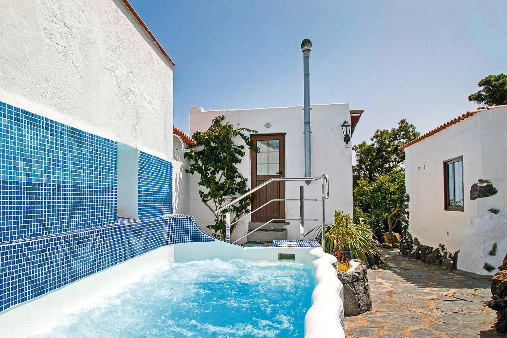 Tro mod den oprindelige restaurerede finca på en 1.200 kvadratmeter stor grund i en rolig beliggenhed med udsigt over havet og et spabad til privat brug. Hovedhuset og de fire udhuse er blevet nænsomt restaureret og er samlet omkring en indre gårdhave. Stuen, køkkenet og et af soveværelserne er i hovedbygningen, de tre soveværelser er hver i et anneks. Aktiviteter i nærheden: El Tanque er perfekt til en rolig og afslappende ferie på den vestlige del af Tenerife. Den perfekte beliggenhed byder på adskillige udflugter, for eksempel til Teide, Garachico, Puerto de la Cruz eller La Orotava. Landsbyen er idyllisk beliggende og omgivet af tætte fyrreskove. Et absolut højdepunkt i El Tanque er Camello Centre (kamelfarm) for familier eller, for sportsentusiaster, 18-hullers golfbanen i det omkringliggende område Din bolig: I den del af fincaen, der vender mod bjerget, er der en bygning med et soveværelse (1 dobbeltseng) med eget badeværelse (bruser, toilet, hårtørrer) og en lille spiseplads. Der er også 2 yderligere værelser (2x 1 dobbeltseng) uden eget badeværelse. Gæster på disse værelser bruger det rummelige badeværelse på terrassen. Alle værelser er udstyret med sengelinned og hånd- eller badehåndklæder. Yderligere funktioner: solcelleanlæg, termisk solenergi til varmt vand, pejs. Internetforbindelse (Wi-Fi i områderne: køkken med spiseplads, stue med soveværelse, gårdhave + panoramaterrasse, indre gårdhave, i de 2 andre værelser). Udvendigt udstyr: 4 terrasser (nogle med overdækket terrasse, alle med siddepladser i haven eller liggestole), en hyggelig hobbit bænk med tag under et stort fyrretræ, udendørs grill (på den ene terrasse er der et stort bord og stole til rådighed for gæster til måltider eller hyggeligt samvær). Whirlpool (opvarmes)_til privat brug. Der er plads til flere køretøjer at parkere i indkørslen til huset (3 parkeringspladser). Der er et varmt karbad i den bagerste gårdhave. Desuden blev der indrettet plads til et loungehjørne bag en tilgroet naturstensmur, beskyttet mod vinden. Liggestolene er på en forhøjet terrasse med naturstensvæg og med en vid og uforstyrret udsigt over haven og havet. Den frodige have ved huset inviterer dig til at beundre blomster- og planterpragten næsten hele året rundt. Vores gæster er også velkomne til at spise citronerne og andre frugter fra vores egne træer. Mod betaling: rundstykkeservice Mobilitet: Ikke egnet til personer med begrænset mobilitet