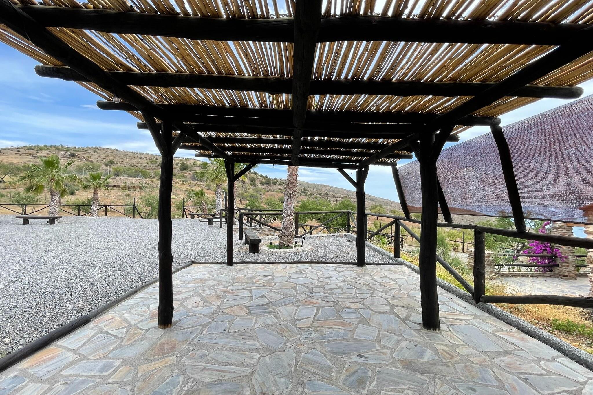 Dette landsted tilbyder en fantastisk udsigt over havet og bjergene. Ejendommen er over 100 år gammel og blev restaureret i 2022 ved hjælp af lokale sten. Der er tre huse i komplekset, hver med egen indgang. Det ligger i idylliske omgivelser, ideelt til udendørs sport og kun 10 minutter fra de smukkeste strande i området. Huset har tre soveværelser med dobbeltsenge og en sovesofa, gerne til et barn af komforthensyn. For naturelskere er den nærliggende naturpark Punta Entinas-Sabinar et must-see. Fra et kulinarisk synspunkt har Adra-regionen også meget at byde på. Start dagen på din egen terrasse eller udendørs veranda på cirka 60 m² og få mest muligt ud af den storslåede udsigt over havet og bjergene. La Suerte-komplekset har også en grill, et udendørs område med indfødte planter og frugttræer, et afslapningsområde, en bar (til at forberede dine yndlingscocktails), balinesiske senge, et solarium, en fælles swimmingpool med et lavvandet område for børn, en udendørs bruser og parkering til flere biler.