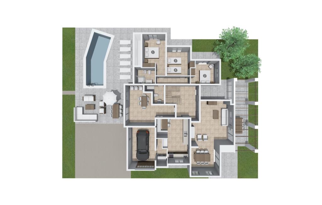Villaen "El tulipán blanco" i den nordøstlige del af Mallorca ligger på en lukket havegrund. Det er kendetegnet ved en rummelig solterrasse og en smuk, lavvandet pool. For dem, der foretrækker at bade i havet, er der to børnevenlige sandstrande i gåafstand. I haven kan I spille fodbold, og der er en basketballkurv. I tilknytning til huset er der en hyggelig gæstehave med muret grill og mobil grill. Sommerhusets indretning har en god planløsning og rummelige værelser med masser af naturligt lysindfald. Stuen er indrettet med en komfortabel sofa og moderne siddepladser. 1970'ernes charme er bevidst bevaret her og skaber en hjemlig atmosfære. To trin oppe er der en lys, venlig spisestue med adgang til et rummeligt, fuldt udstyret køkken med en anden spiseplads. Et andet stort værelse, velegnet som spisestue, har udgang til terrassen. De tre dobbeltværelser er meget rummelige og udstyret med garderobeskabe og aircondition. Takket være skodder kan de mørklægges helt for at nyde afslappende siestaer i den varme årstid. Et af soveværelserne har eget badeværelse. Der er desuden separat badeværelse med bruser og vaskerum i stueetagen. Villaen ligger i et velholdt boligområde på halvøen Victòria i den nordøstlige del af Mallorca. To børnevenlige strande ligger henholdsvis 3 og 5 minutter væk i bil. De kan også nemt nås til fods på 15 minutter. Middelalderbyen Alcúdia med gode indkøbsmuligheder ligger 4 km væk. Den lange sandstrand i Alcúdia-bugten ligger 10 minutters kørsel derfra.