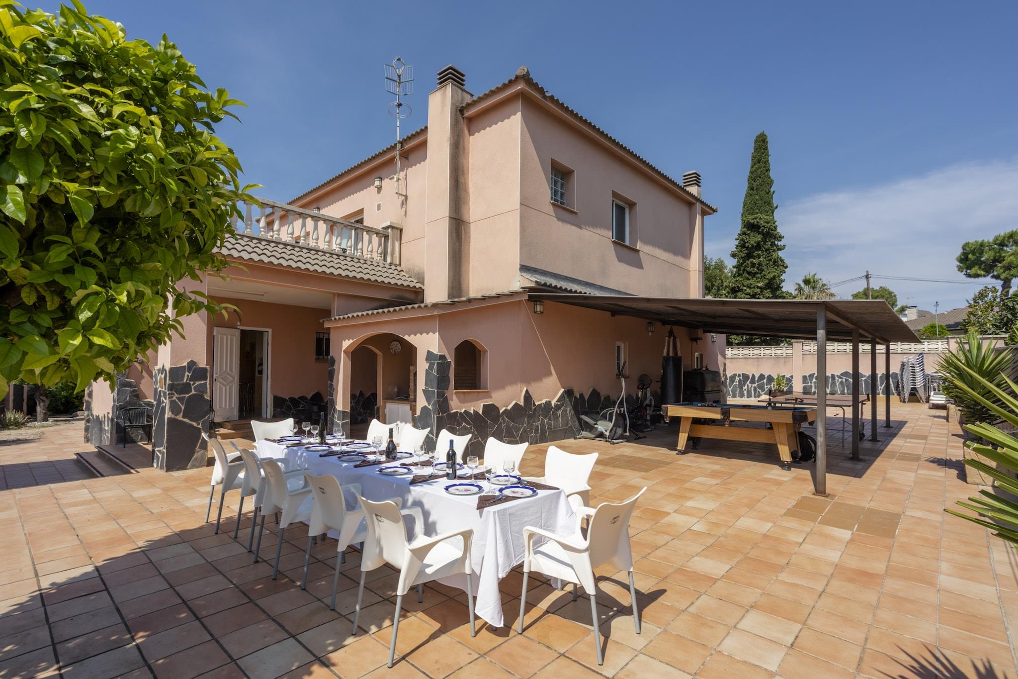 En rummelig familieoase med privat pool Slap af i dette smukt indrettede feriehus i El Vendrell, designet til grupper og familier, der søger sjov, komfort og forbindelse. Med fem velindrettede soveværelser fordelt mellem hovedhuset og gæstehuset, får alle deres eget rum - plus masser af fælles steder at samles. Dyk ned i din private pool, slap af på liggestolene, eller grill et festmåltid på grillen i den frodige have. Indendørs kan du nyde bordtennis, dart, billard og endda fitnessudstyr. Hjemmet er også børnevenligt med trampolin, legetøj og gennemtænkte faciliteter som en høj stol og børneseng. Førsteklasses beliggenhed nær strand, spisning og kultur Kun 1,7 km fra Costa Doradas gyldne sand giver denne villa dig nem adgang til stranddage og uforglemmelige solnedgange. Nyd lokale Cava-vine eller udforsk familiefavoritter som Aqualeon Water Park og PortAventura World. Sulten? Du er kun 50 meter fra lokale spisesteder, og nærliggende El Vendrell byder på charmerende pladser og markeder at udforske. Med togadgang kun 1,6 km væk og to lufthavne inden for rækkevidde er din rejse her lige så let, som dit ophold bliver. Kæledyrsvenligt paradis Tager du din lodne ven med? De er mere end velkomne her! Tag naturskønne vandreture sammen langs kyststierne, besøg de nærliggende hundevenlige strande, eller udforsk Parc del Francàs, perfekt til leg uden snor og skyggefulde gåture. Efter en dag med eventyr kan du lade dit kæledyr sove i haven, mens du nipper til cava under stjernerne.