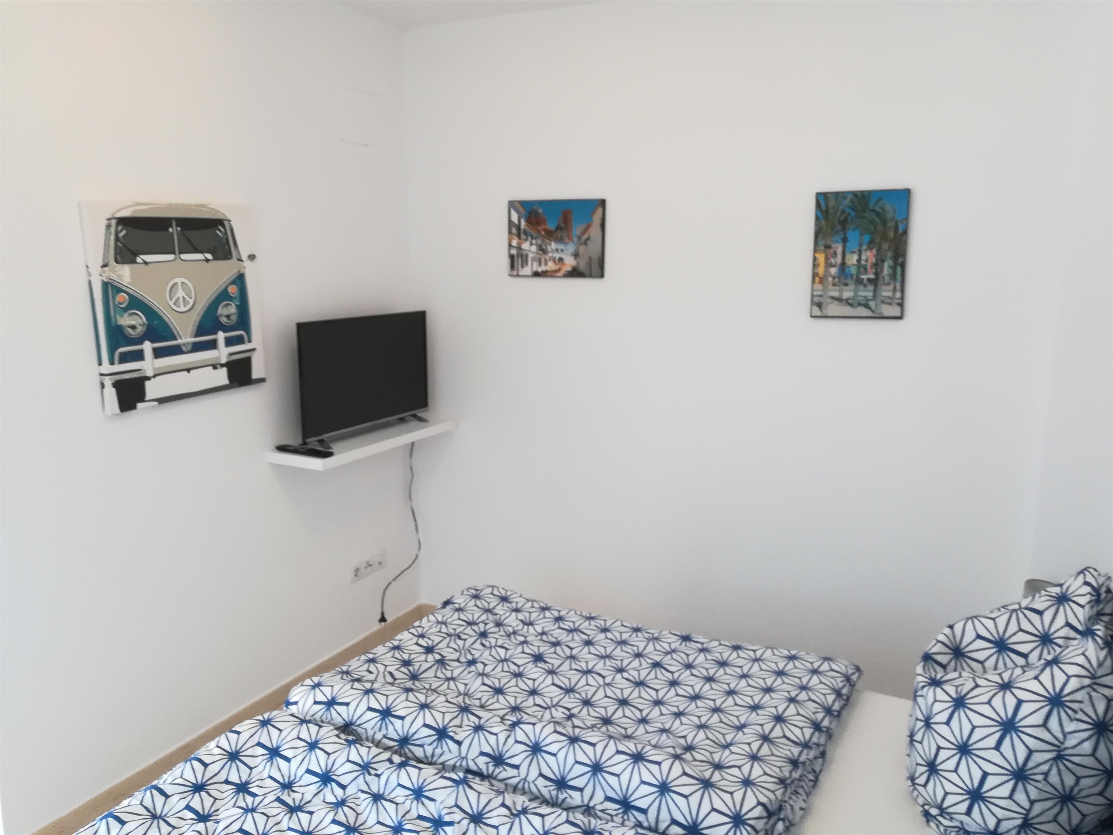 Casa Colonia 1 Stock, klimatisiertes Zweibettzimmer mit Meerblick, keine Küchenzeile nur Kühlschrank, Toaster, Kaffeepads, Teebeutel, Wasserkocher, Geschirr vorhanden,400 m vom Strand Les Deveses entfernt