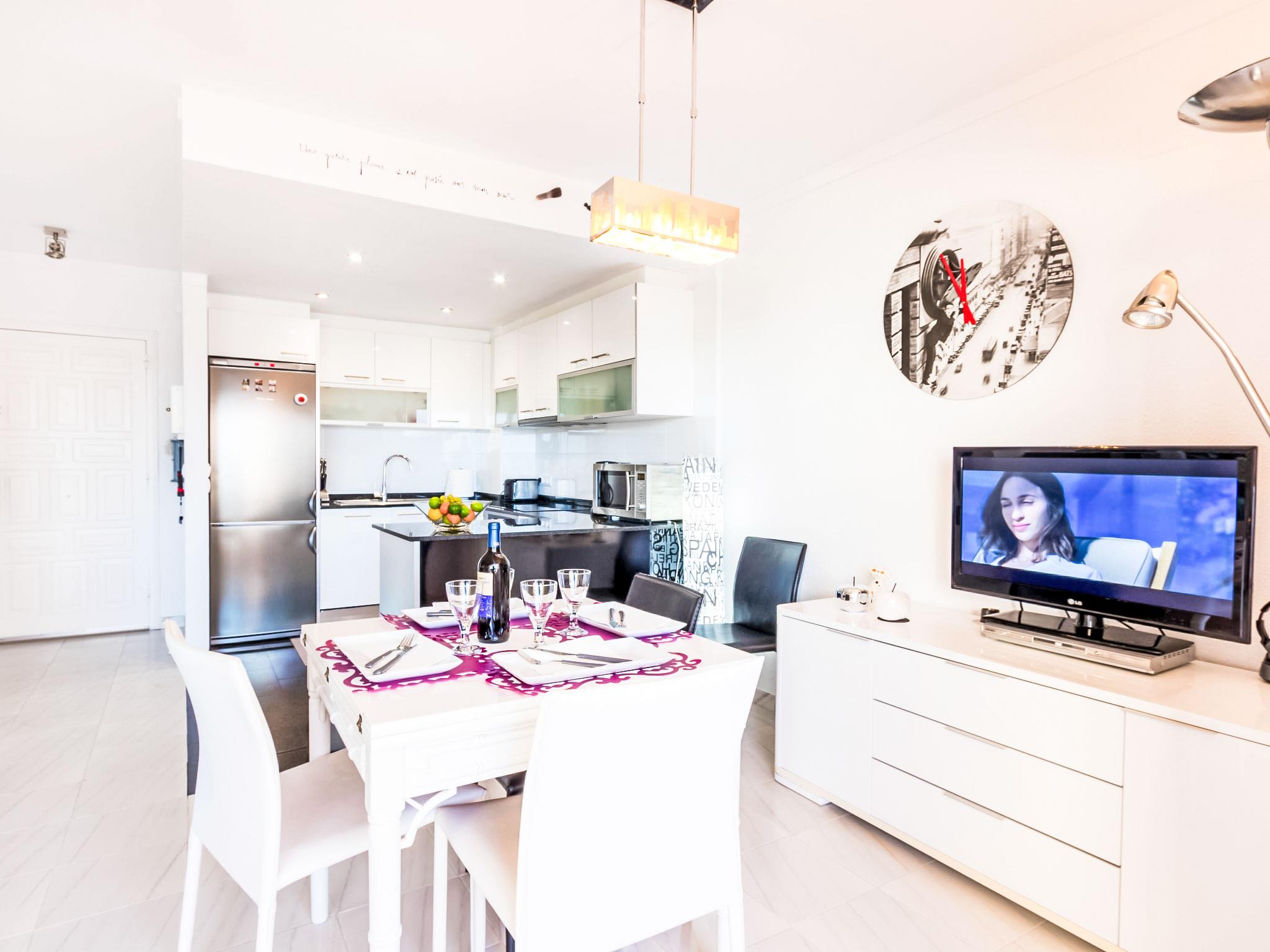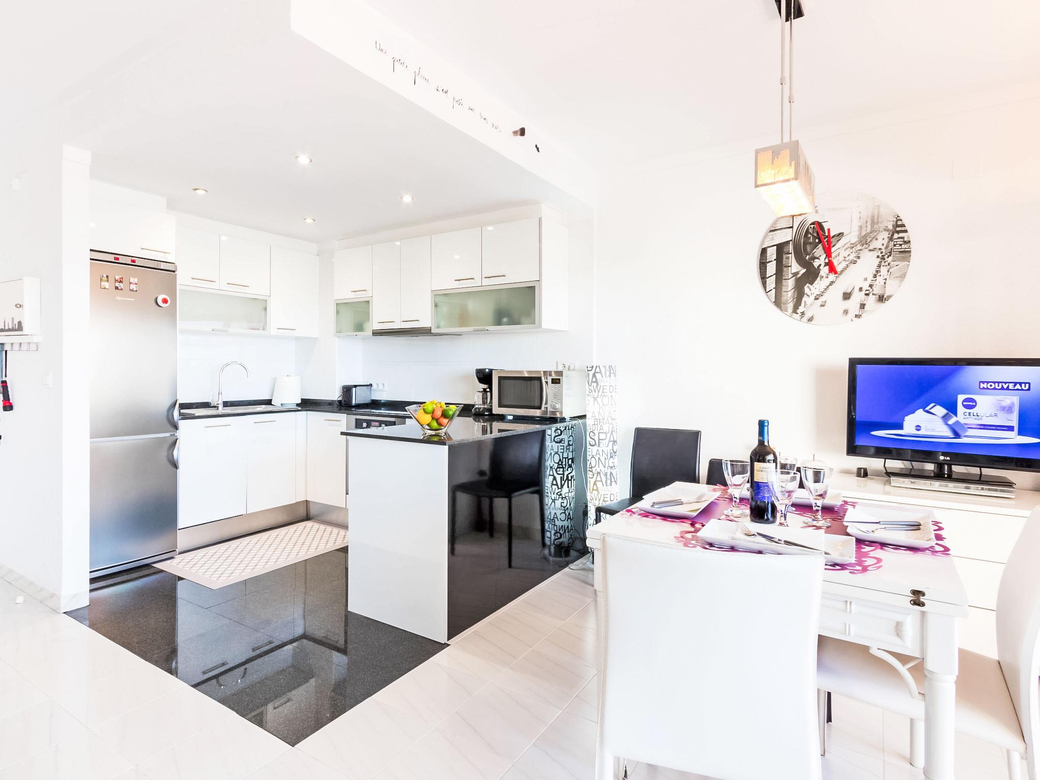 3-room apartment 60 m2 on 3rd floor, south-west facing position. Bright, fully renovated in 2011, modern and cosy furnishings: living/dining room with dining table and satellite TV (flat screen), air conditioning and forced-air heating. Exit to the balcony. 1 room with 1 french bed (150 cm, length 190 cm), air conditioning. 1 room with 1 french bed (160 cm, length 190 cm). Open kitchen (oven, dishwasher, 3 induction hot plates, microwave, freezer, electric coffee machine). Shower/WC, sep. WC. Small terrace 8 m2, south facing position and west facing position. Terrace furniture. Side view of the sea and the canal. Facilities: washing machine, dryer, iron. Internet (WiFi, free). Please note: non-smokers only. TV only FR, DE. HUTG029855 // Reg. Nr.: ESFCTU000017020000174365000000000000000000HUTG0298555