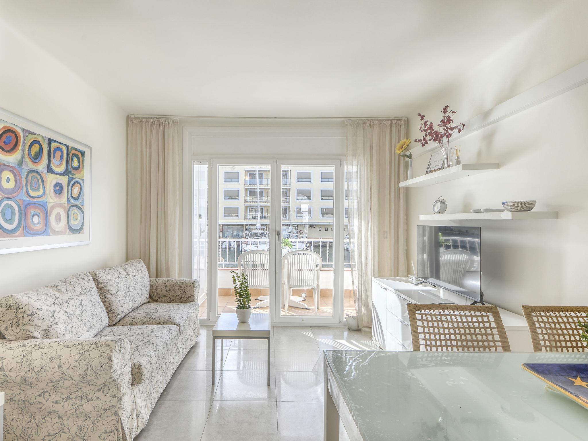 Apartment block "Moxó", 3 storeys. In the district of Port Moxó 2 km from the centre of Empuriabrava, in a quiet, sunny position, traffic calmed area, 300 m from the sea, directly by the canal, in a cul-de-sac. Public parking on the road. Grocery 2 km, supermarket 2 km, shopping centre 2 km, restaurant, bar 200 m, 10 minute walk to the centre, bus stop "Empuriabrava Cruïlla" 3.5 km, railway station "Figueres Renfe Adif" 16 km, sandy beach "La Rubina" 500 m. Sports harbour 2.1 km, golf course (18 hole) 8 km, sailing school 2.5 km, tennis 3 km, minigolf 1.6 km, riding stable 4 km, sports centre 2 km, cycle lane 190 m. Nearby attractions: Centro paracaidismo y túnel del viento 3 km, Parque Acuático Aquabrava Roses 6 km, Castillo y casino de Peralada 14 km, Museo Dalí Figueres 15 km, Ruïnes de Sant Martí de Empuries 21 km, Cadaqués 21 km. The keys‘ handover takes place by the agency Interhome in Empuriabrava.
