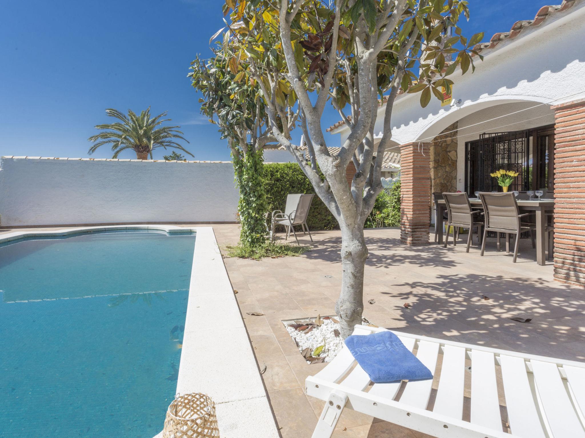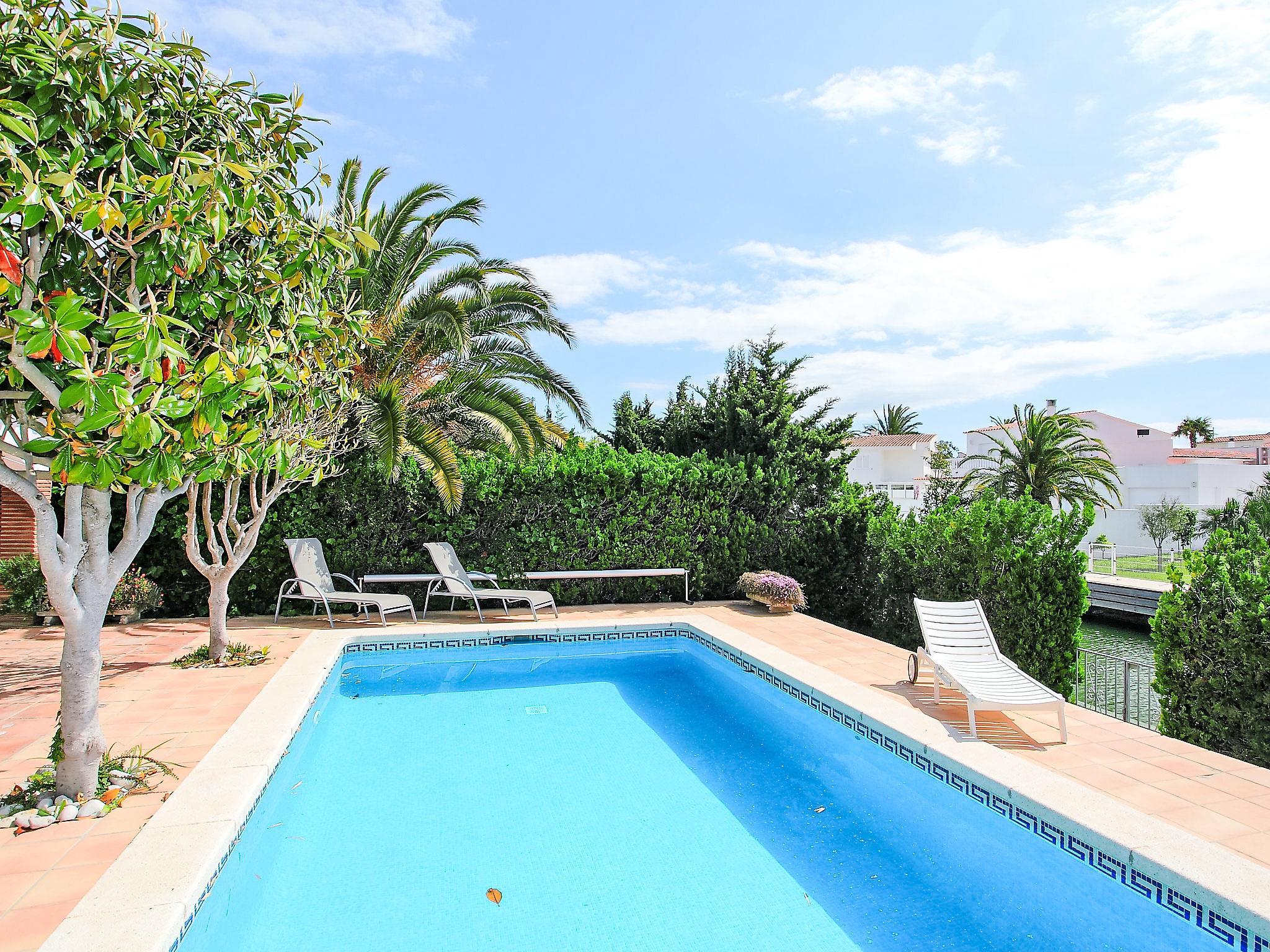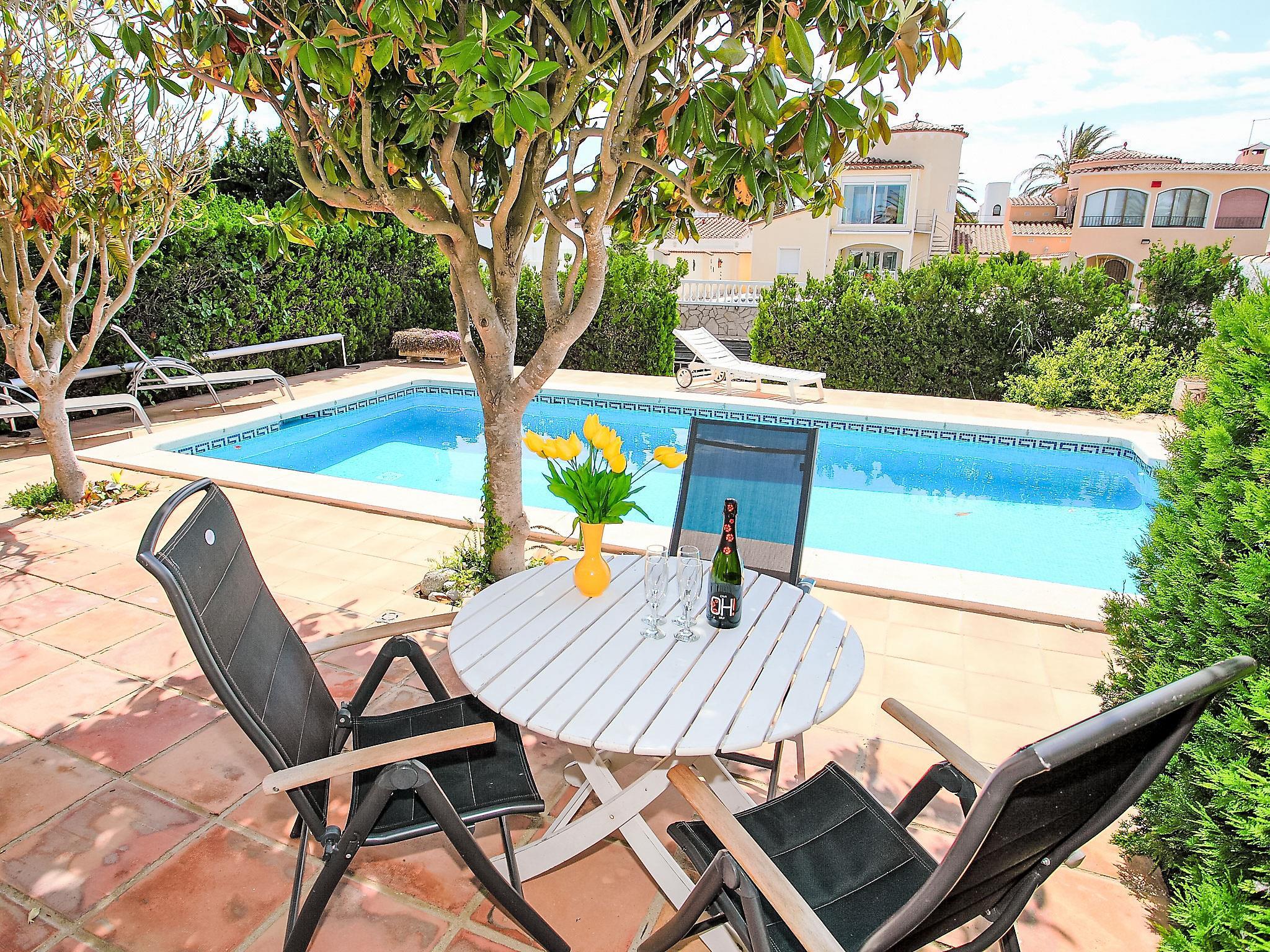 Casa al canal: Rustic, comfortable single-family house "Falconera". In the district of Falconera 700 m from the centre of Empuriabrava, in a quiet, sunny position residential area (villas), traffic calmed area, 600 m from the sea, 600 m from the beach, directly by the canal, in a cul-de-sac. Private: swimming pool (4 x 8 m, seasonal availability: 01.Jun. - 31.Oct.). Terrace, garden furniture, barbecue. In the house: WiFi. Parking. Supermarket, shopping centre 900 m, restaurant 200 m, bar 400 m, pub garden 600 m, bus stop "Empuriabrava Cruilla" 3 km, railway station "Figueres Renfe Adif" 15 km, sandy beach "La Rubina" 600 m. Golf course (14 hole) 6 km, tennis 2 km, minigolf 1.2 km, riding stable 300 m, sports centre 2 km, cycle lane 10 m. Nearby attractions: Túnel del Viento Empuriabrava 2 km, Parque Aquático Roses 5 km, Casino y festival de Perelada 12 km, Museo Dalí Figueres 15 km, Ruines de Empuries 21 km. Please note: private mooring. The keys‘ handover takes place by the agency Interhome in Empuriabrava.