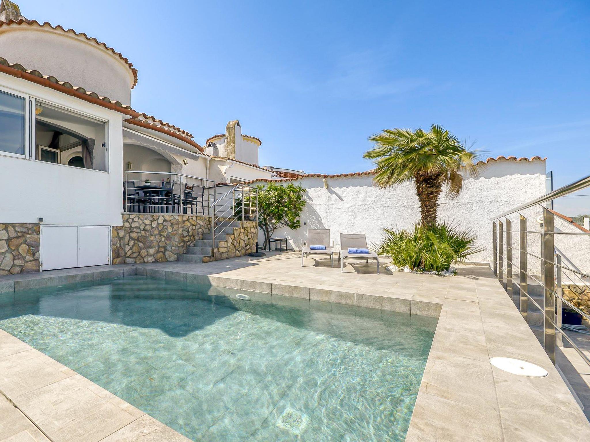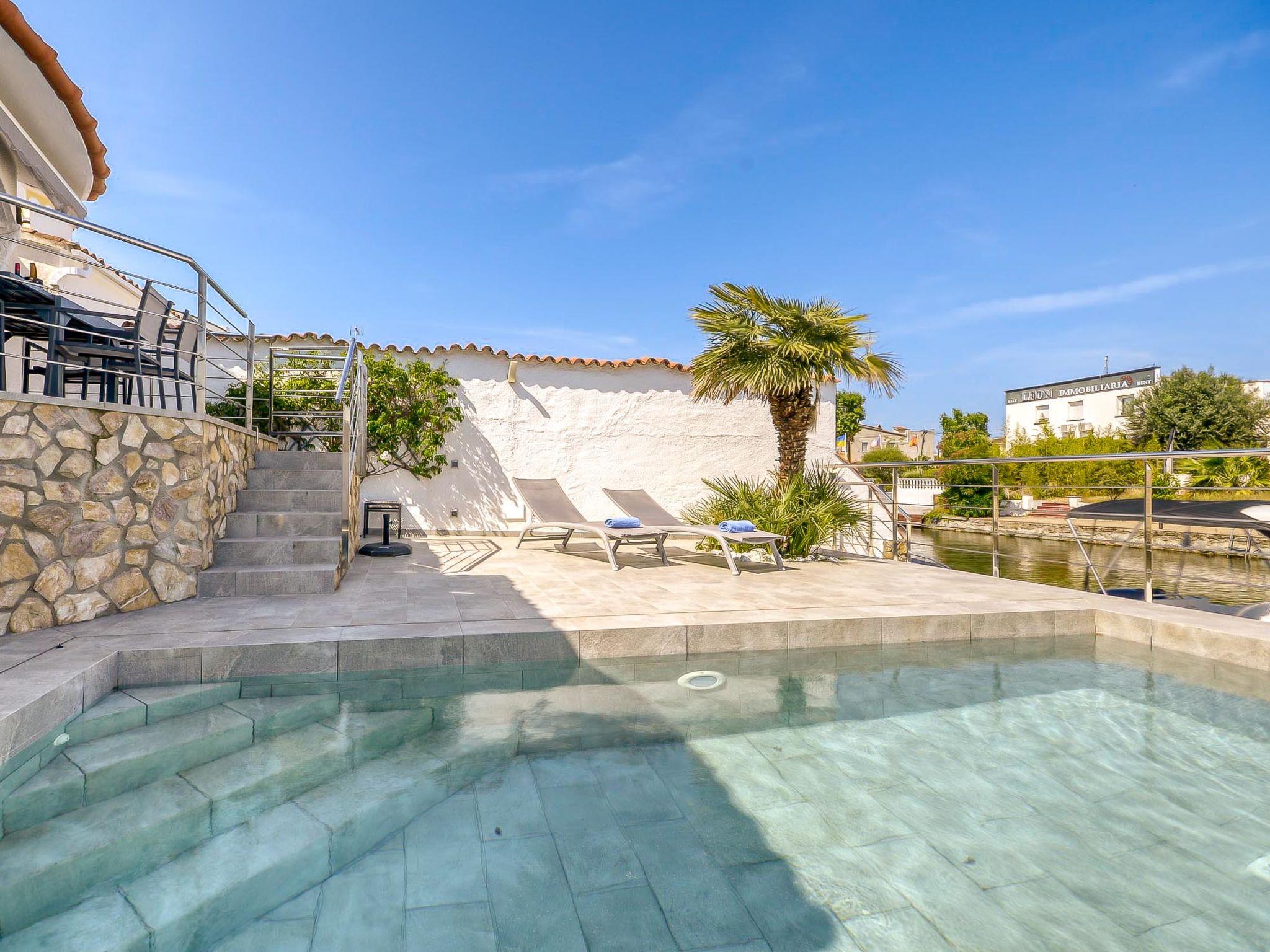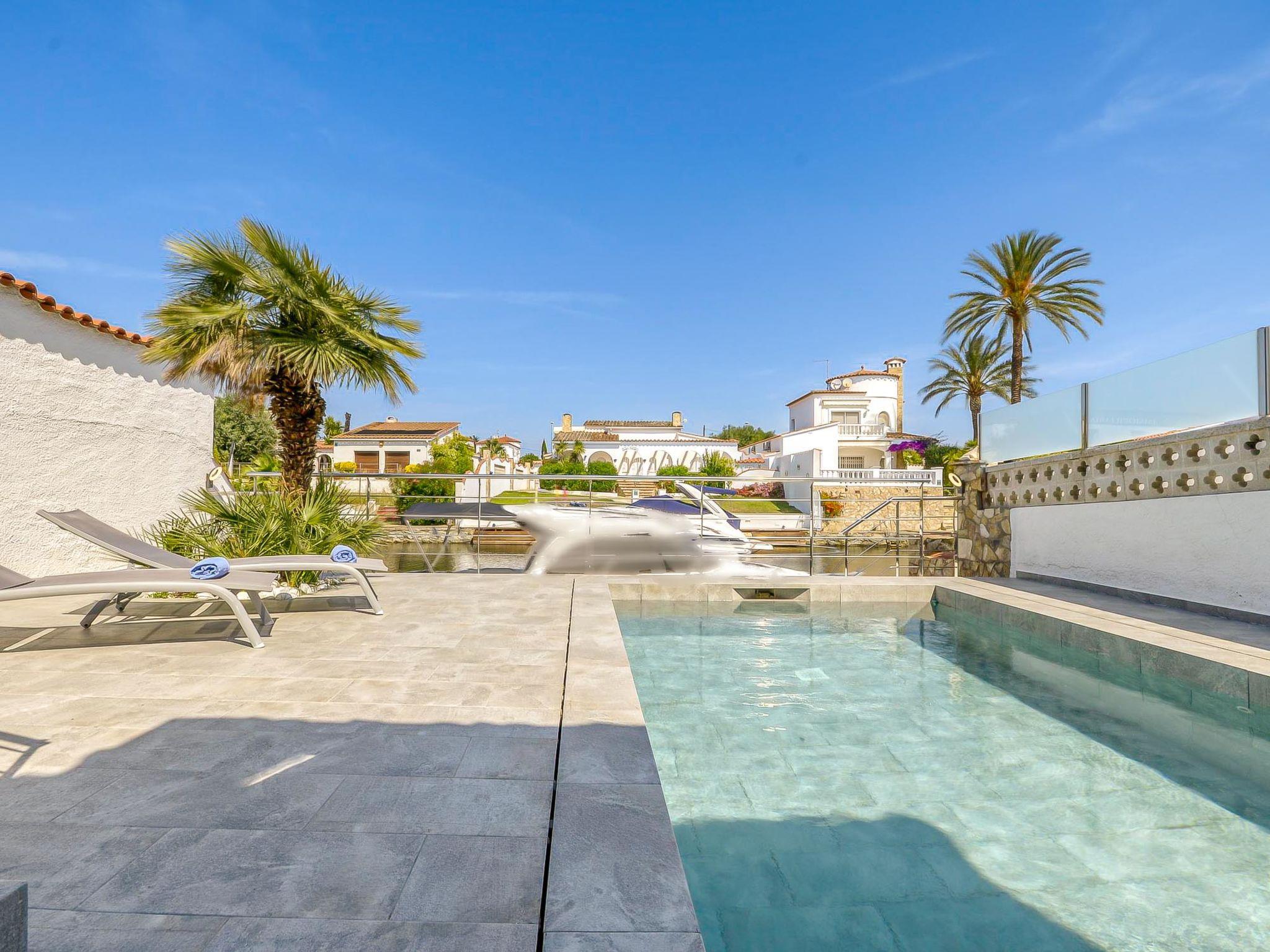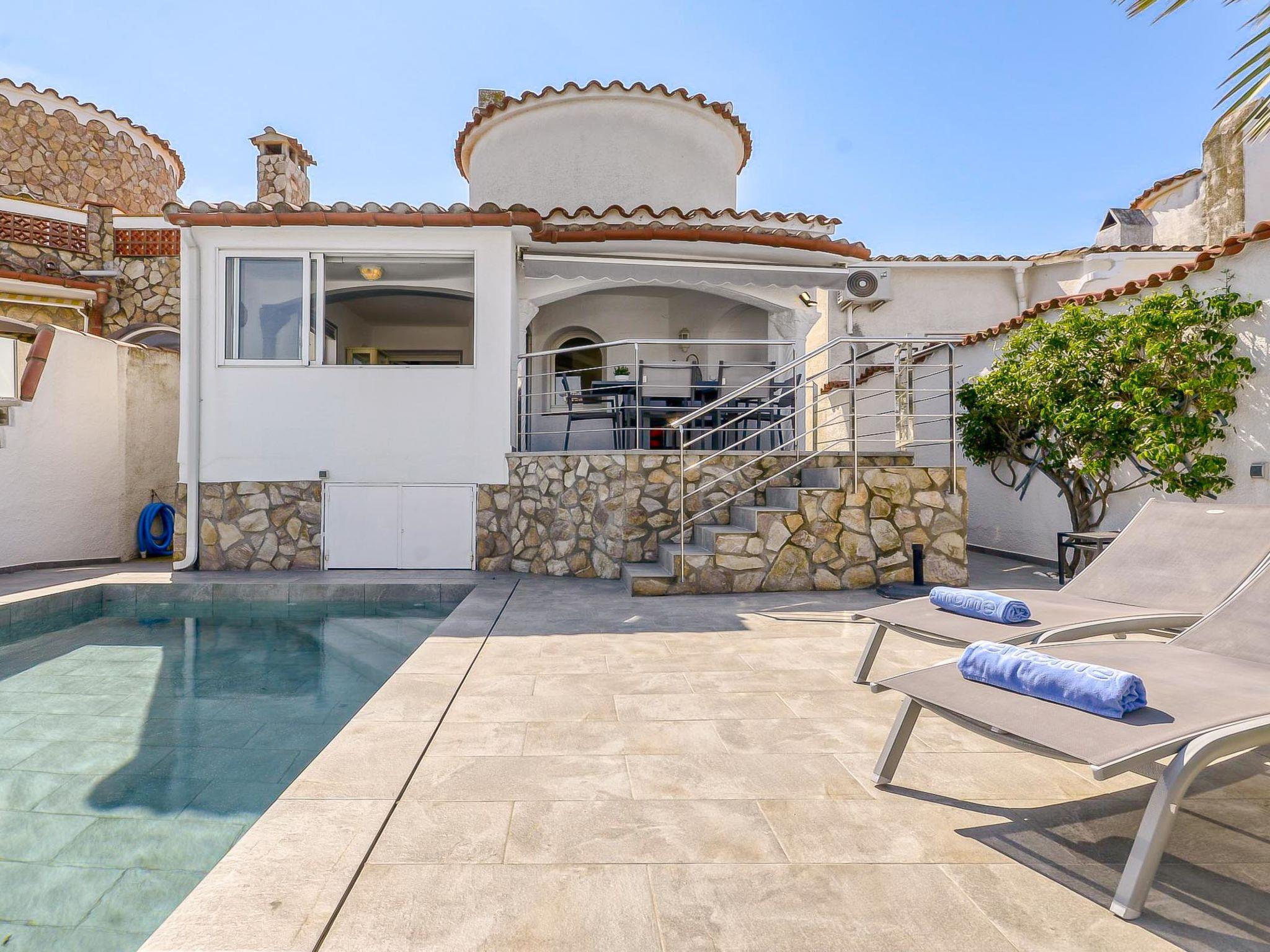Casa al canal: Cosy, comfortable house "Sunset". 2 km from the centre of Empuriabrava, in a quiet, sunny position residential area (villas), 2.3 km from the sea, directly by the canal, in a cul-de-sac. Private: swimming pool angular (5 x 3 m, depth 110 - 130 cm, seasonal availability: 01.Jun. - 30.Oct.). Outdoor shower, terrace, garden furniture, parking on the premises. Shop 400 m, supermarket, restaurant, bar 700 m, bus stop 1.6 km, sandy beach "Empuriabrava" 2.2 km. Sports harbour 2.1 km, golf course (15 hole) 12 km, sailing school 2.2 km, tennis 1.1 km, minigolf 800 m, cycle lane 500 m. Nearby attractions: Parque Acuático Roses 6 km, Museo Dalí Figueres 15 km, Golf Perelada 12 km, Centro Paracaidismo / Túnel del viento 1 km, Ruïnas de St. Martí de Empúries 21 km, Monasterio de Sant Pere de Rodes 23 km. Groups of teenagers on request only.