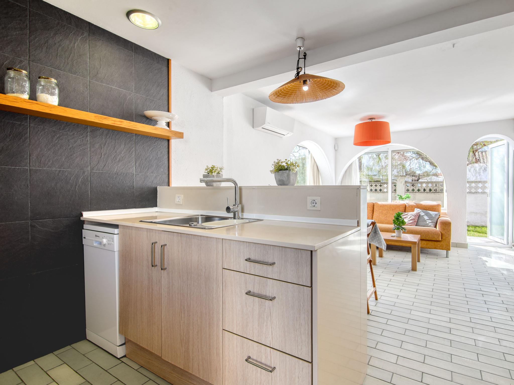 Requesens: Comfortable apartment block "Las Palmeras". In the district of Requesens 800 m from the centre of Empuriabrava, in a quiet, sunny position residential area (villas), traffic calmed area, 1 km from the sea. For shared use: beautiful garden (fenced) with lawn and plants. Supermarket 1 km, shopping centre 800 m, restaurant 500 m, bar 700 m, bus stop "Empuriabrava Cruïlla" 2.8 km, railway station "Figueres Renfe Adif" 16 km, sandy beach "Empuriabrava" 1 km. Sports harbour 6 km, golf course (18 hole) 12 km, surf school, sailing school 900 m, tennis 2 km, minigolf 800 m, walking paths from the house, cycle lane 100 m. Nearby attractions: Aeródromo y túnel del viento 2 km, Parque Acuático Roses 6 km, Museo Dalí Figueres 15 km, Casino y festival de Perelada 12 km, Ruïnas de Empúries 21 km, Cadaques y Cap de Creus 21 km. The owner does not accept any youth groups. The keys‘ handover takes place by the agency Interhome in Empuriabrava.