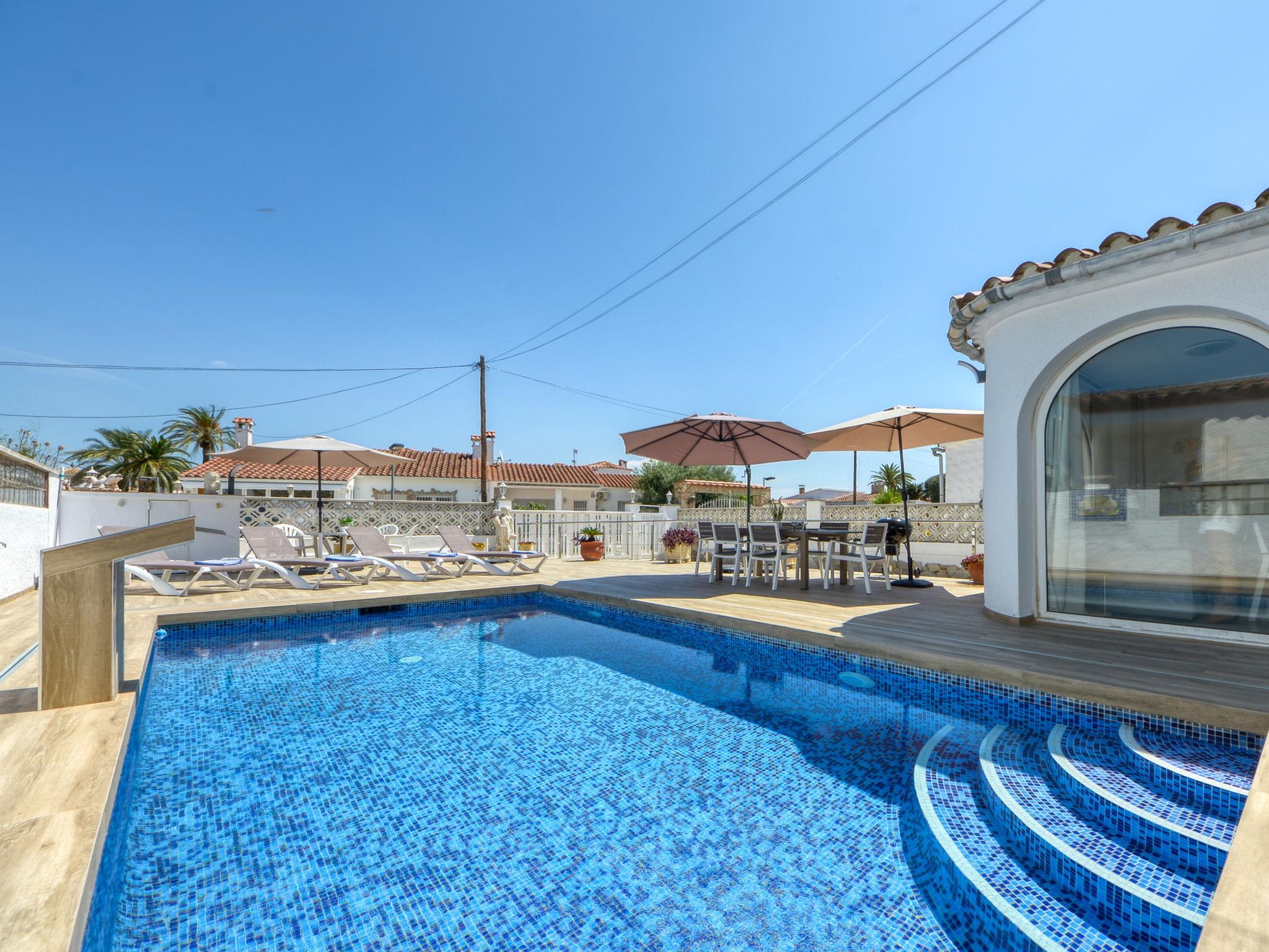 Beautiful, comfortable house "Roanne" in 2014. In the district of Alberes 800 m from the centre of Empuriabrava, in a quiet, sunny position residential area (villas), traffic calmed area, 1 km from the sea, 200 m from the canal. Private: property (fenced), garden, swimming pool angular (7 x 3 m, depth 160 cm, seasonal availability: 01.May. - 30.Oct.). Outdoor shower, terrace, garden furniture, barbecue, parking (for 2 cars). Shop 240 m, grocery 300 m, supermarket 240 m, shopping centre 500 m, restaurant 400 m, bar 300 m, bakery, bus stop 3 km, sandy beach "Empuriabrava" 1 km. Sports harbour 2.6 km, golf course (18 hole) 15 km, sailing school 1.5 km, tennis 2.2 km, minigolf 2 km, cycle lane 500 m. Nearby attractions: Túnel de viento y Skydive Empuriabrava 2 km, Parque Acuático Aquabrava Roses 6 km, Museo Dalí Figueres 12 km, Ruinas de Empuries 23 km, Castillo Peralada Golf 18 km, Monasterio de Sant Pere de Rodes 23 km. The owner does not accept any youth groups. The keys‘ handover takes place by the agency Interhome in Empuriabrava.