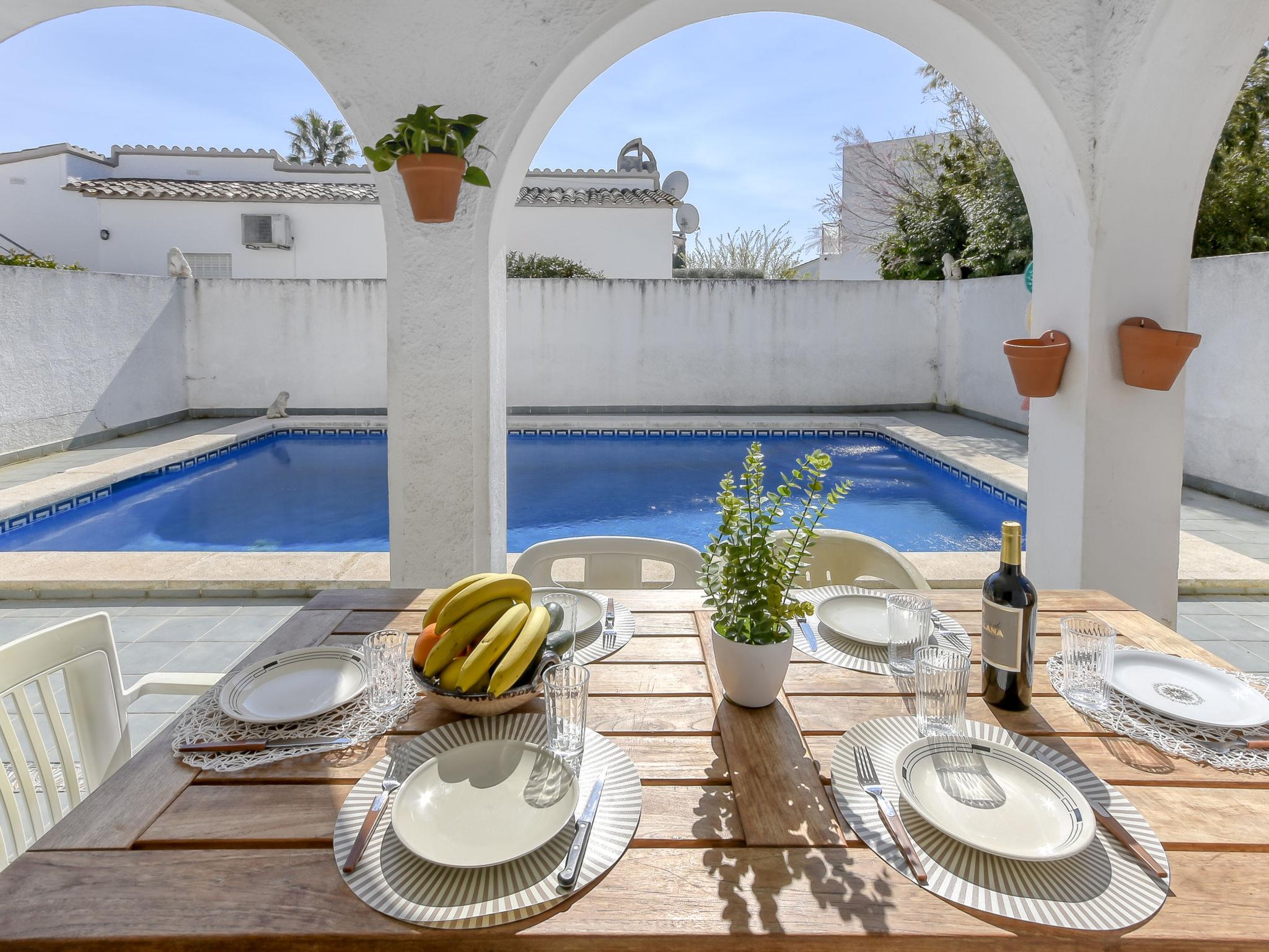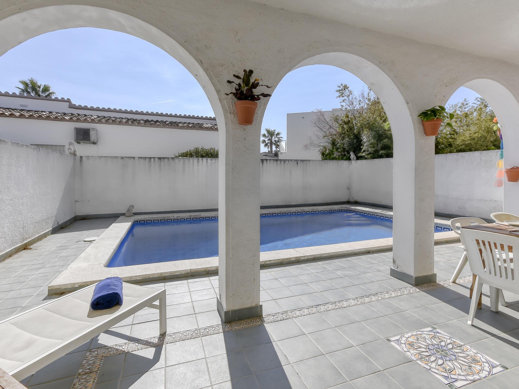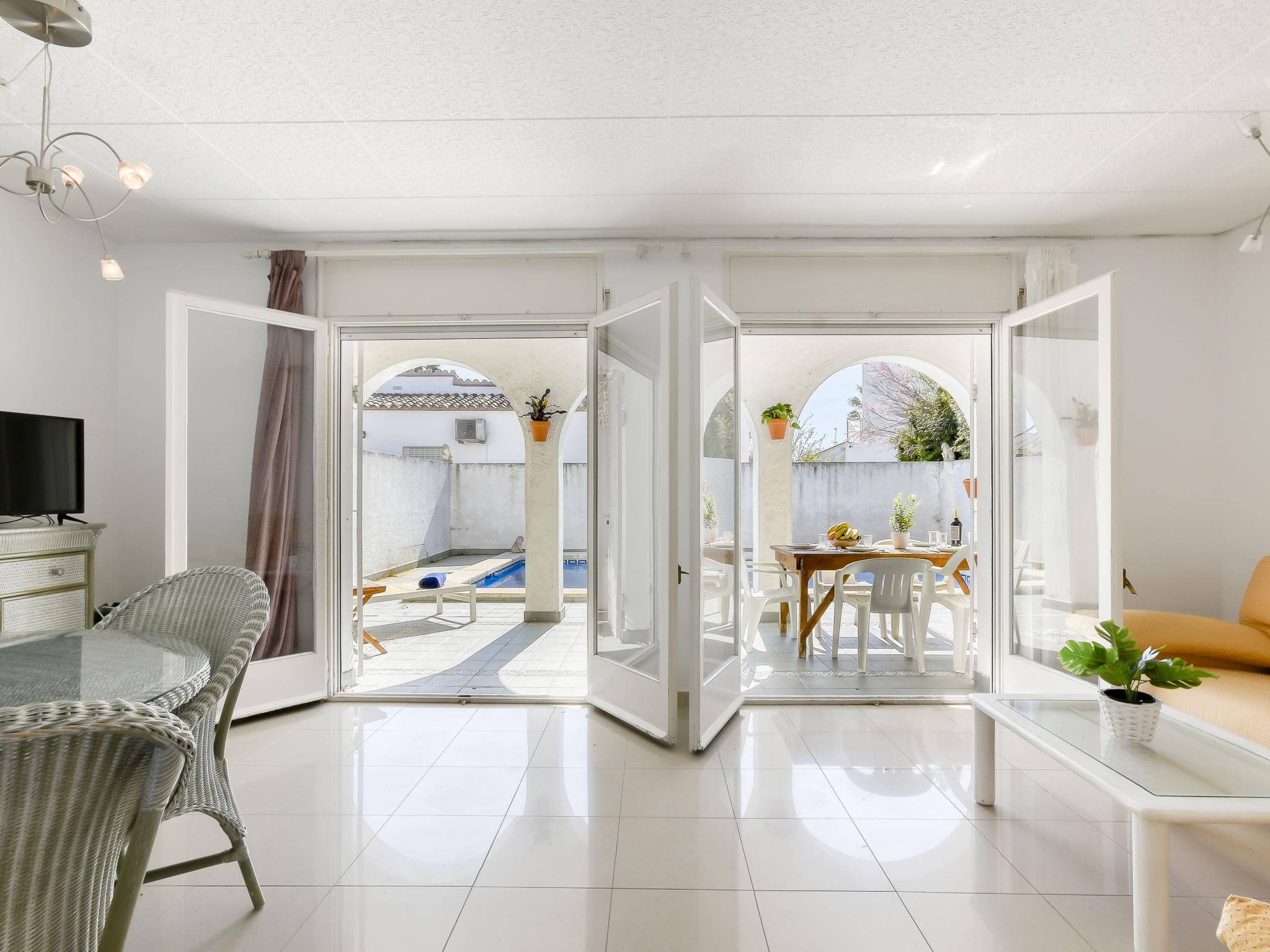 Simple single-family house "Steffy", 2 storeys. In the district of Montgri, 1.2 km from the centre of Empuriabrava, in a quiet, sunny position residential area (villas), traffic calmed area, 1.8 km from the sea, 50 m from the river, south facing position. Private: property, wildlife garden and trees, swimming pool angular (4 x 7 m, depth 100 - 200 cm, seasonal availability: 01.Apr. - 30.Oct.) with internal staircase. Pergola, terrace, garden furniture, barbecue, parking on the premises. Shop, grocery 250 m, supermarket 1.5 km, restaurant, bar, bakery, café 250 m, bus stop "Alberes" 300 m, railway station "Figueres Renfe Adif" 14 km, sandy beach "Empuriabrava" 1.2 km. Sports harbour 2 km, golf course (18 hole) 14 km, surf school 1.3 km, sailing school 1.3 km, tennis 2 km, minigolf 800 m, walking paths from the house, cycle lane 50 m. Nearby attractions: Túnel del viento y skydive Empuriabrava 2 km, Parque Acuático Roses 6 km, Casino y festival de Peralada 12 km, Museo Dalí Figueres 15 km, Ruïnes de Empuries 21 km, Monasterio de Sant Pere de Rodes 23 km. Hiking paths: Cadaqués / Cap de Creus 20 km. Please note: no lift. The keys‘ handover takes place by the agency Interhome in Empuriabrava.
